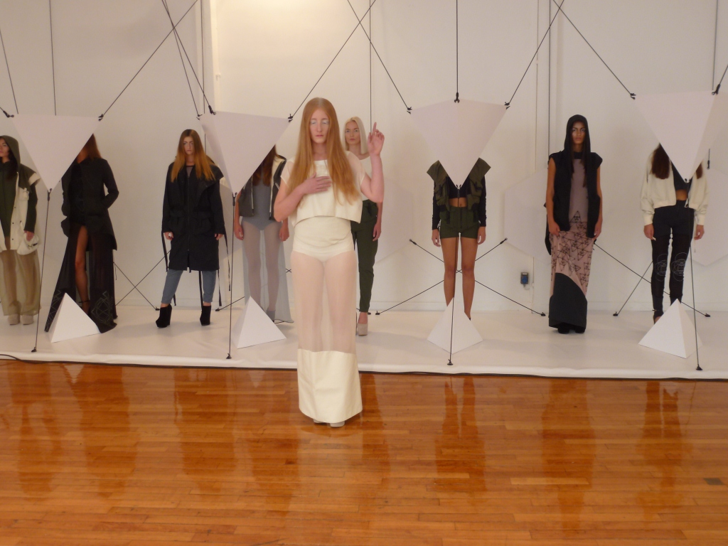 Miranda Kaloudis nous propose ses looks urbains et futuristes dont elle a le secret, qui couvrent ou découvrent le corps et jouent sur la transparence: