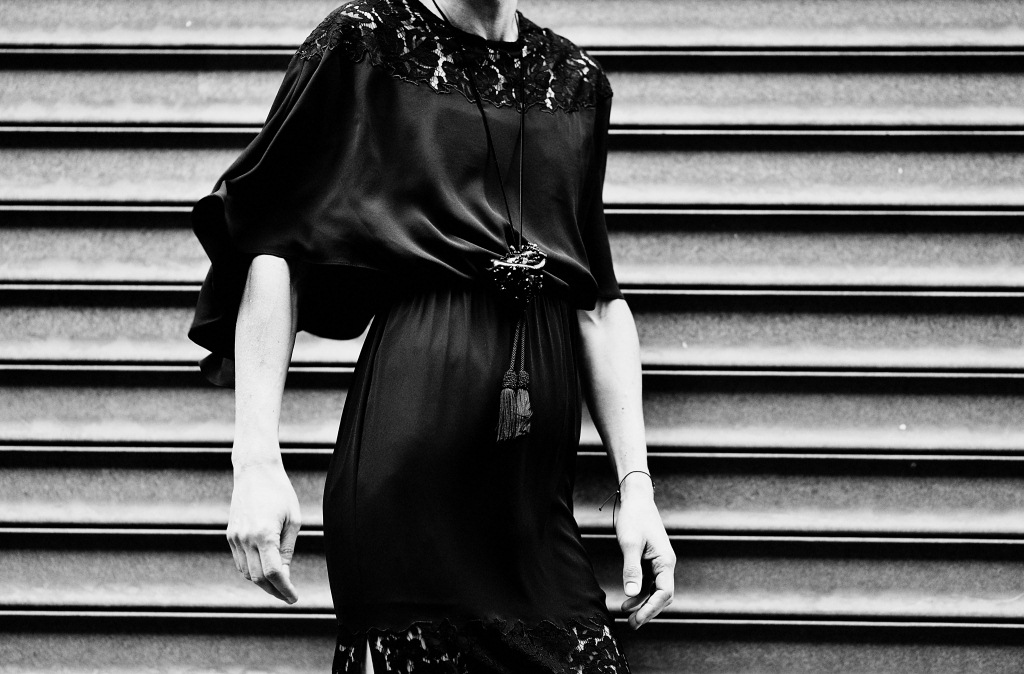Cet hiver les matières métallisées illuminent votre look et lui donnent de l’éclat. Sur le thème du « safari urbain », cette robe-chemise de couleur mordorée vous garantit un style tout à la fois élégant, décontracté et moderne. Robe à manches longues en cuir synthétique BCBG MaxAzria « Emilee » (collection hiver 2016/2017) avec fermeture boutonnée dissimulée sur le devant et larges poches en-haut et sur les côtés, collier assorti BCBG MaxAzria, ceinture en cuir grainé Carven, chapeau canotier en feutre Maison Michel, collant résille, bottes en nubuck What For, sac en cuir Zadig&Voltaire, manchette Clara Jasmine, bagues Clara Jasmine et Crezus. Photos: Franck Malabre.