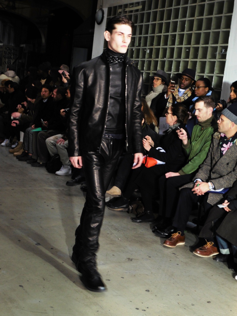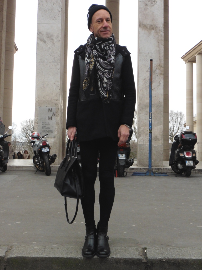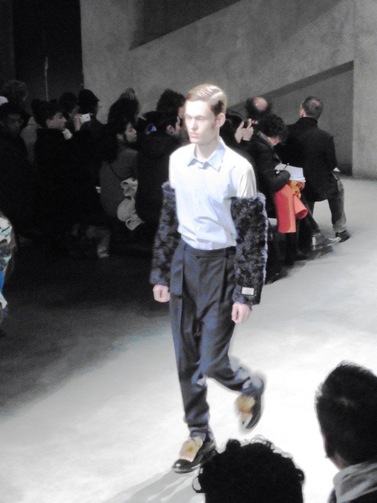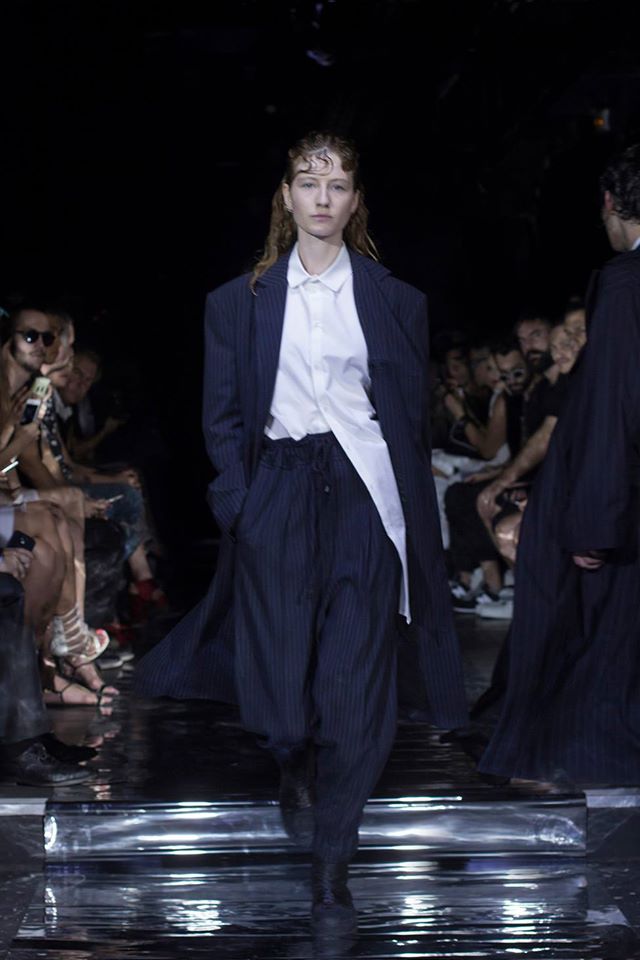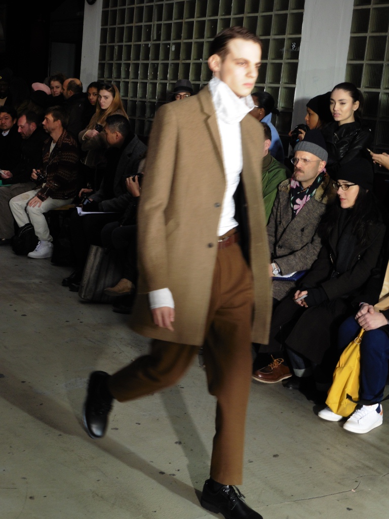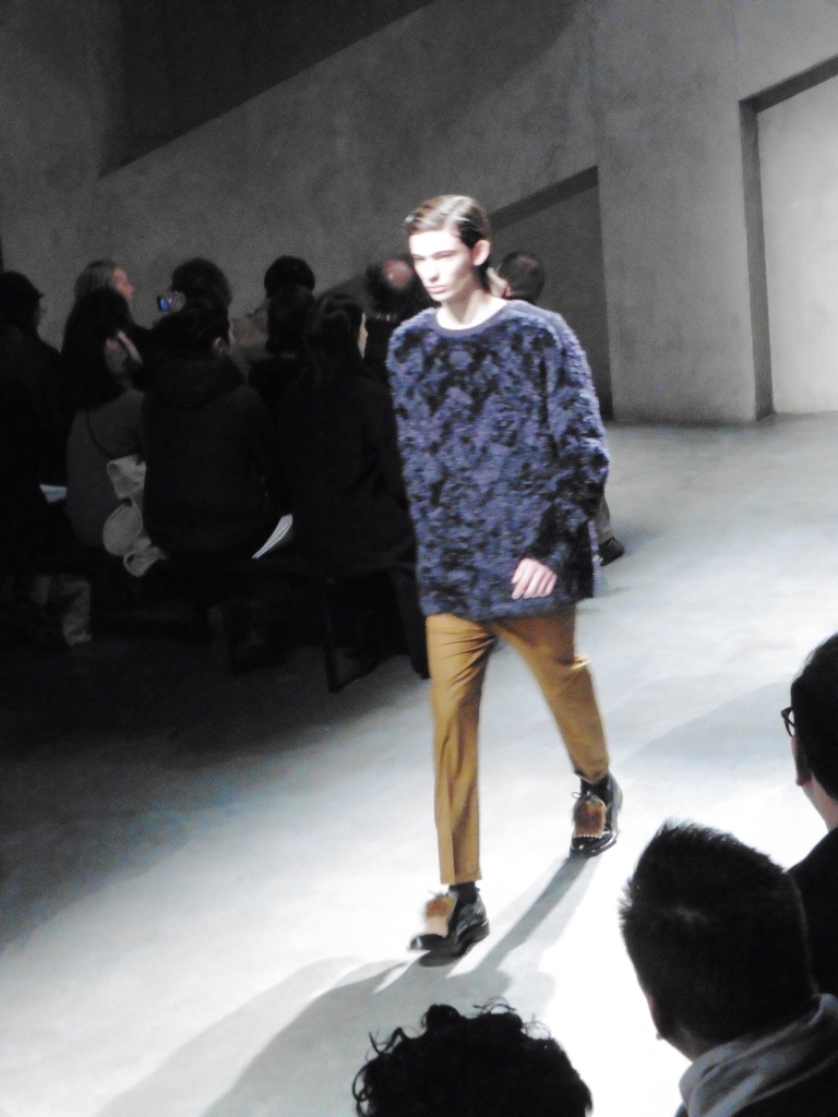 Défilé 22/4_Hommes au Garage Turenne: la marque allemande, qui pose les bases d’une garde-robe unisexe, nous a présenté une collection centrée sur le trench comme pièce phare: celui-ci apparaît avec ou sans manches, ceinturé ou non, et sa gabardine imperméable se retrouve aussi en pantalons et pardessus. Shorts, pantalons étroits ou extra-larges. Des silhouettes d’une grande légèreté; le contraste avec des cols plus stricts donne une touche de modernité. On aperçoit aussi les rayures fines, une des tendances fortes de cette saison. Une collection d’un grand chic et très engageante!