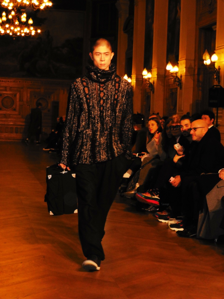Défilé Icosae au Gibus: désinvolture stylée, romantisme et élégance. Un clin d’oeil au mouvement punk anglais. Manteaux d’été en tissus fluides, une habile sélection de matières, des silhouettes déstructurées très intéressantes, un jeu subtil sur les volumes. De saison en saison le trio constitué des frères Valentin et Florentin Glémarec et d’Anthony Hor n’arrête pas de progresser et nous projette dans la mode de demain, une mode durable et fabriquée en France.