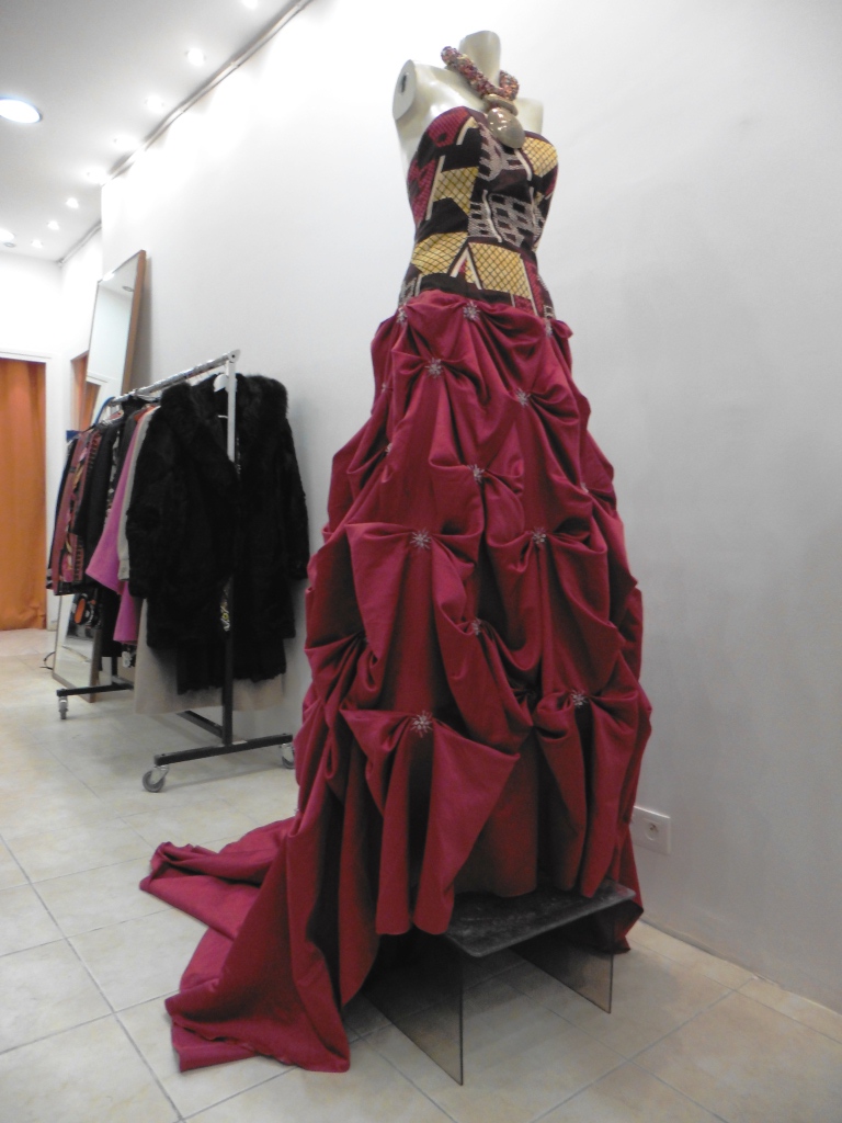 Présentation Anggy Haïf dans sa boutique du Marais: le prolifique créateur d’origine camerounaise a présenté sa première collection haute couture « Rouge Montaigne ». Ce nom est le reflet du mélange des cultures qui caractérise le créateur. C’est tout d’abord une allusion à son émerveillement lors de sa première visite avenue Montaigne à son arrivée à Paris; le rouge, c’est la couleur de la passion, de la séduction, de l’élégance, mais c’est aussi la terre de ses aïeux dans le Nord Cameroun. Magnifiques robes en soie et taffetas. Un bel hommage à l’univers de la haute couture.