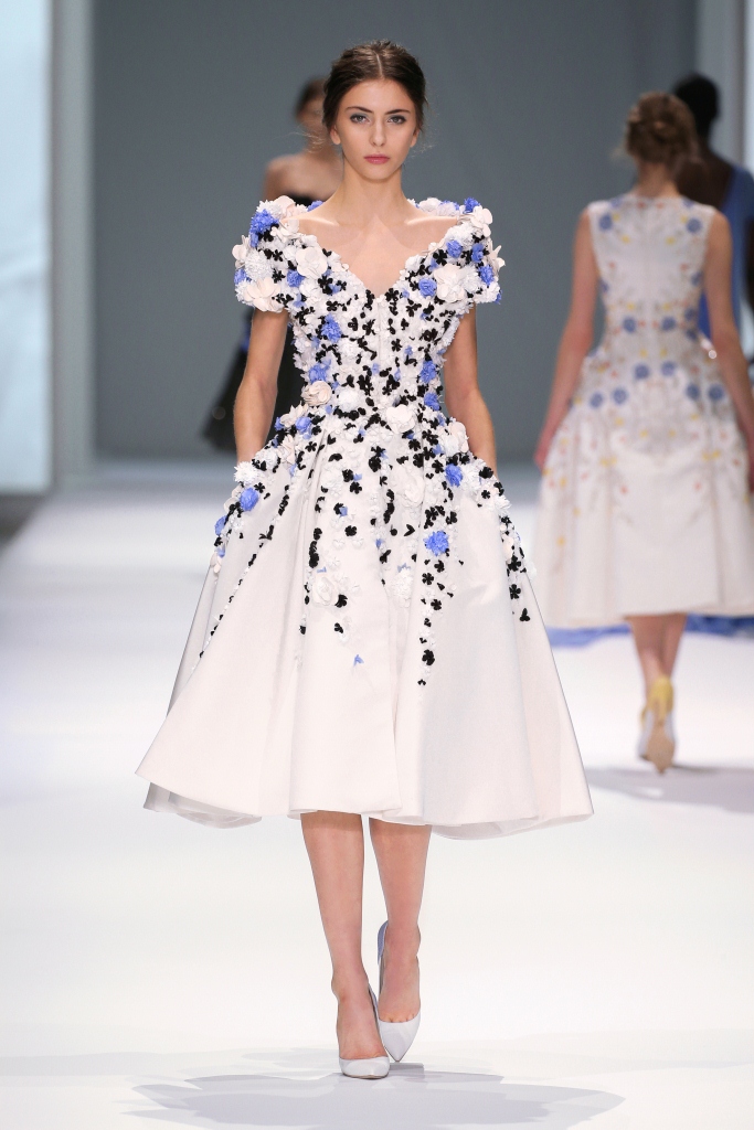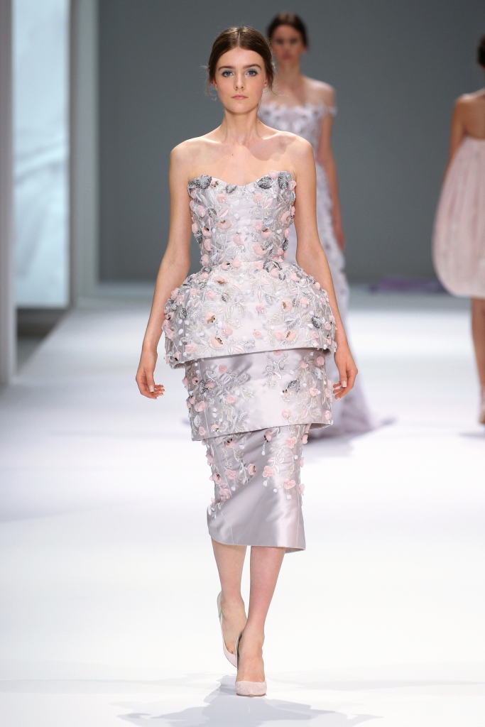 Défilé Ralph&Russo au Salon d’honneur du Grand Palais: une collection majestueuse qui symbolise le pouvoir régénérant de la nature. Inspiration florale enchanteresse. Exubérance et transparences. Broderie traditionnelle et imprimés métalliques. Teintes pastel complétées par quelques coloris plus tranchants. Fourreaux en organza qui caressent doucement le corps. Mélange de silhouettes volumineuses et d’allures plus fluides. Féérique!