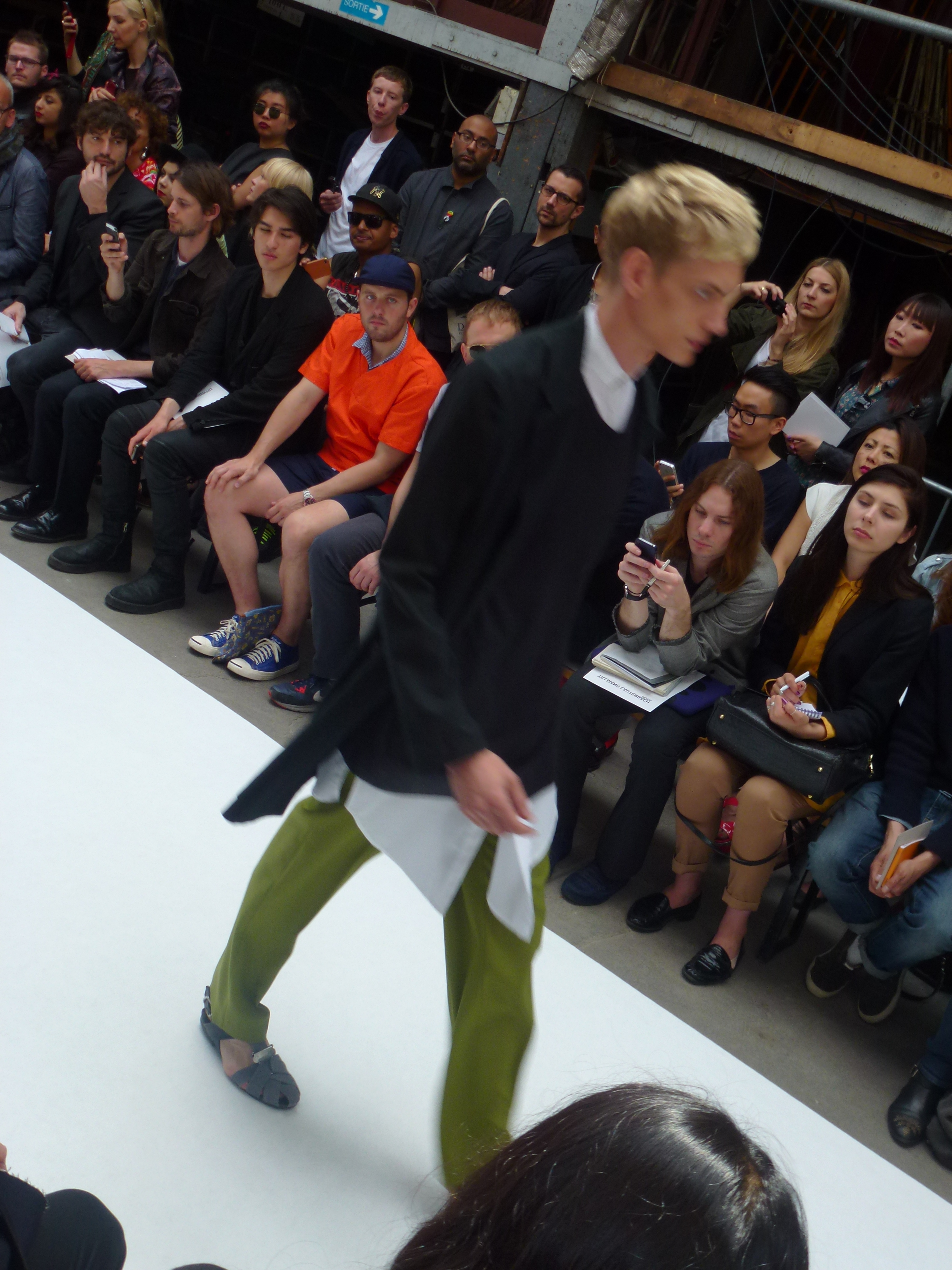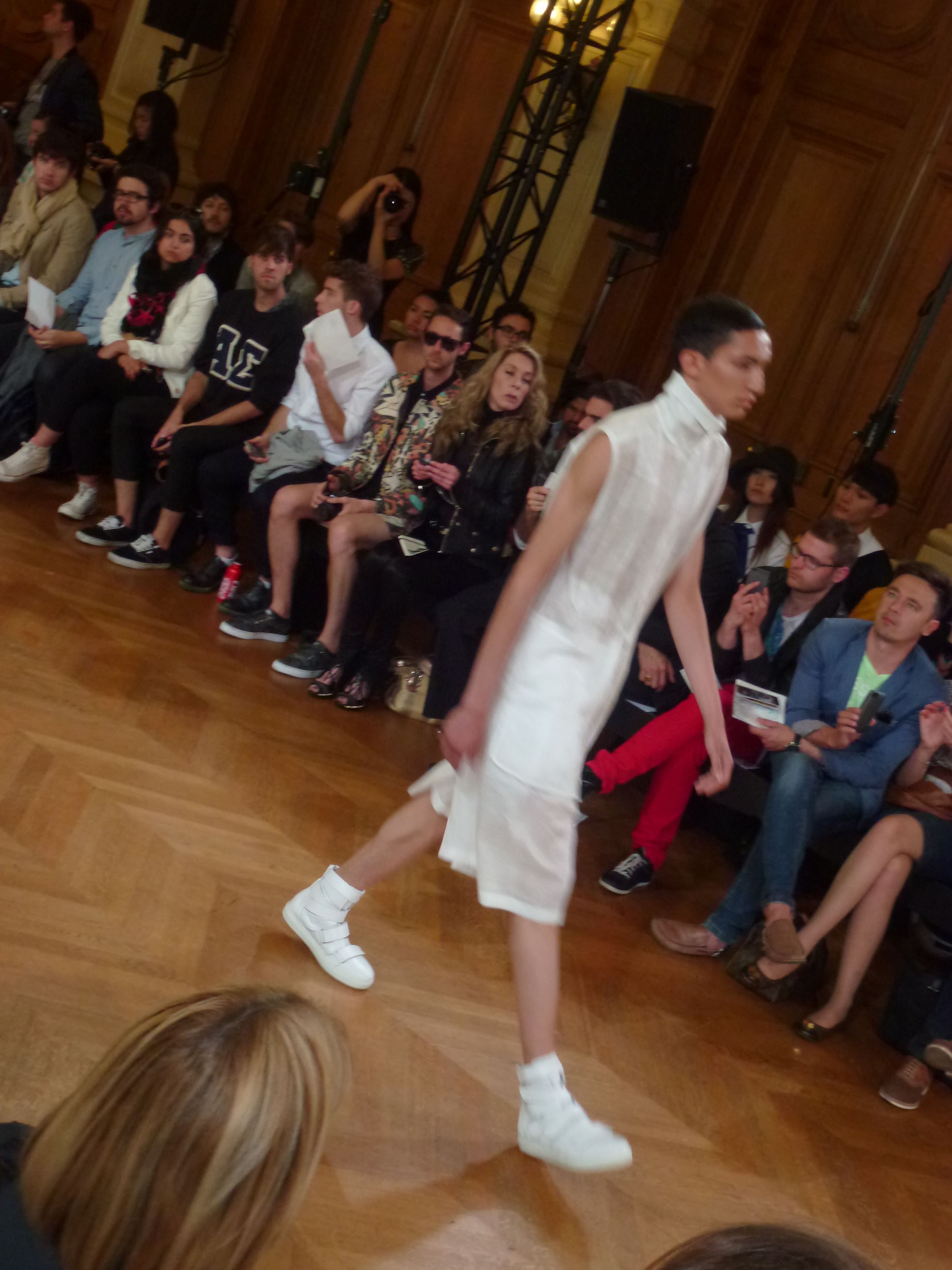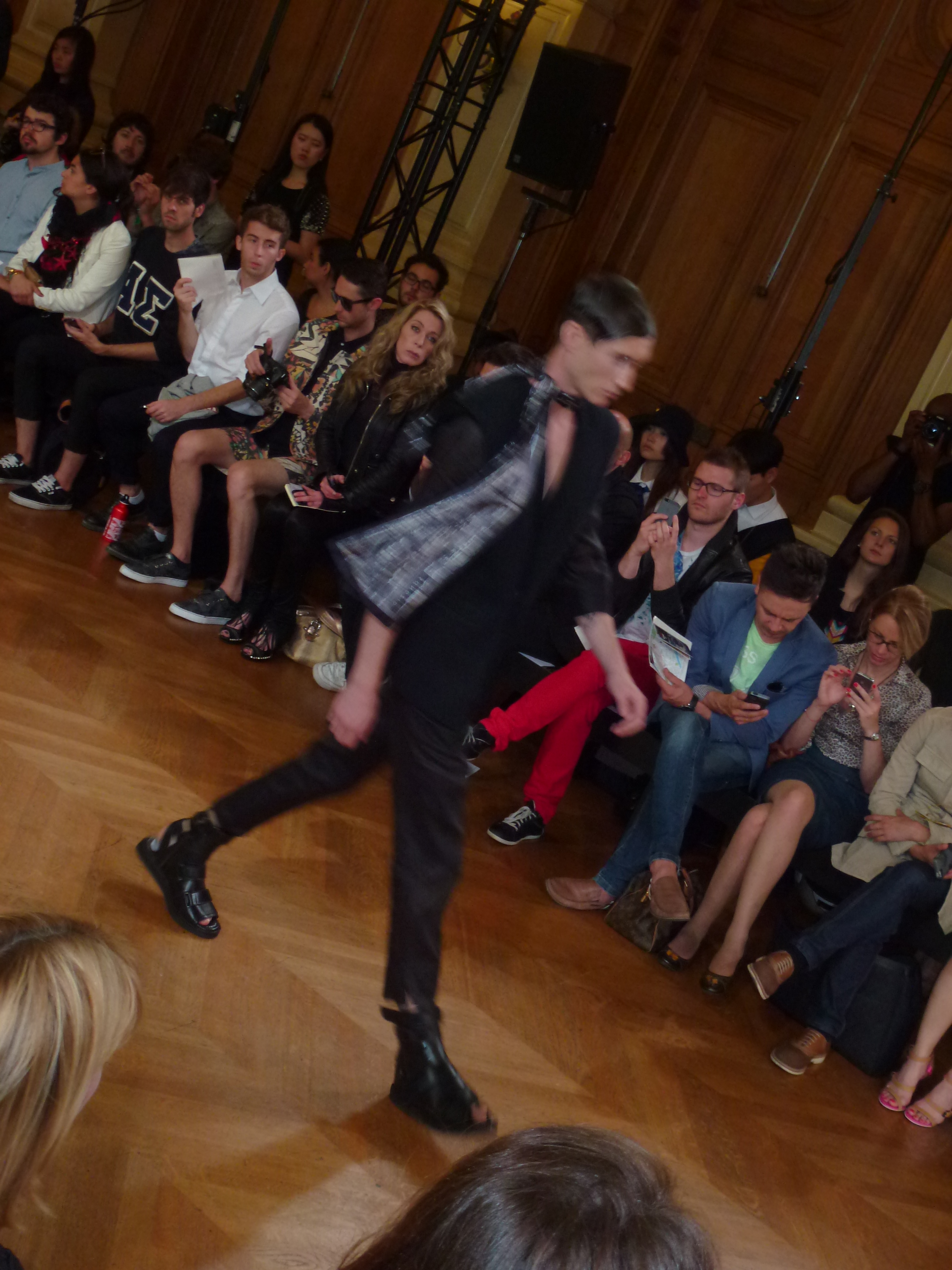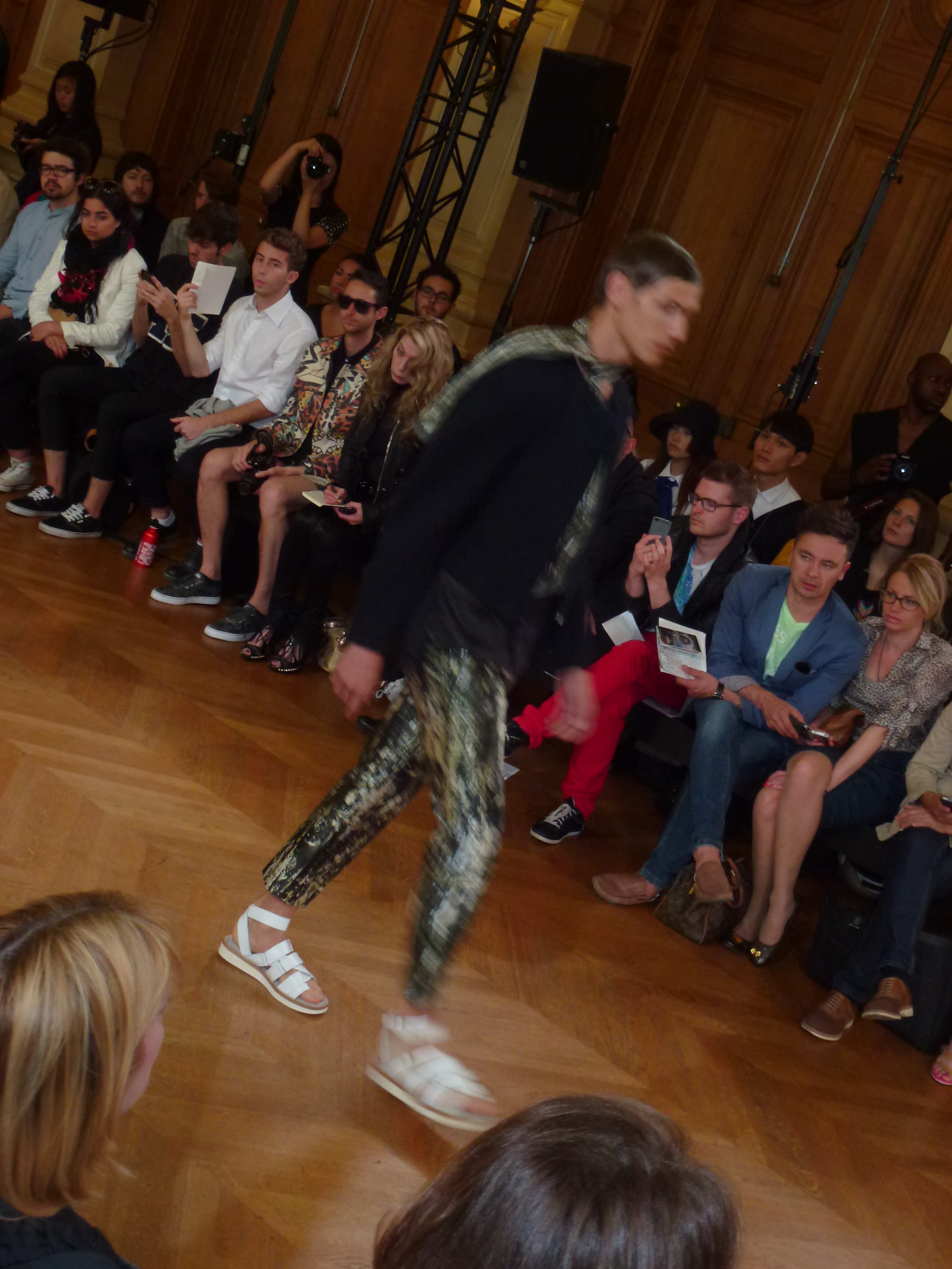 Défilé Tillmann Lauterbach à l’atelier Weber Métaux: collection « Neodada », une collection innovante, des coupes originales, des associations osées (short sur pantalon, accessoires fun sur des couleurs strictes, touches d’orange sur du noir ou du gris), une grande impression de confort. Une belle surprise!