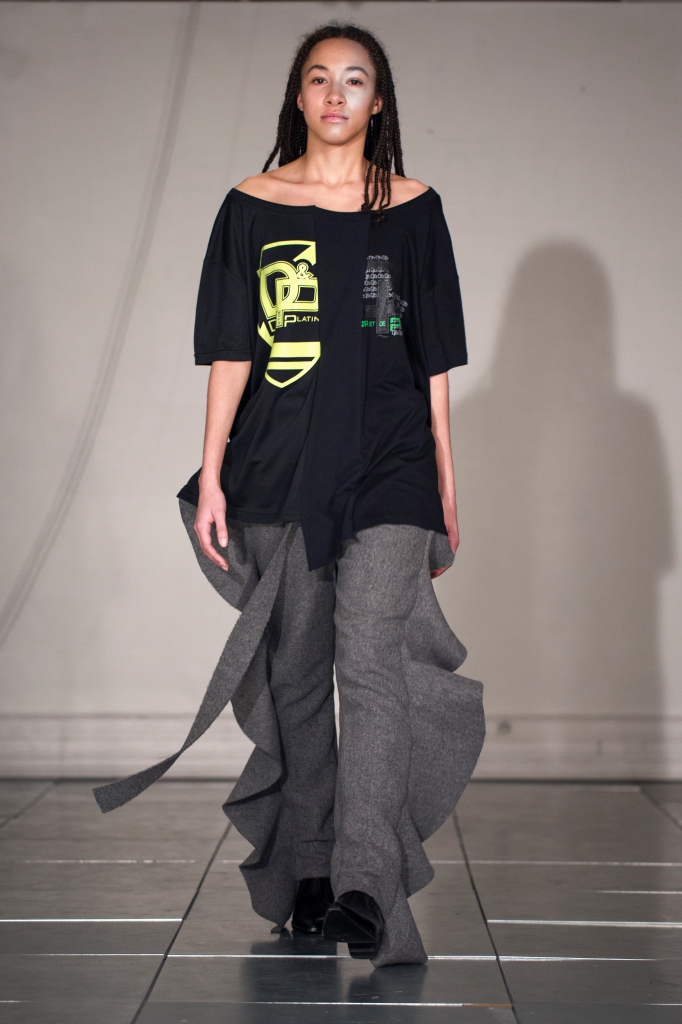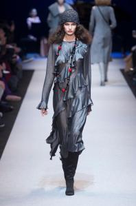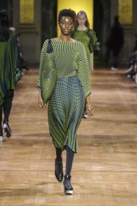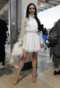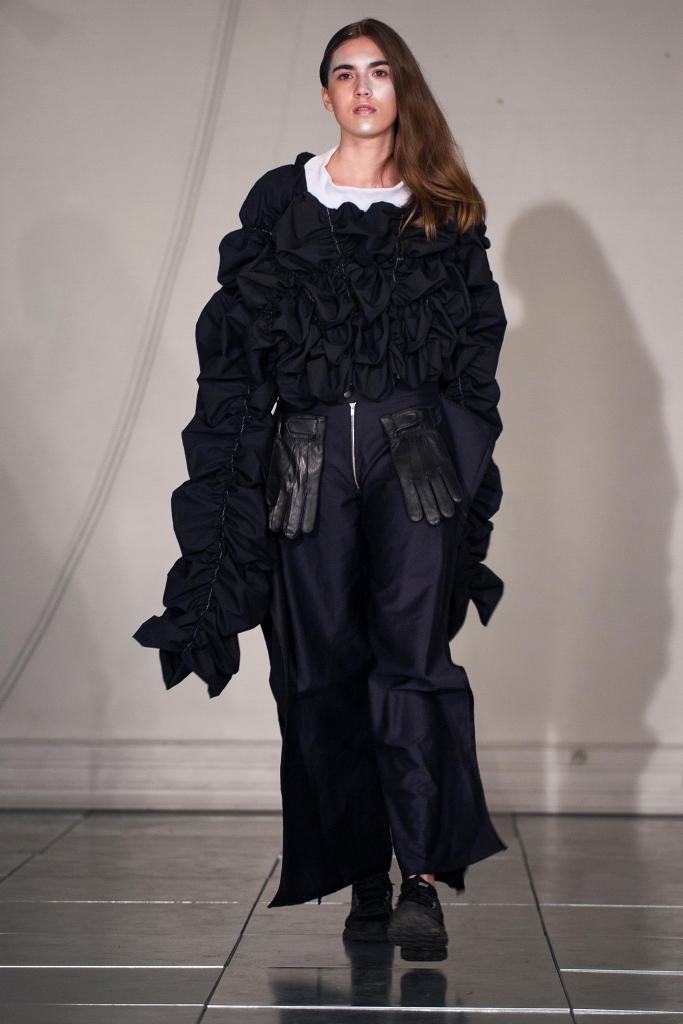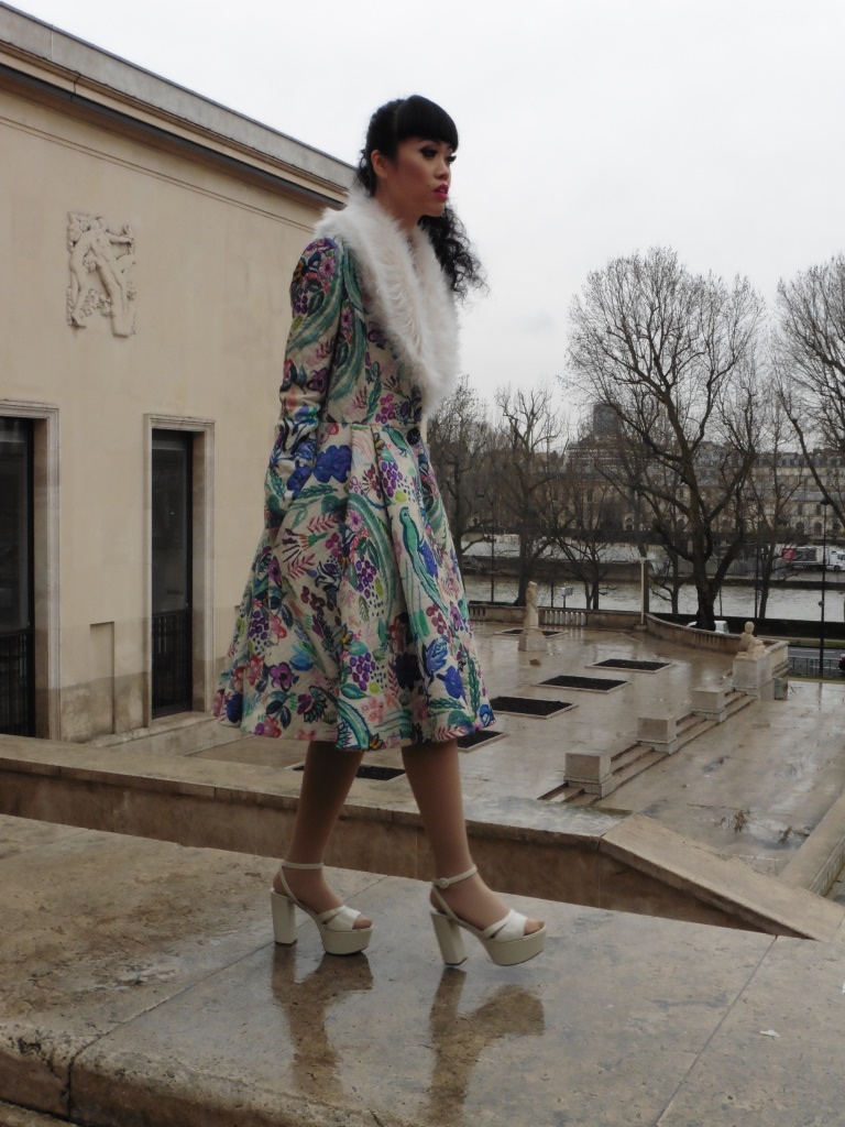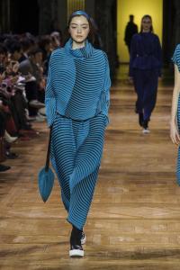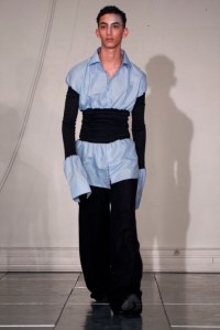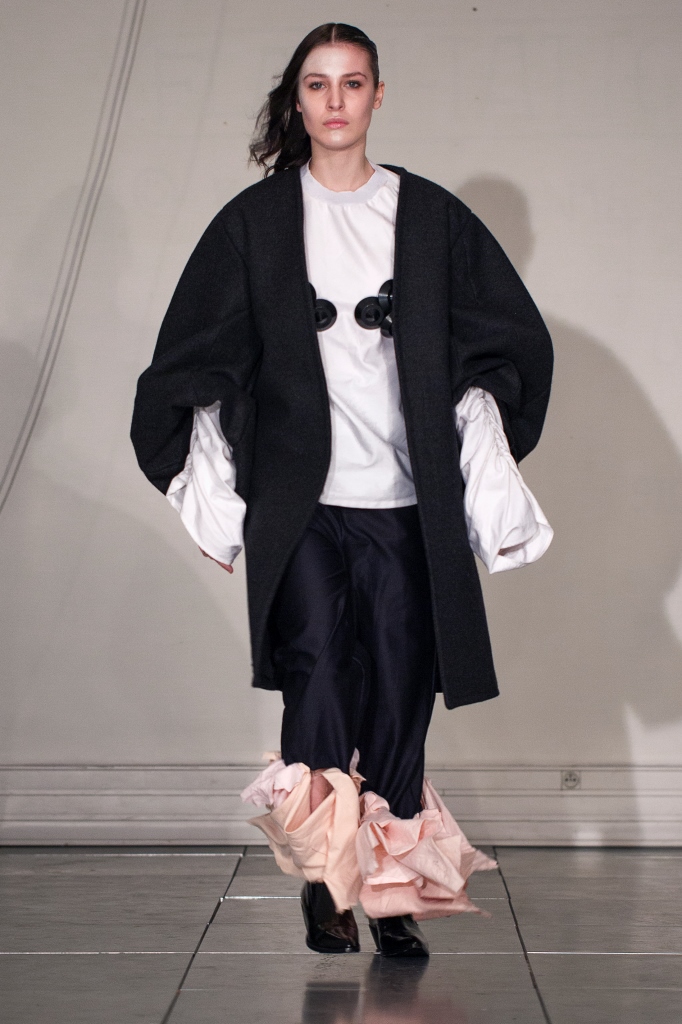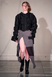 PRESENTATION JOURDEN AU PALAIS DE TOKYO: La marque Jourden, fondée en 2012 par la créatrice Anaïs Mak, originaire de Honk Kong, revisite les classiques féminins avec une certaine subtilité, en jouant sur les décalages. Cette nouvelle collection explore l’idée d’un baroque moderne, à base de silhouettes couture et de broderies précieuses. Les robent se parent de jupons et froufrous délicats. Mélanges de matières exubérants. Volumes ondulant autour de grands volants. Asymétries, motifs dentelle, rayures graphiques, effets de transparence. Les smocks, très présents chez la marque, structurent les jupes longues et les robes à volants. Un effet de collant résille est développé sur les modèles de chaussures créés pour la présentation. Il se dégage de l’ensemble un charme indéniable, empreint de romantisme.