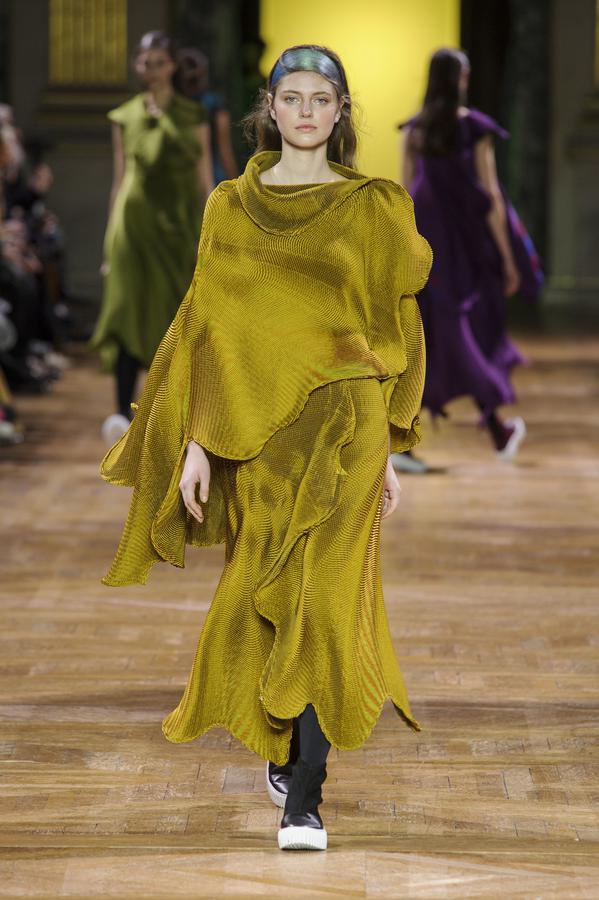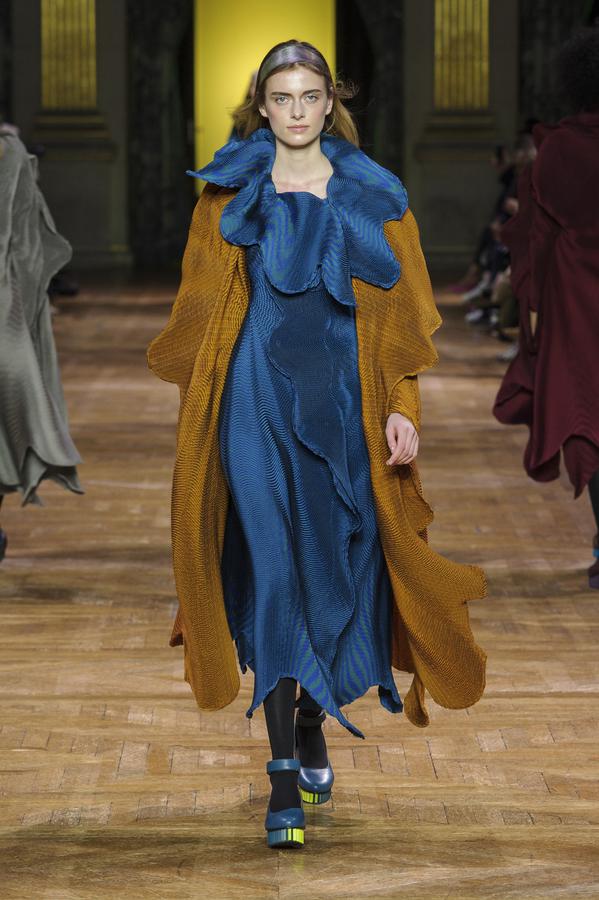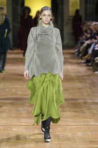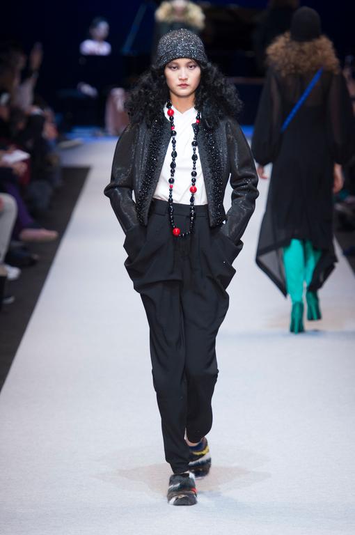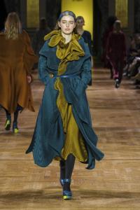 DEFILE SHIATZY CHEN AU GRAND PALAIS: Cette nouvelle collection intitulée « Celebration » est une véritable ode à la fête dans laquelle la créatrice taïwanaise Wang Chen Tsai-Hsia puise son inspiration, comme à son habitude, dans les cultures orientale et occidentale. Une référence tout à la fois au Siècle des Lumières et aux épopées remarquables de la mythologie asiatique. Ainsi des imprimés ancestraux mettant en scène dragons, lions et phoenix se conjuguent avec brio à un style parisien très actuel. Fins collages de dentelles et longues jupes fluides se combinent à la modernité d’une capuche ou d’un matelassé. Vestes et manteaux aux coupes précises flirtent avec des combinaisons et doudounes d’allure plus décontractée. La collection d’une grande richesse dans les coupes et les matières propose tout à la fois manteaux, robes longues et courtes, pantalons, shorts, combinaisons, petits blousons et longs gilets dans une palette resplendissante et très fournie de couleurs vives et chaudes. L’exploit est vraiment de parvenir avec un tel panache à une transposition d’un univers très oriental dans une modernité chic et élégante toute occidentale.