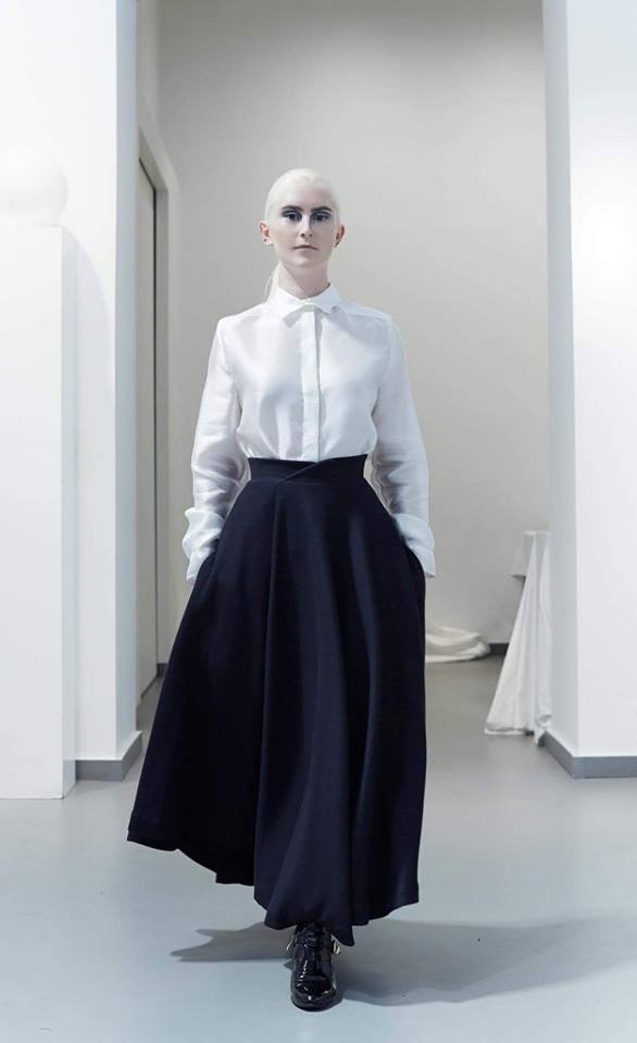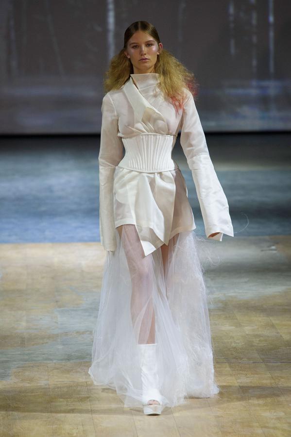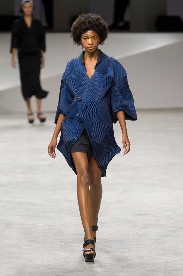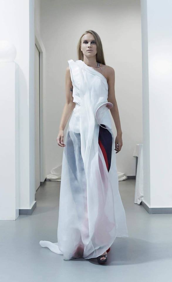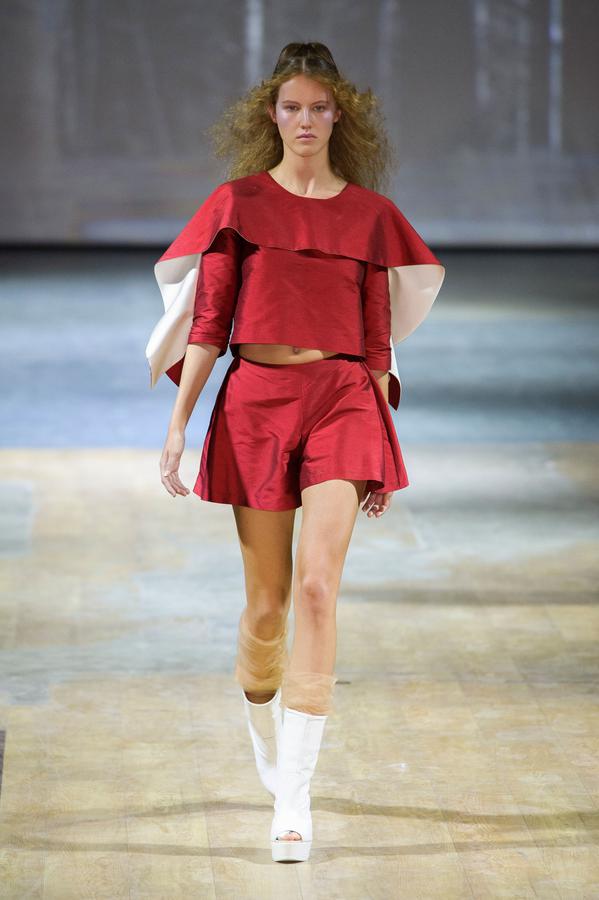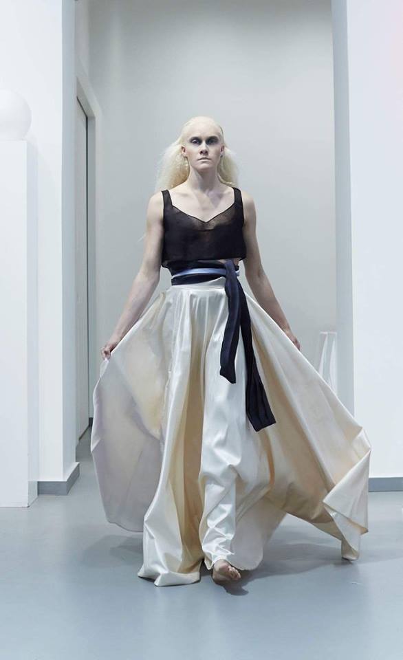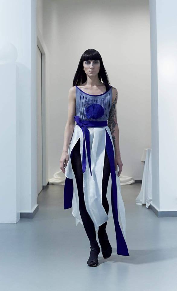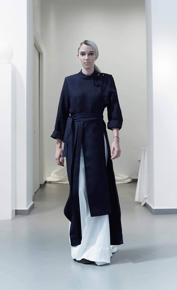 PRESENTATION COPPELIA PIQUE A LA GALERIE ERCO: fidèle à sa volonté d’ancrer la mode dans l’art, la créatrice française Axelle Migé a présenté, par le biais d’une performance de mannequins/danseurs, une collection au style poétique et épuré dont les vêtements, loin d’être statiques, étaient ainsi traversés par un souffle d’énergie revigorante. Des découpes géométriques et architecturées contrastent avec des drapés et des plissés plus fluides et fragiles. Les couleurs oscillent dans un clair-obscur spatial, des camaïeux ton-sur-ton sont électrisés par le bleu indigo, le rouge sombre et des touches de métallisé. Les matières fluides, jersey, laine et coton enduit s’associent à des tissus techniques issus du sporstwear et à des finitions métallisées. Cette conquérante mystérieuse et androgyne, à la force imposante entre modernité et raffinement, est très inspirante!