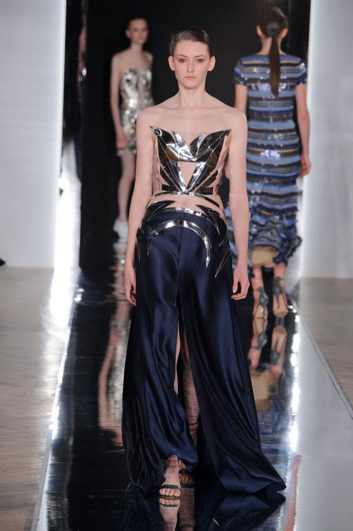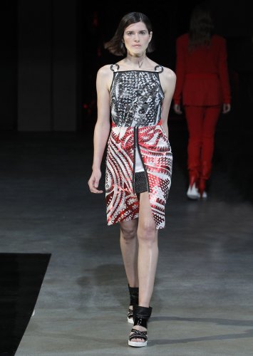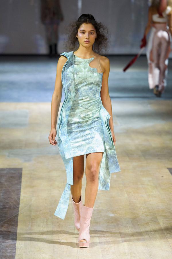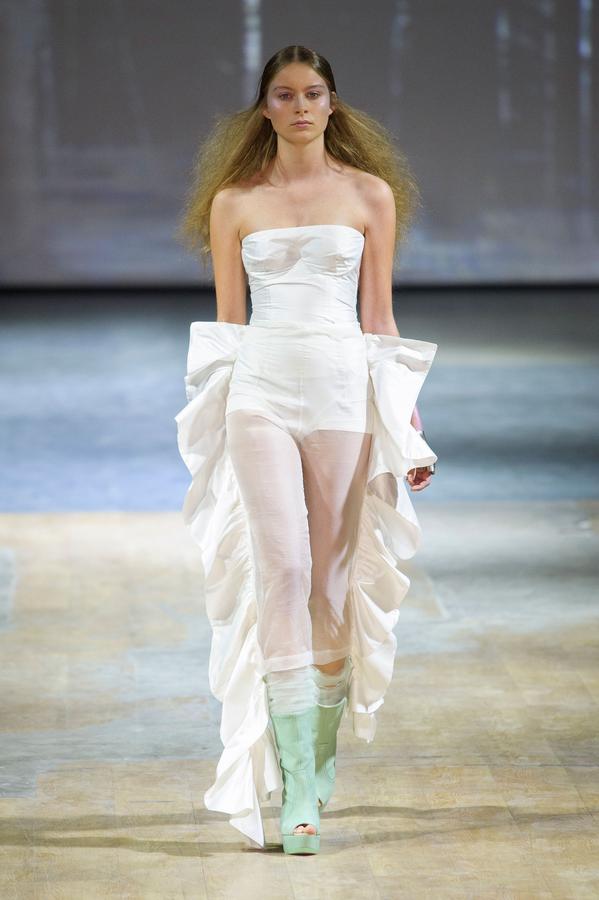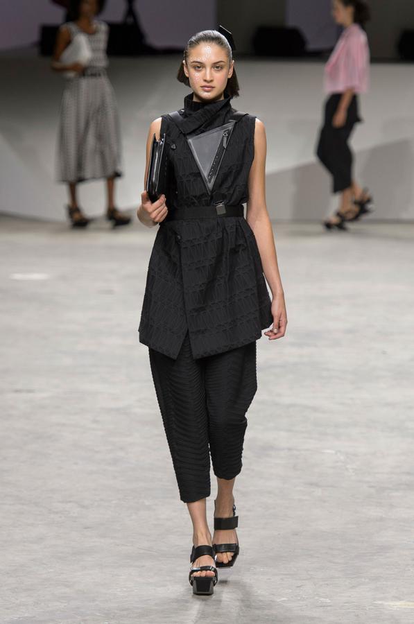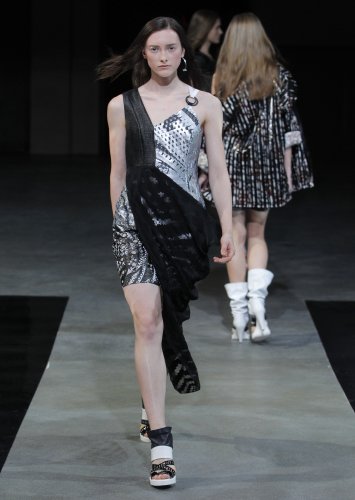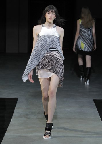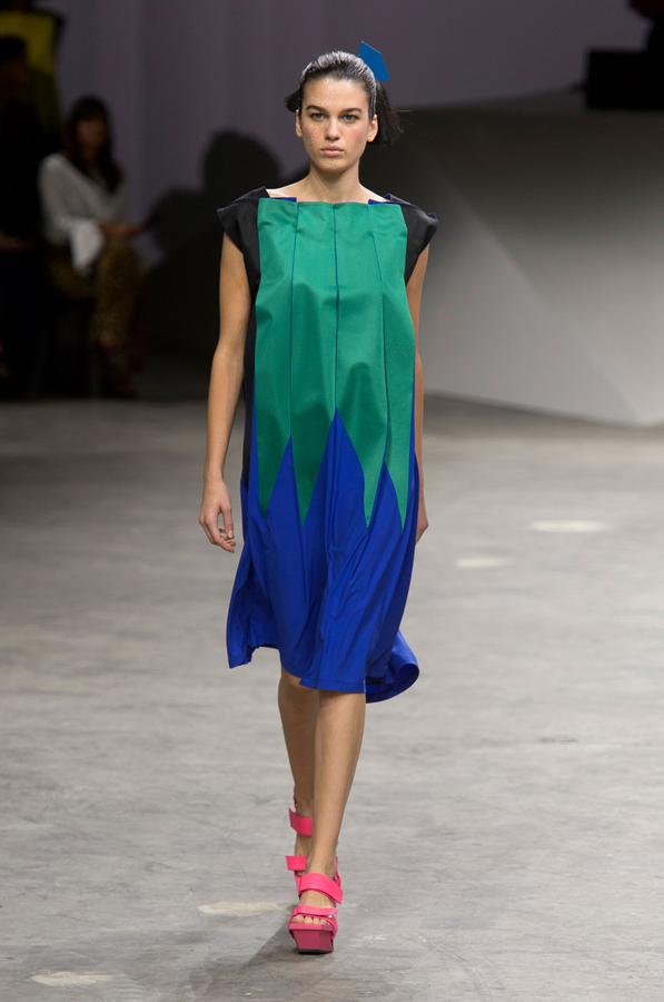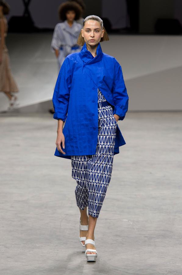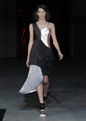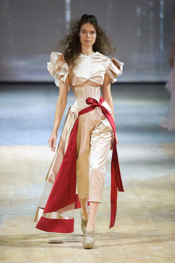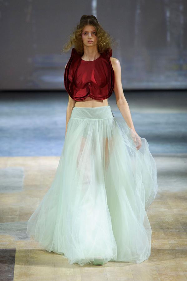 PRESENTATION COPPELIA PIQUE A LA GALERIE ERCO: fidèle à sa volonté d’ancrer la mode dans l’art, la créatrice française Axelle Migé a présenté, par le biais d’une performance de mannequins/danseurs, une collection au style poétique et épuré dont les vêtements, loin d’être statiques, étaient ainsi traversés par un souffle d’énergie revigorante. Des découpes géométriques et architecturées contrastent avec des drapés et des plissés plus fluides et fragiles. Les couleurs oscillent dans un clair-obscur spatial, des camaïeux ton-sur-ton sont électrisés par le bleu indigo, le rouge sombre et des touches de métallisé. Les matières fluides, jersey, laine et coton enduit s’associent à des tissus techniques issus du sporstwear et à des finitions métallisées. Cette conquérante mystérieuse et androgyne, à la force imposante entre modernité et raffinement, est très inspirante!