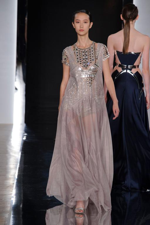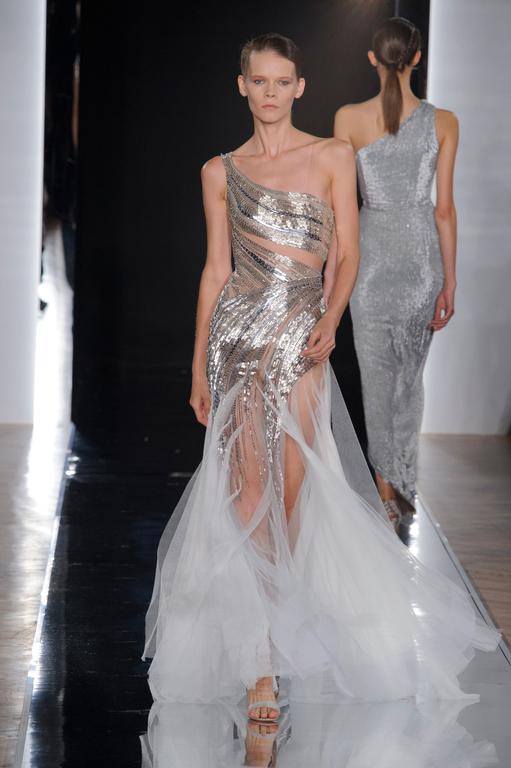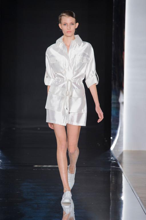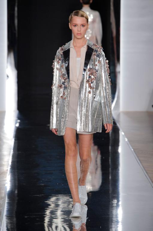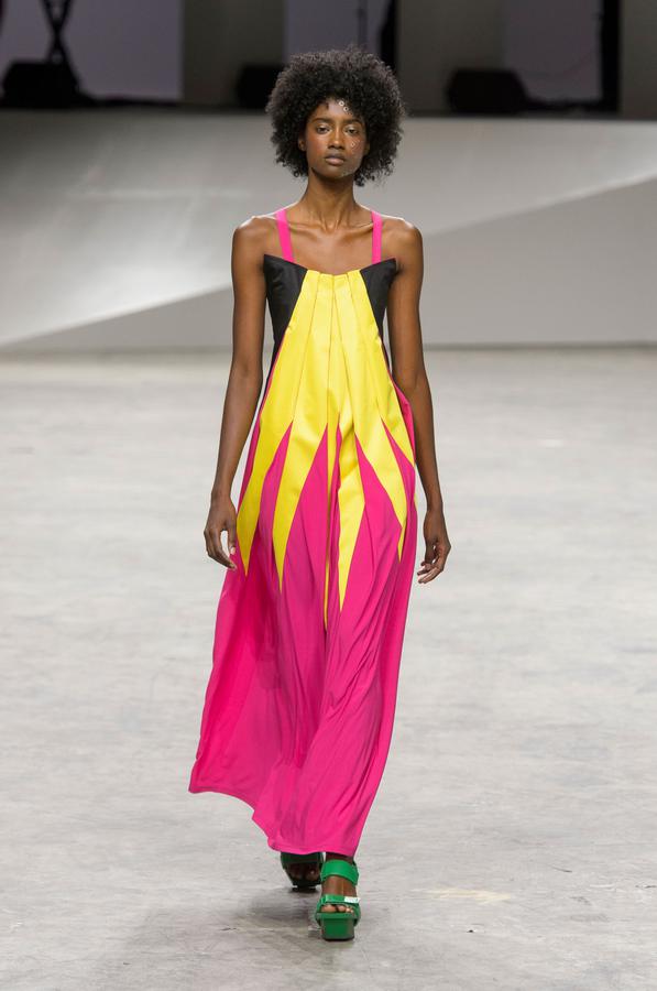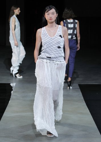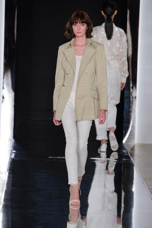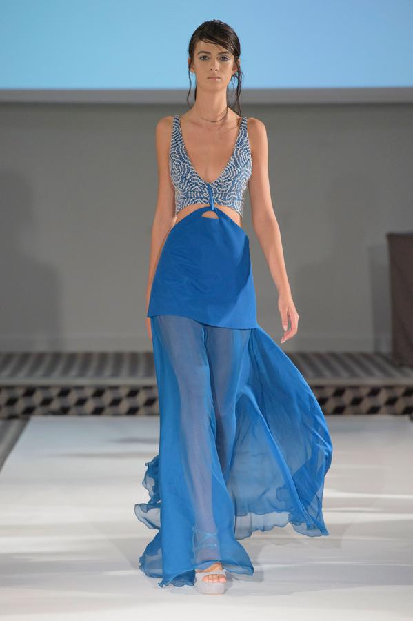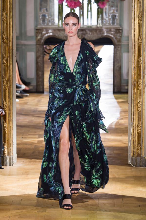 DEFILE PASCAL MILLET A LA FONDATION MONA BISMARCK: pour cette nouvelle collection le créateur français a déclaré s’être inspiré de photos et de films, comme la robe blanche en dentelle portée par la princesse Caroline de Monaco au bal de la Croix-Rouge en 1976, Meryl Streep dans Out of Africa, Bianca Jagger au Studio 54. Ceci conduit à des silhouettes et styles très variés: d’un chic intemporel très glamour à une aventureuse moderne empreinte d’une décontraction nonchalante toute coloniale. Les matières sont toutes aussi diverses: satin ,organza, mousseline plumetis, paillettes, coton, lin. Parmi une riche palette de couleurs raffinées, un kaki très seyant se fait remarquer. Les combinaisons/pantalons et combi-shorts apportent une touche de modernité à cette collection d’une grande élégance.
