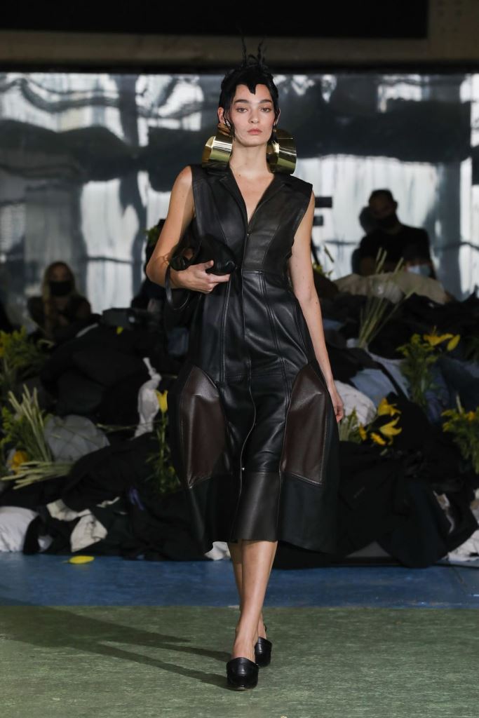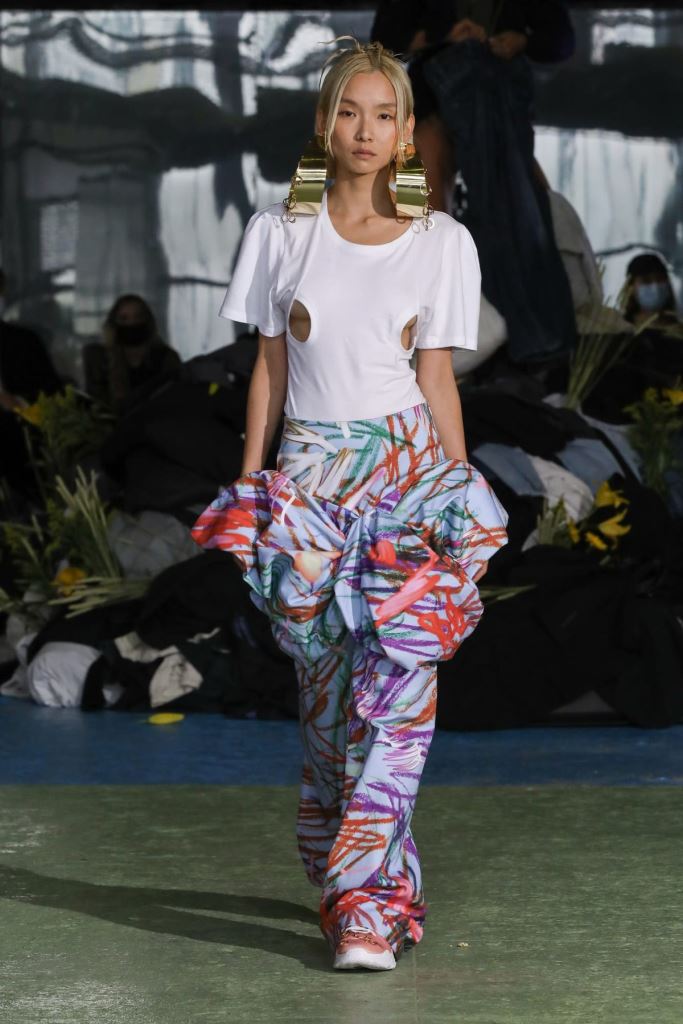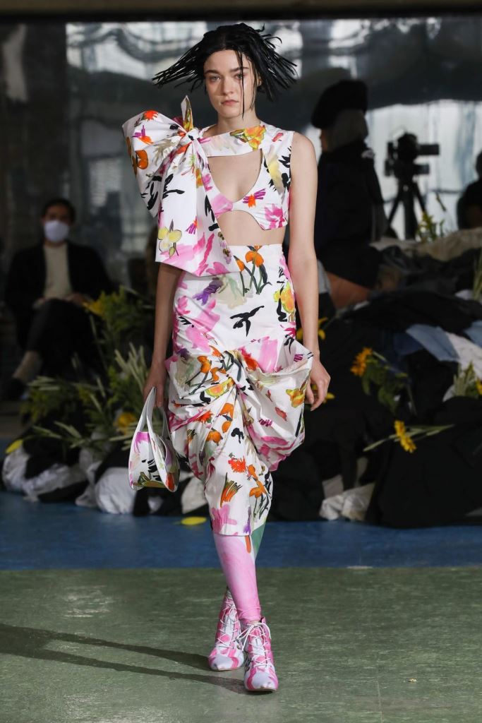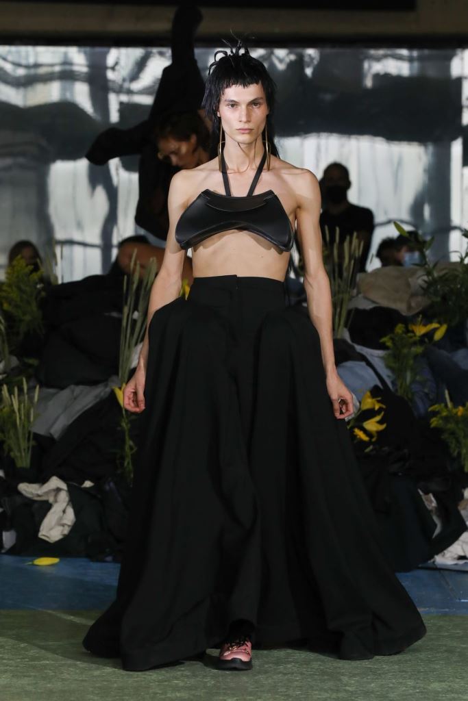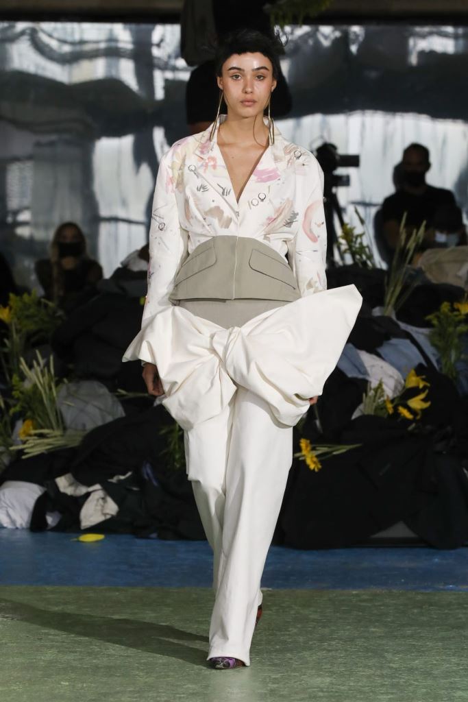 DEFILE MAITREPIERRE DANS LE 11EME ARRONDISSEMENT: Pour le premier défilé de sa marque créée en 2018 et portant son nom de famille le jeune créateur parisien Alphonse Maitrepierre a proposé une nouvelle déclinaison de son style entre prêt-à-porter et couture où se côtoient références historiques et avant-garde. Imaginée pendant le premier confinement et avec pour référence l’artiste plasticienne féministe allemande Hannah Höch, la collection intitulée « World in Progress » explore l’idée de pénurie avec optimisme. Les codes de la couture sont ainsi revisités au travers de silhouettes originales et délicates réalisées à partir de vêtements recyclés, draps de famille, deadstocks de tissus, sacs plastiques et autres déchets. L’ensemble est plein de vitalité et révèle un sens du détail affirmé.