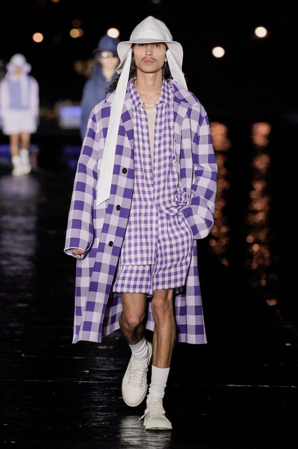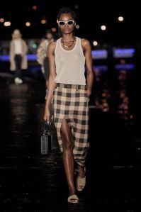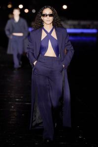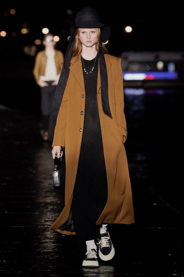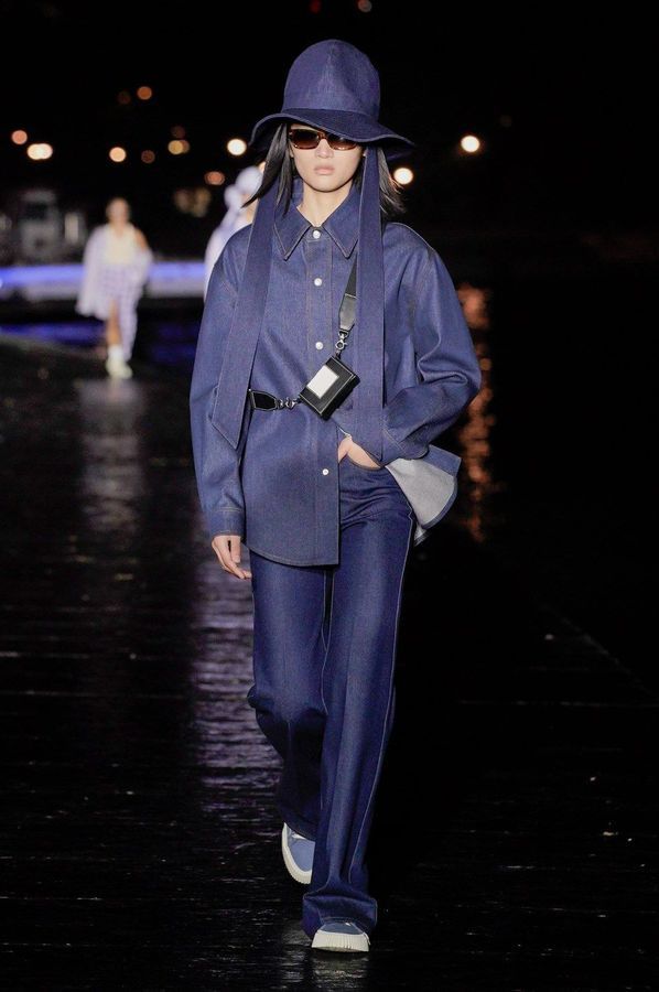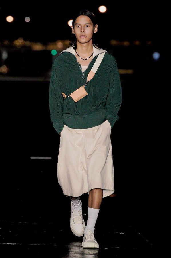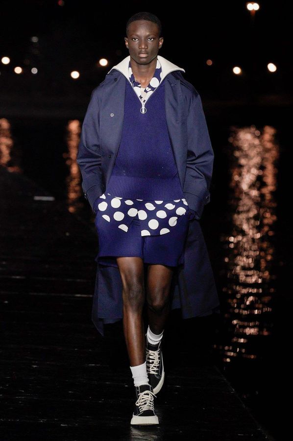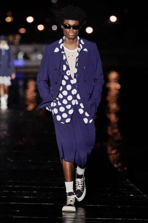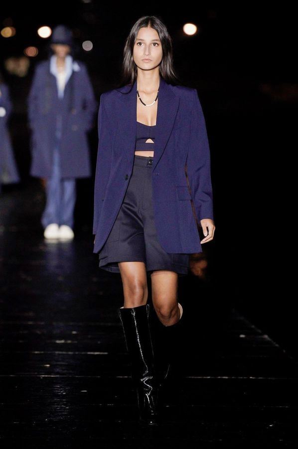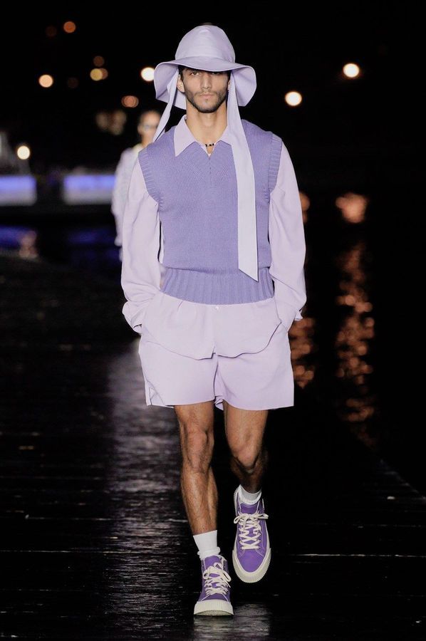 DEFILE AMI SUR LE QUAI HENRI IV: Alexandre Mattiussi, le fondateur et créateur de la marque AMI, a relevé le défi d’un défilé physique pour son entrée dans le calendrier féminin de la fashion week parisienne. Imaginée pendant le premier confinement cette collection mixte, présentée la nuit tombée en bord de Seine, célèbre l’élégance décontractée parisienne en toute simplicité en revisitant des looks des années 70 et 90. Pour la femme: trenchs en cuir verni, minijupes, robes noires échancrées, robes-chemises à volants volumineux, sahariennes ou shorts à gros pois. Pour l’homme: pantalons en cuir verni, shorts amples, gilets courts sans manches portés à même la peau, chemises oversize, ensembles ton sur ton. Les teintes sont chic et sobres: noir, écru, beige, camel, vert sapin, violet, bleu denim.