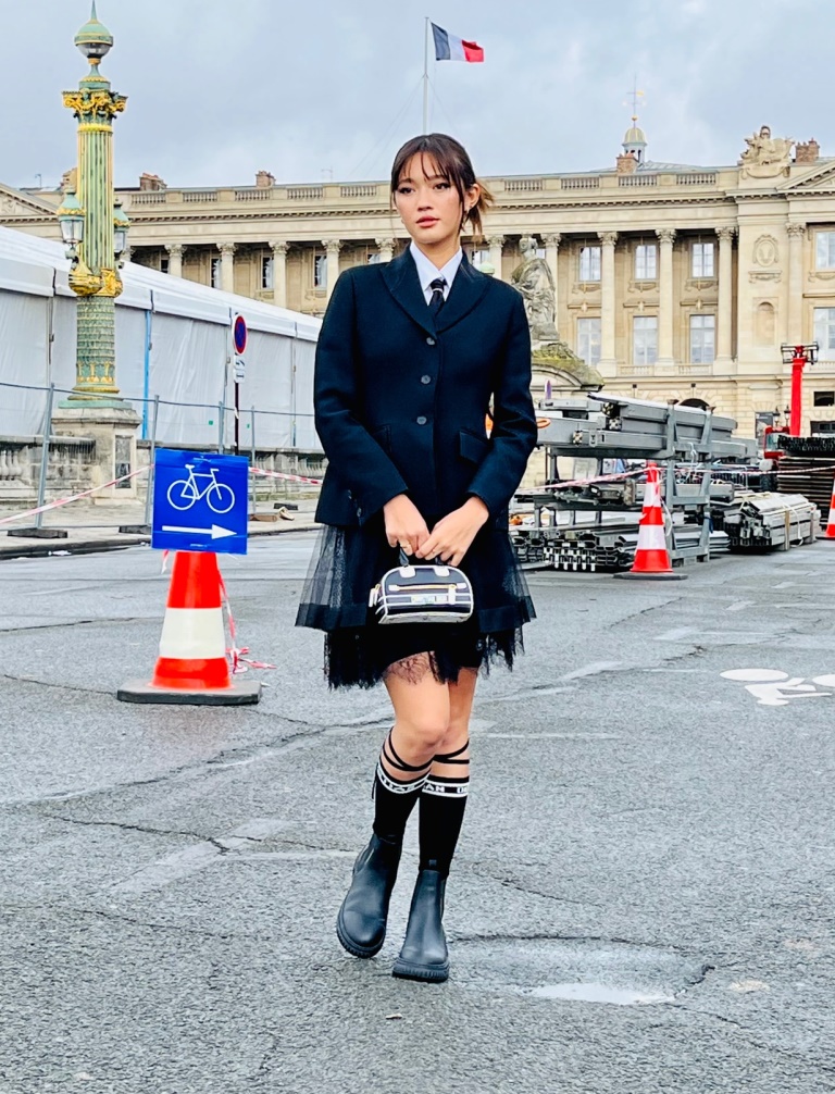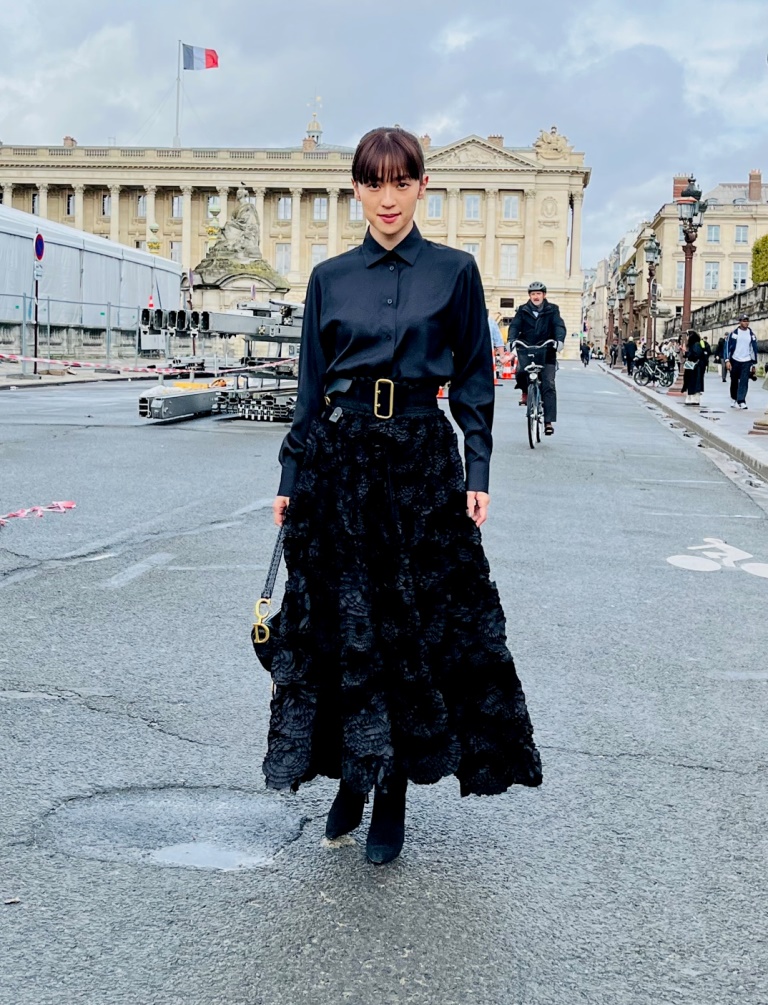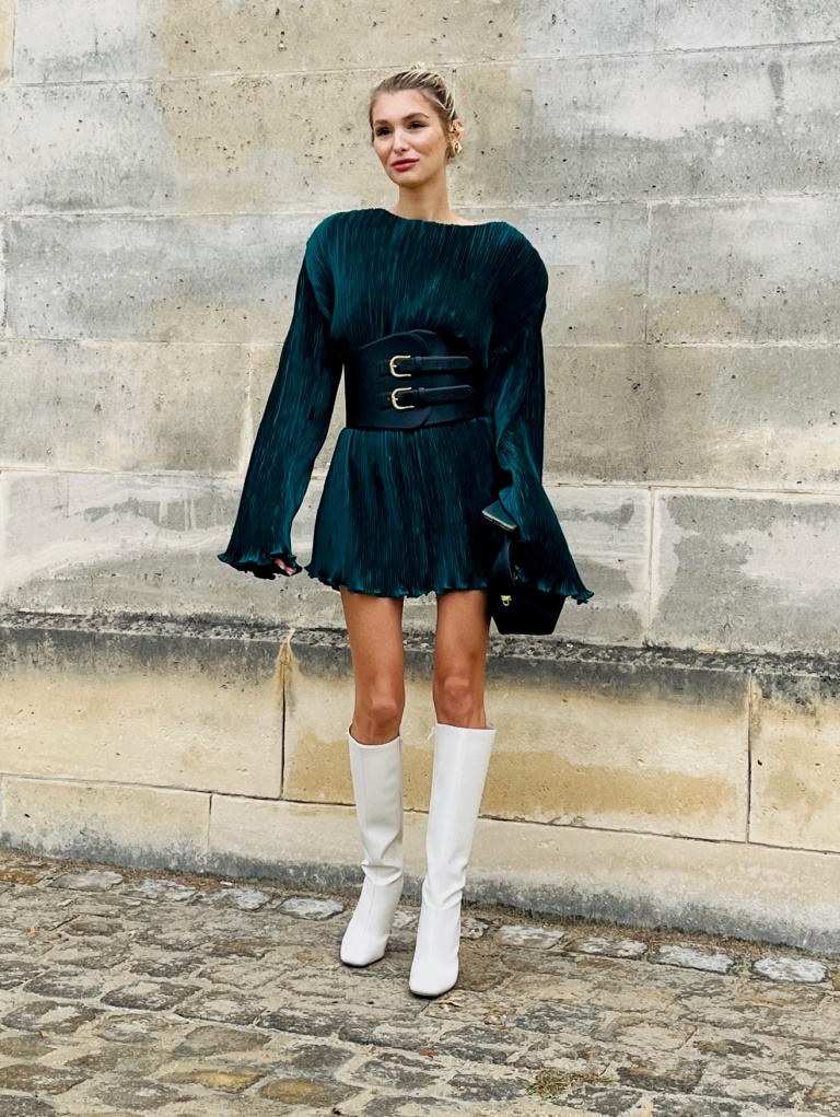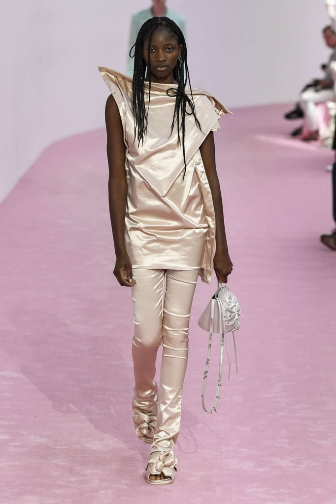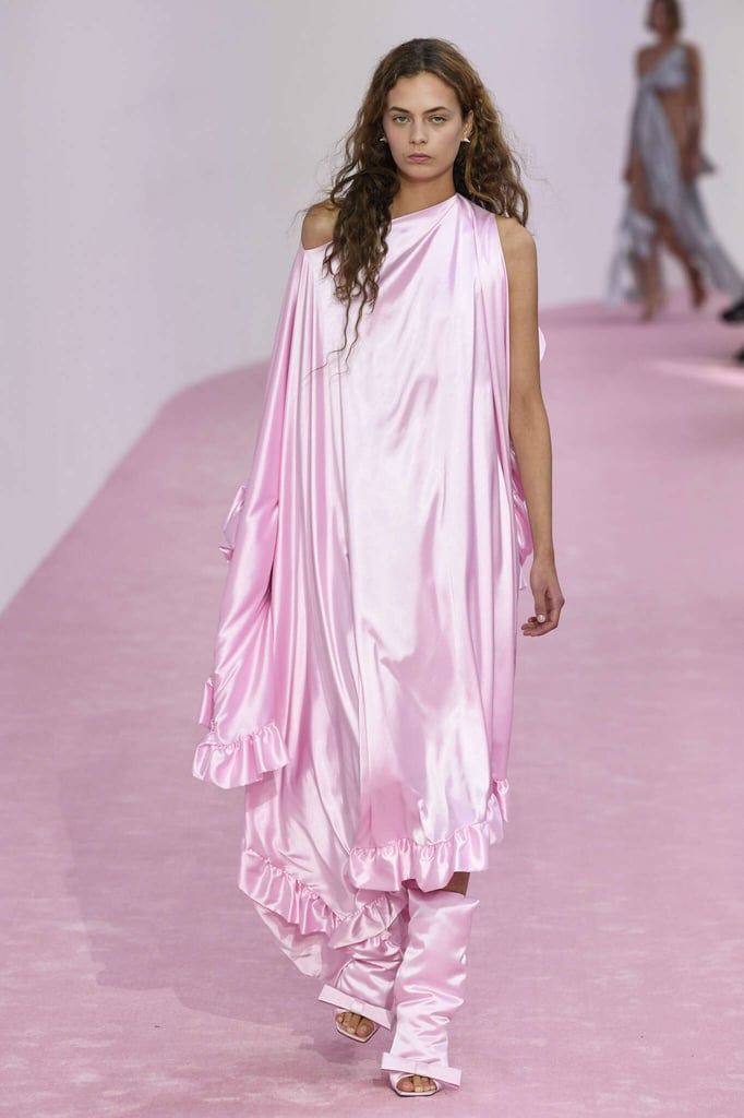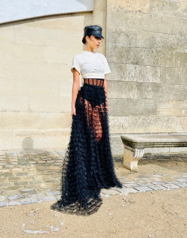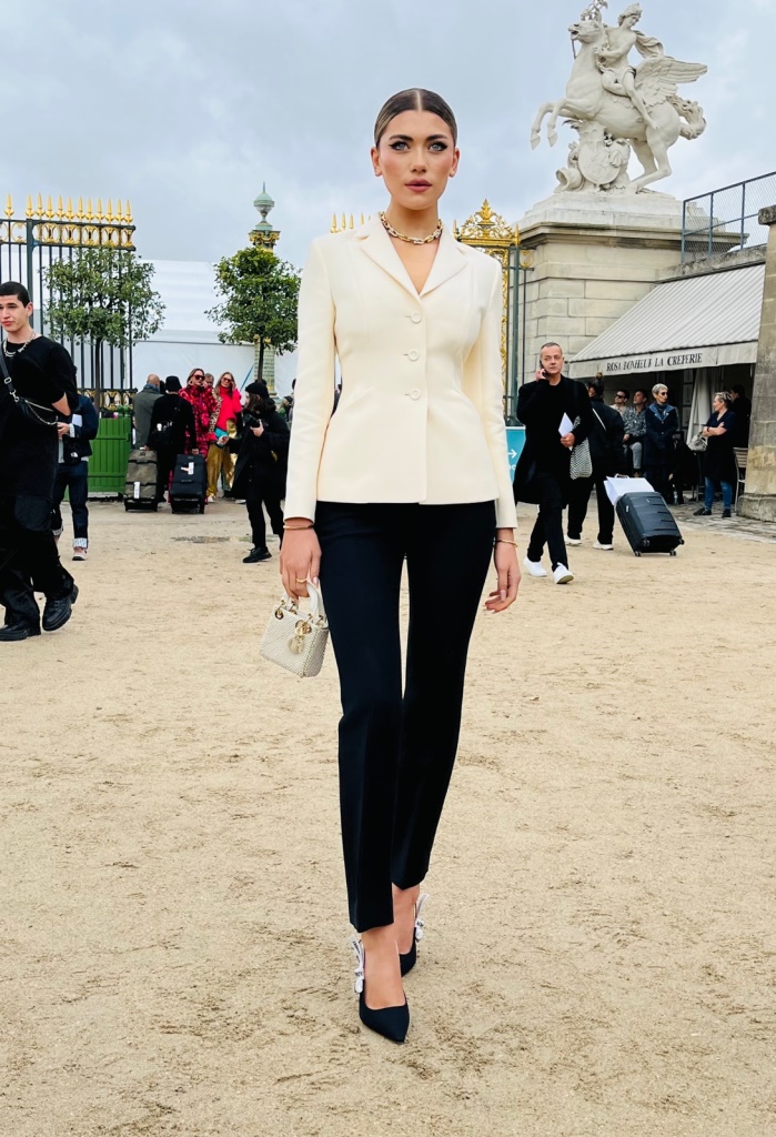 DEFILE VICTORIA BECKHAM AU VAL-DE-GRACE: Pour son premier défilé à Paris (alors qu’elle défilait précédemment à New York ou Londres) l’ancienne pop star devenue créatrice de mode en 2008 a fait évoluer son style vers quelque chose de plus abouti, sophistiqué et sexy. Les robes sont élancées, artistiquement drapées ou froncées, ou coupées en biais dans une toile de lin, en mousseline ou en organza imprimé. Une touche de fantaisie avec des leggings et des collants en dentelle monogrammée. Une robe courte avec une ouverture en forme de coeur dévoile la chute des reins. Un crop top est fait de pampilles entassées. Aussi une veste de motard originale avec des revers pointus embossés, un blazer rose élégant et un autre en maille extensible translucide qui dégage une grande énergie.