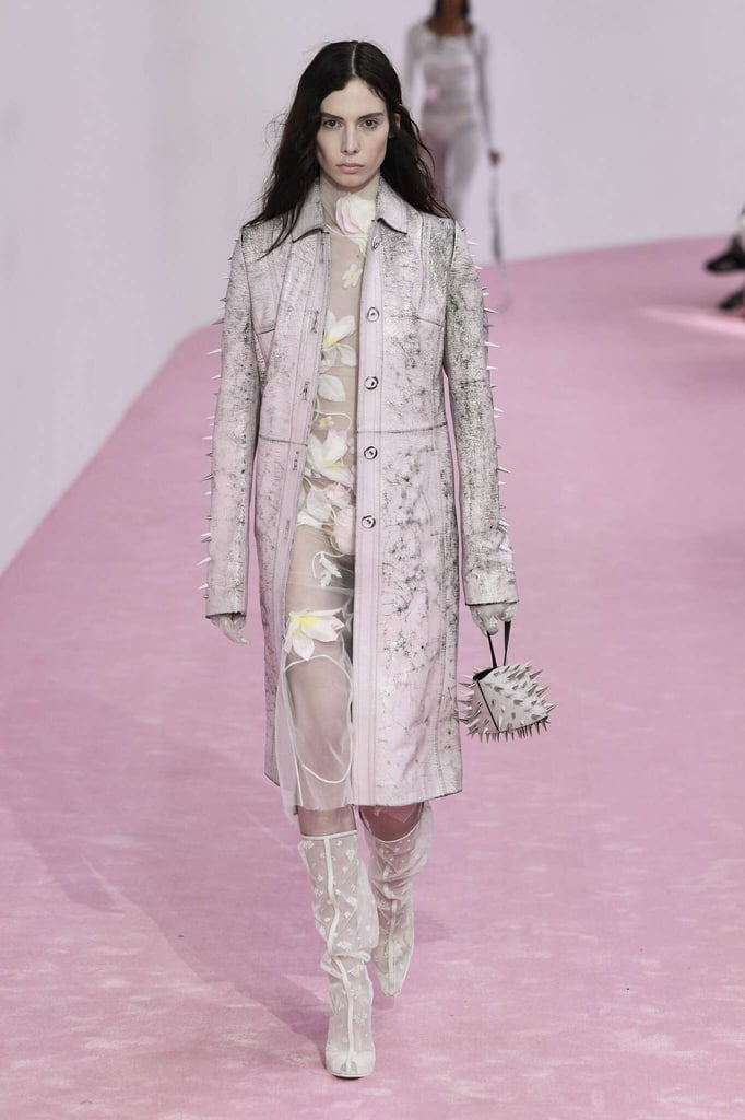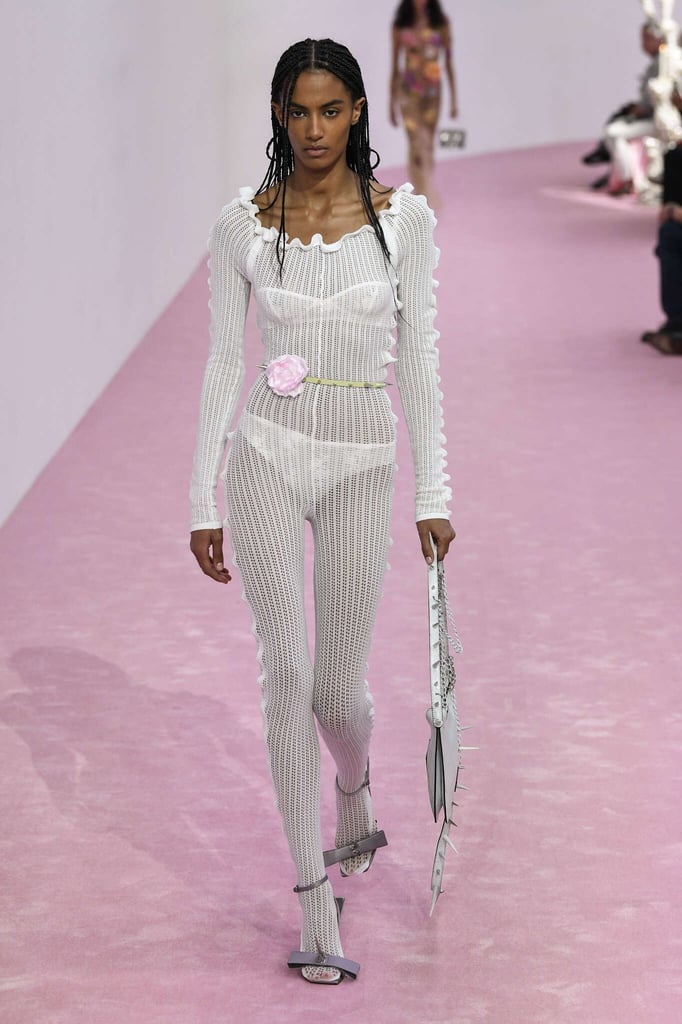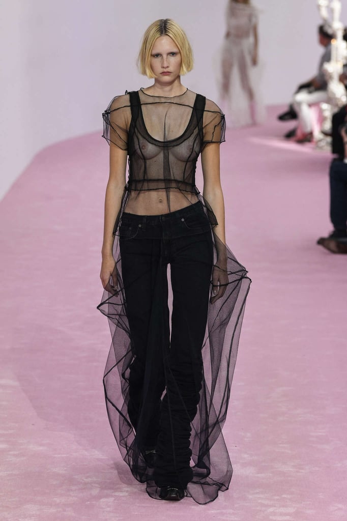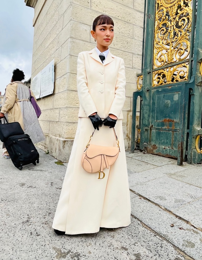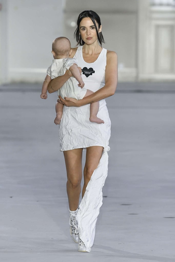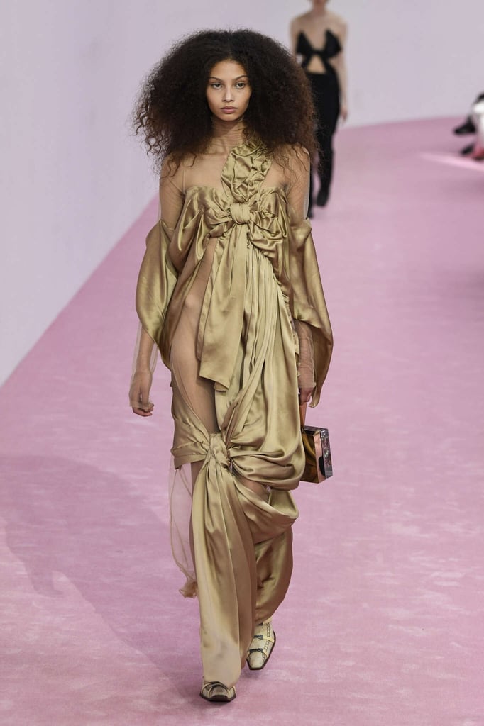 DEFILE VICTORIA BECKHAM AU VAL-DE-GRACE: Pour son premier défilé à Paris (alors qu’elle défilait précédemment à New York ou Londres) l’ancienne pop star devenue créatrice de mode en 2008 a fait évoluer son style vers quelque chose de plus abouti, sophistiqué et sexy. Les robes sont élancées, artistiquement drapées ou froncées, ou coupées en biais dans une toile de lin, en mousseline ou en organza imprimé. Une touche de fantaisie avec des leggings et des collants en dentelle monogrammée. Une robe courte avec une ouverture en forme de coeur dévoile la chute des reins. Un crop top est fait de pampilles entassées. Aussi une veste de motard originale avec des revers pointus embossés, un blazer rose élégant et un autre en maille extensible translucide qui dégage une grande énergie.