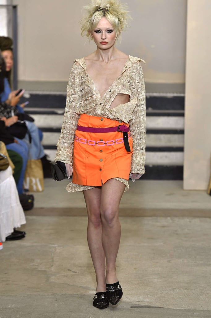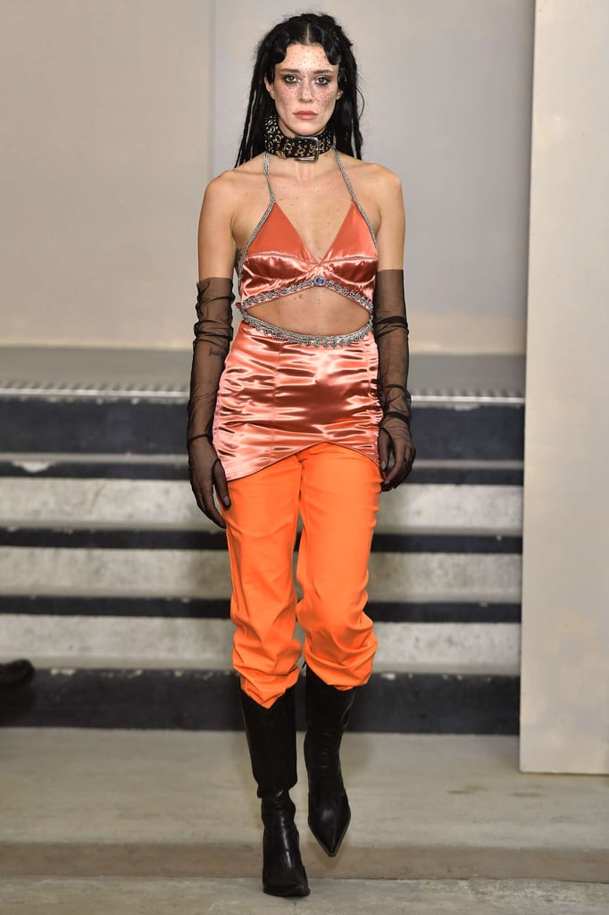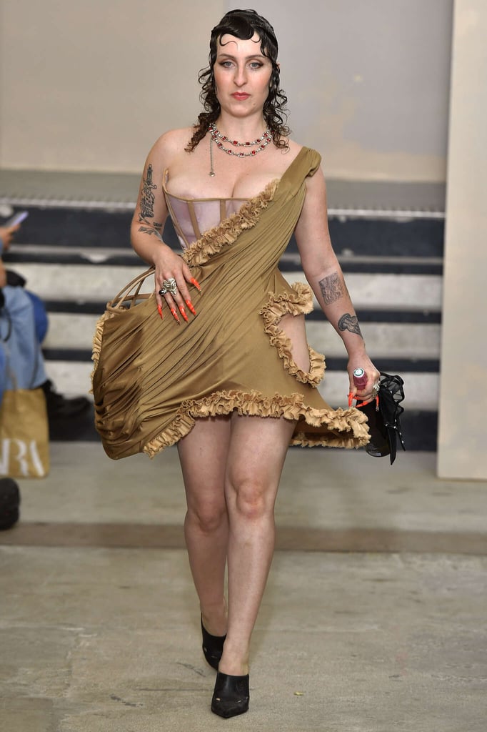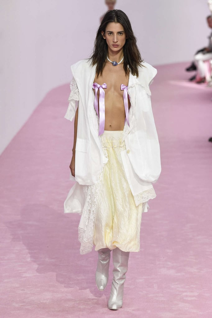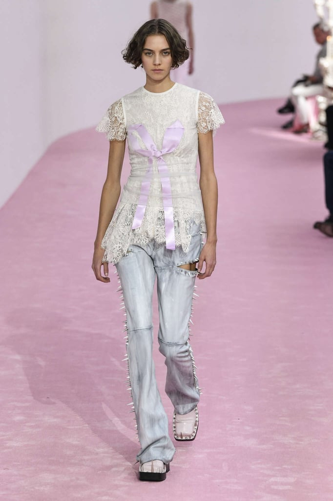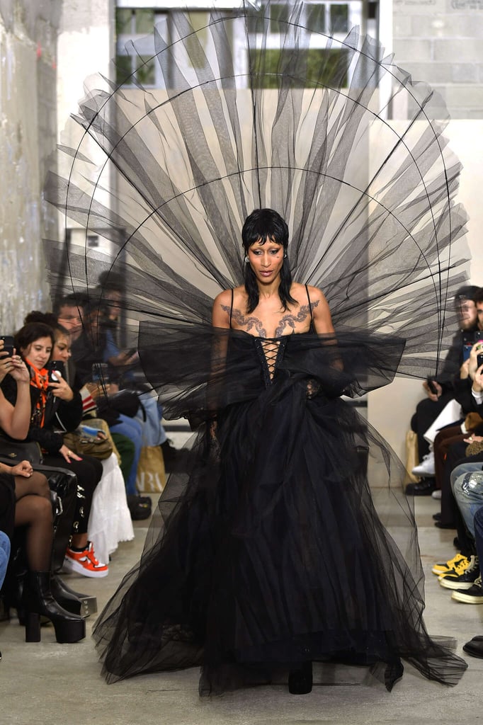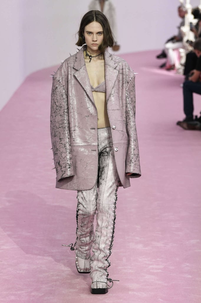 DEFILE VICTORIA BECKHAM AU VAL-DE-GRACE: Pour son premier défilé à Paris (alors qu’elle défilait précédemment à New York ou Londres) l’ancienne pop star devenue créatrice de mode en 2008 a fait évoluer son style vers quelque chose de plus abouti, sophistiqué et sexy. Les robes sont élancées, artistiquement drapées ou froncées, ou coupées en biais dans une toile de lin, en mousseline ou en organza imprimé. Une touche de fantaisie avec des leggings et des collants en dentelle monogrammée. Une robe courte avec une ouverture en forme de coeur dévoile la chute des reins. Un crop top est fait de pampilles entassées. Aussi une veste de motard originale avec des revers pointus embossés, un blazer rose élégant et un autre en maille extensible translucide qui dégage une grande énergie.
