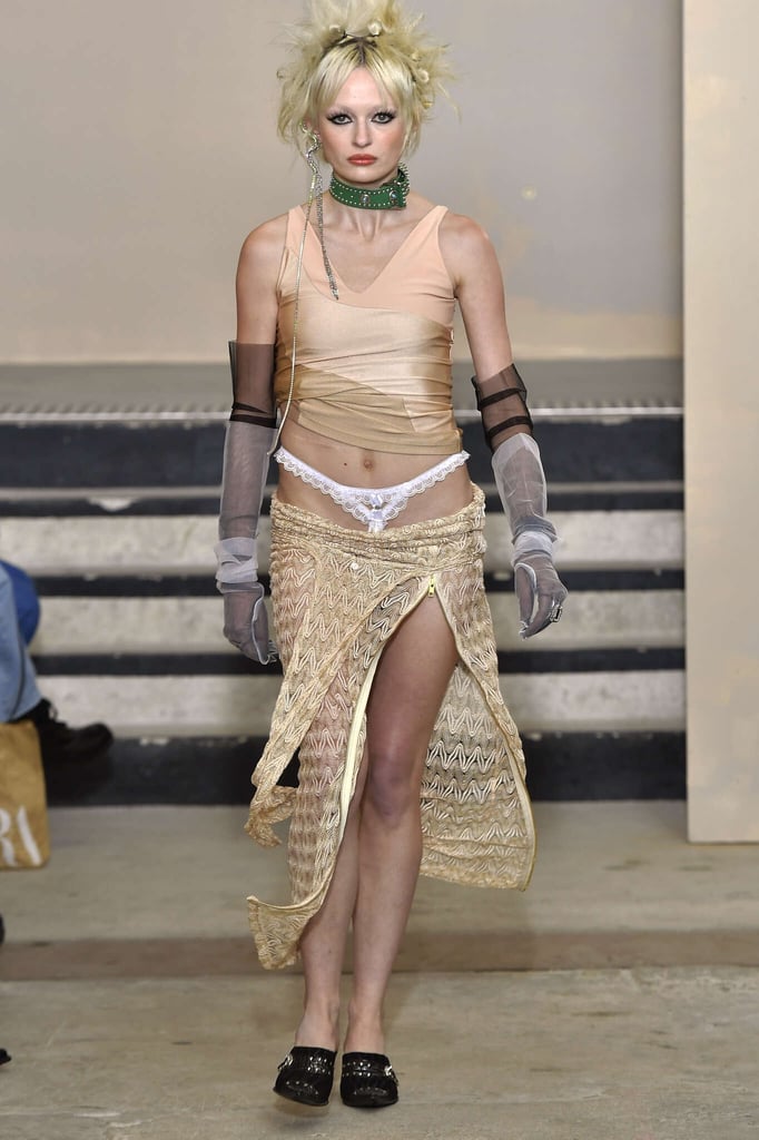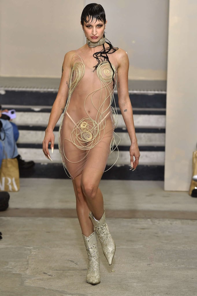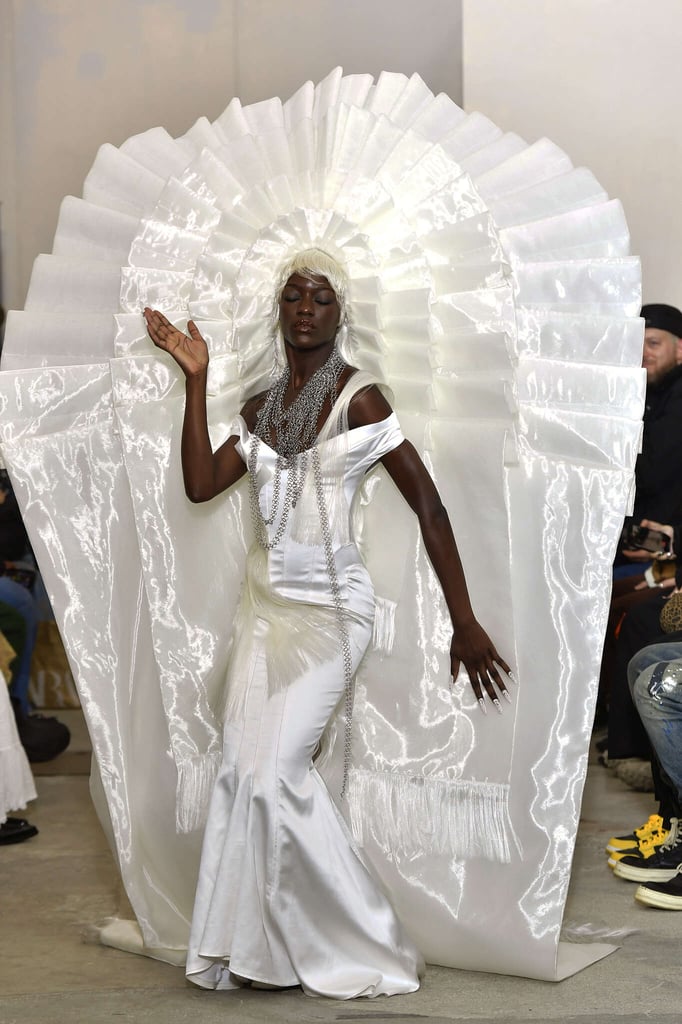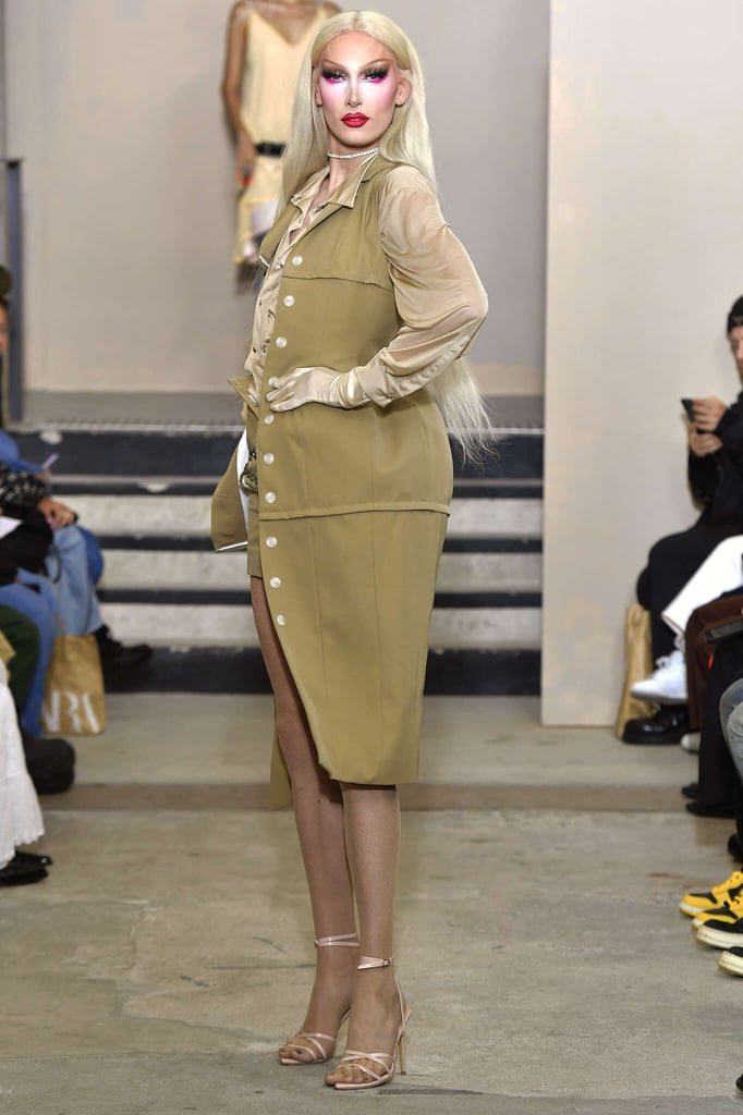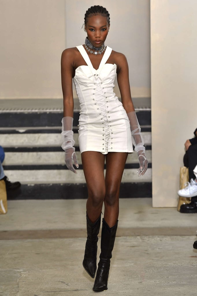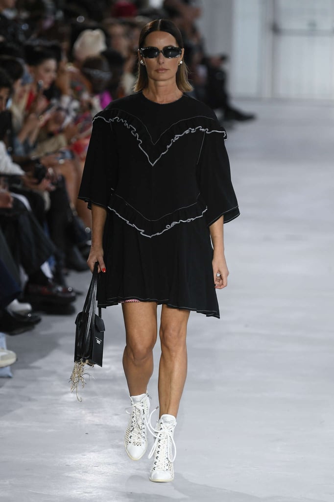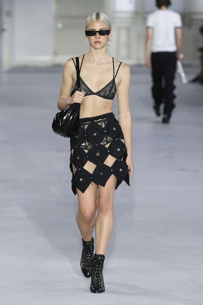 DEFILE VICTORIA BECKHAM AU VAL-DE-GRACE: Pour son premier défilé à Paris (alors qu’elle défilait précédemment à New York ou Londres) l’ancienne pop star devenue créatrice de mode en 2008 a fait évoluer son style vers quelque chose de plus abouti, sophistiqué et sexy. Les robes sont élancées, artistiquement drapées ou froncées, ou coupées en biais dans une toile de lin, en mousseline ou en organza imprimé. Une touche de fantaisie avec des leggings et des collants en dentelle monogrammée. Une robe courte avec une ouverture en forme de coeur dévoile la chute des reins. Un crop top est fait de pampilles entassées. Aussi une veste de motard originale avec des revers pointus embossés, un blazer rose élégant et un autre en maille extensible translucide qui dégage une grande énergie.