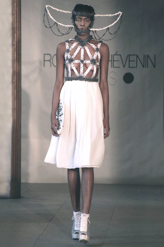 Défilé Reouven Zana au bar/café Echelle 1 (12ème arrondissement): première collection couture pour ce jeune créateur parisien de 17 ans! Autodidacte et fasciné par Karl Lagerfeld, toujours très élégant et doté d’une personnalité très attachante, il jongle entre ses cours dans un lycée parisien et sa passion pour la mode. Pour cette collection intitulée « Premier Bourgeon » il a trouvé son inspiration chez Brigitte Bardot et l’idée de liberté qu’elle incarne. Ceci se traduit par des silhouettes romantiques d’une grande pureté, mettant en scène des jeunes princesses des temps modernes, chic et sexy à la fois. Matières nobles comme le crochet, la dentelle ou encore la laine. De petites fleurs tricotées par des doigts de fée apparaissent sur certaines tenues. Bravo! On lui souhaite plein succès dans une carrière qui apparaît d’ores et déjà bien engagée!