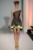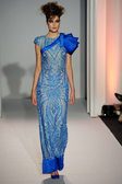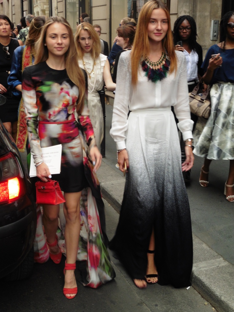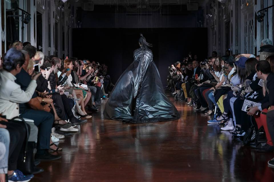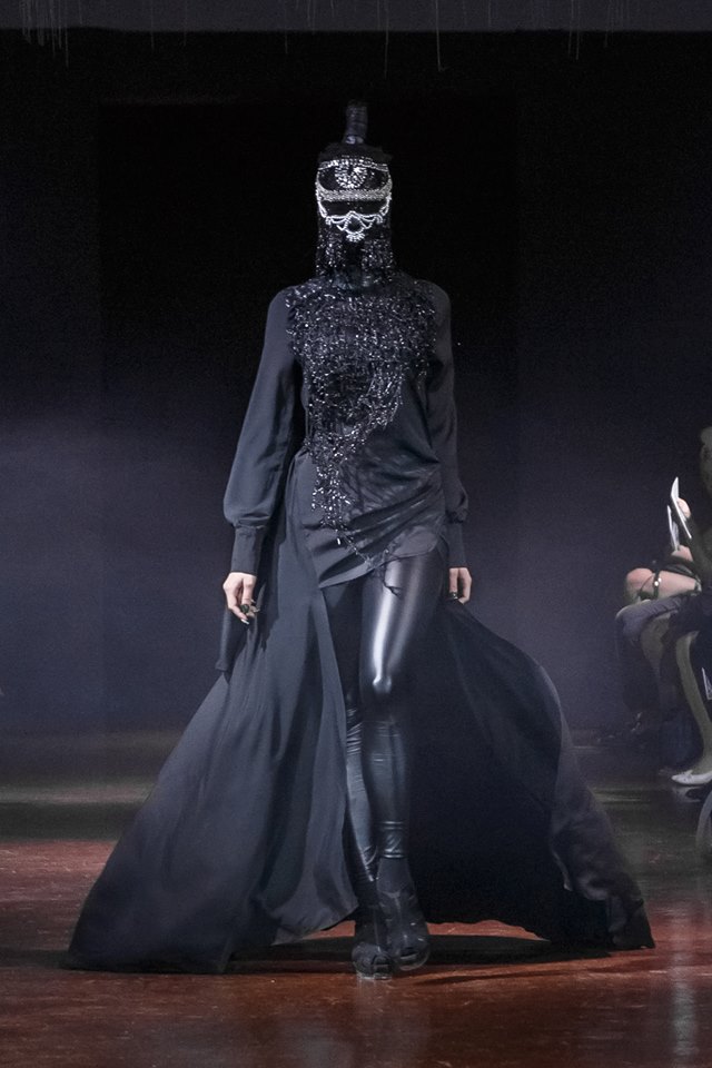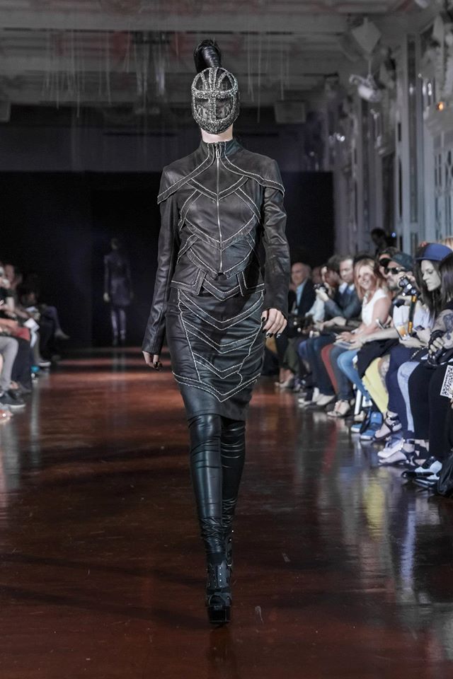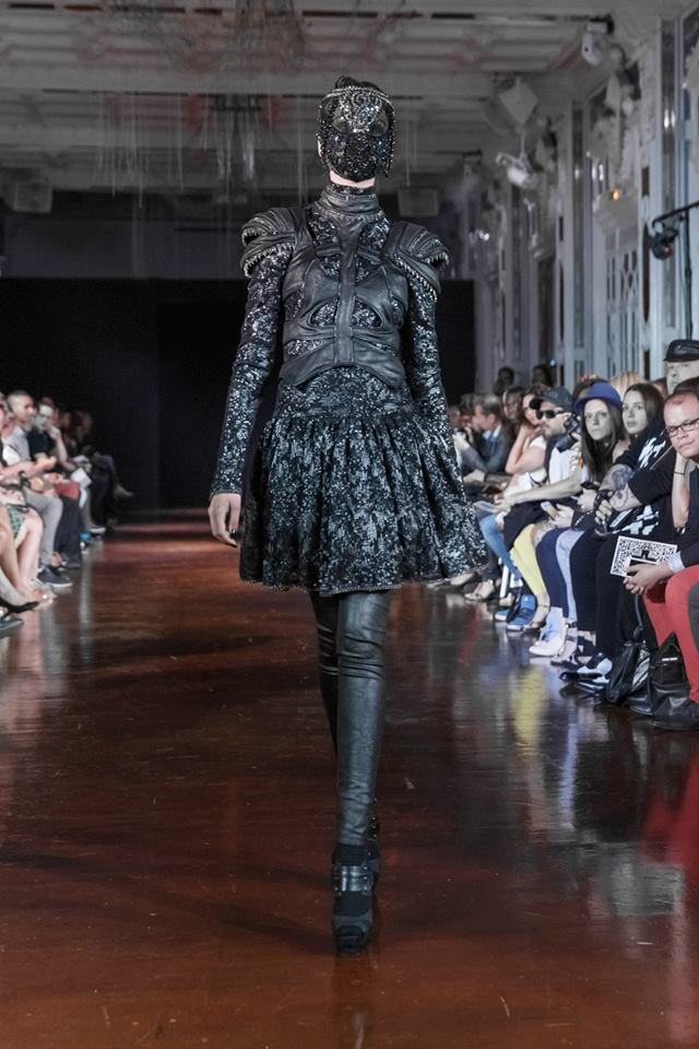 Défilé Zvonko Markovic dans la Nef du Palais Brongniart: premier défilé officiel à Paris pour le couturier serbe, qui présente une collection intitulée » Midnight Butterfly » et qui vise à célébrer le voyage de la chenille se transformant en papillon de nuit. Cela se traduit par des mélanges de soie déchirée, crêpe georgette, tulle de soie, satin, dentelle… et de cuir et peaux d’Anaconda. Chaque partie de ce périple est figurée dans des tons noir, or, noisette et bronze. Il en ressort une femme séduisante, sûre d’elle, résolument moderne.