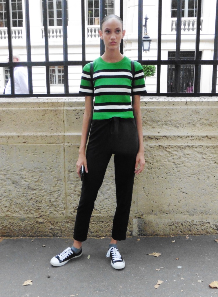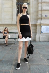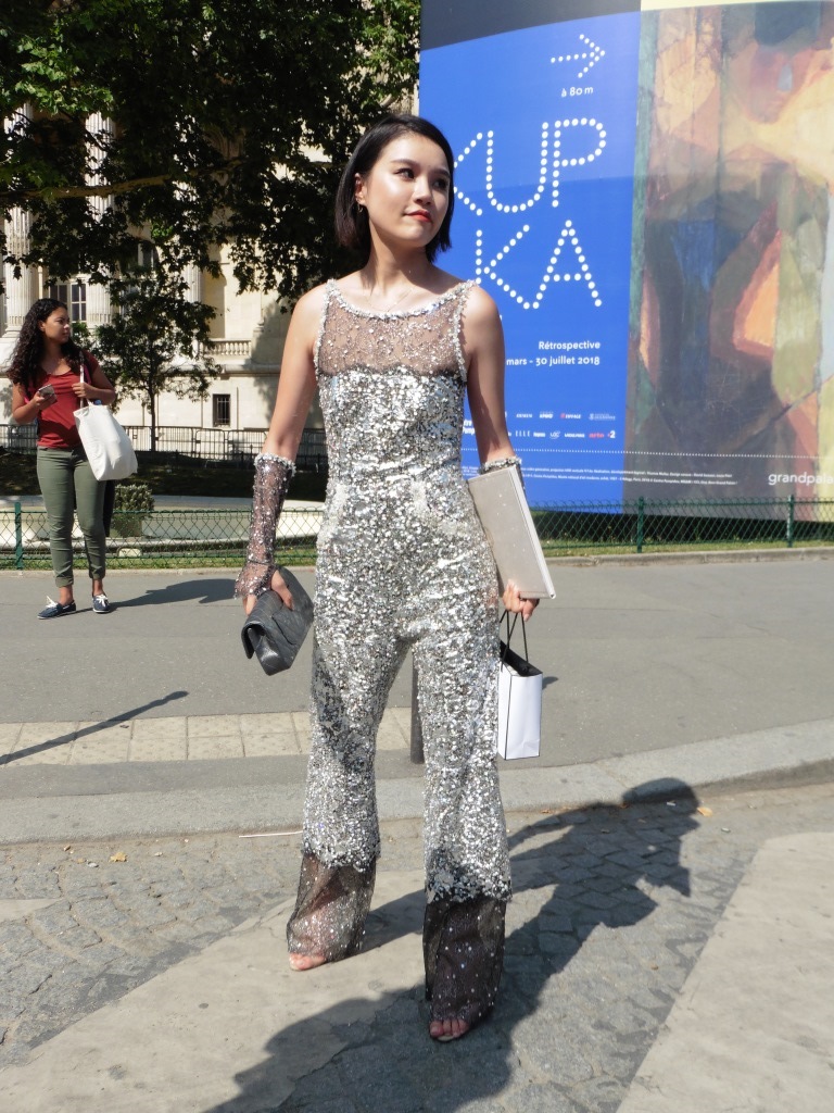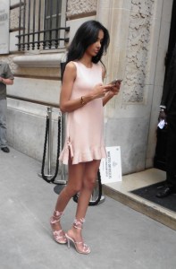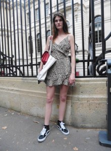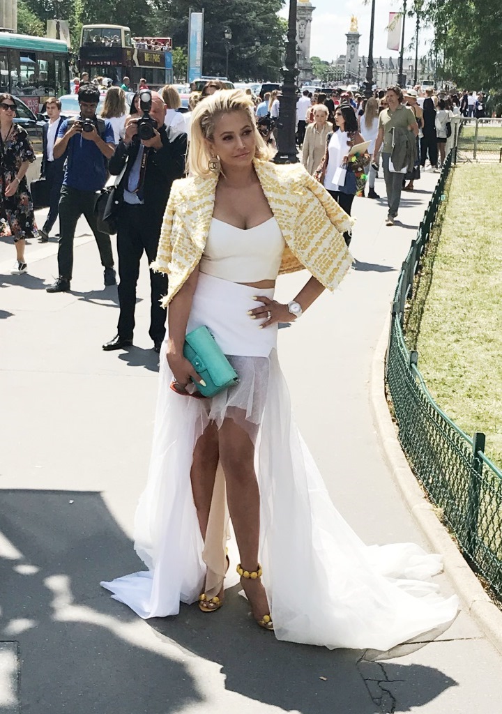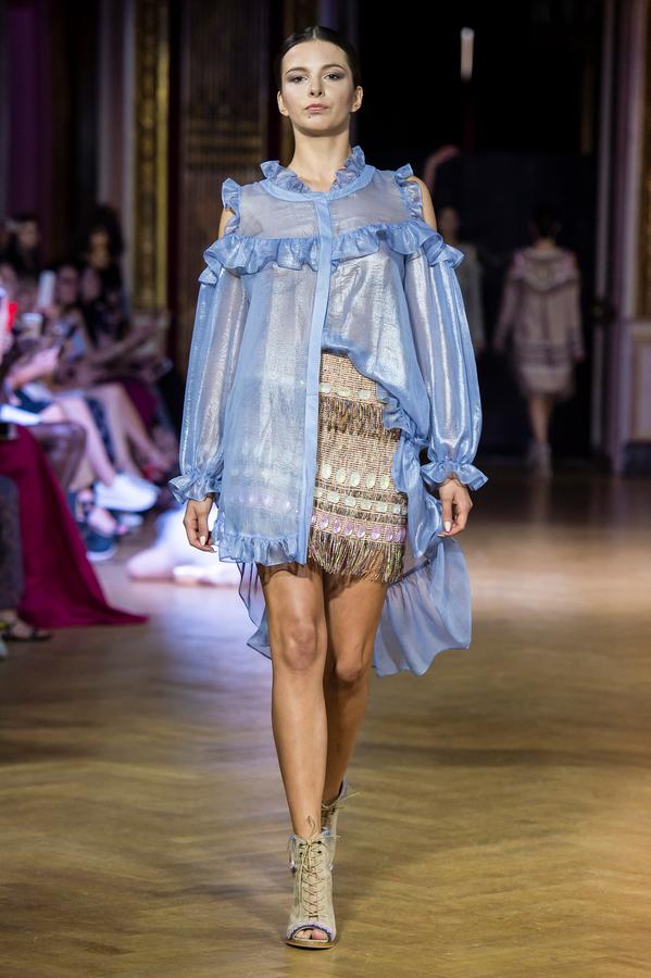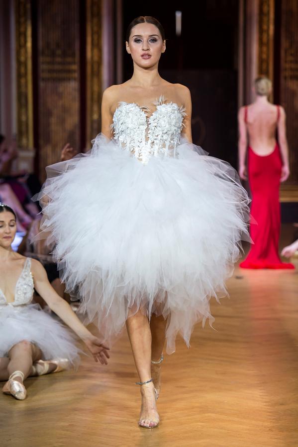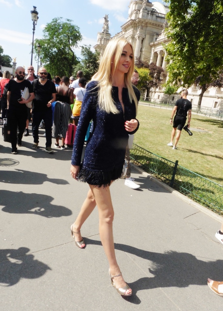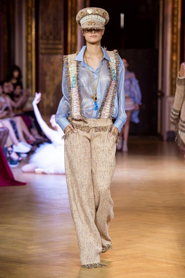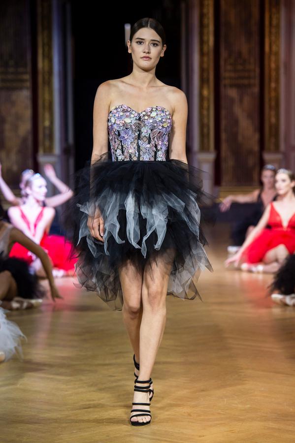 DEFILE RANI ZAKHEM AU PAVILLON CAMBON: Le couturier libanais a intitulé sa nouvelle collection « Telle une déesse guerrière dans son armure de cristaux » et a voulu en faire un hommage à la femme combattante et combative, « glamazone » à la fois séduisante et déterminée. Le motif camouflage est réinterprété et transformé en ornement somptueux brodé en relief dans de nouvelles tonalités: paillettes émeraude, bronze et or sur une jupe crayon; cristaux rouges, noirs et or en bouquets sur un fourreau brûlant ou sur les manches d’un spencer noir. On le retrouve également à l’état quasi brut, sérigraphié sur un crêpe de soie sable, sur un tailleur composé d’un spencer en V et d’un pantalon cigarette. Le galon militaire, surdimensionné, vient orner les manches d’une veste ou d’une robe. La « glamazone » traduit également toute la poésie d’une jungle imaginaire en se parant de fourreaux diaphanes colorés sur lesquels s’enchevêtrent des cascades de lianes brodées main de paillettes et de fils tressés, blanc, bronze, argent et or. Faune et flore se combinent dans un festival de couleurs aux dégradés remarquables et à renfort de tulle, crinoline et volants. Le minimalisme puissant d’une robe blanche sublimé par un léger ornement complète brillamment cet ensemble.