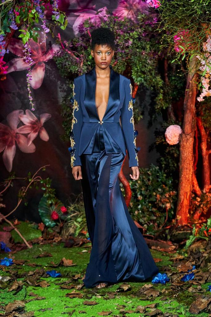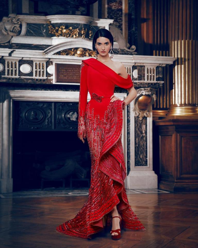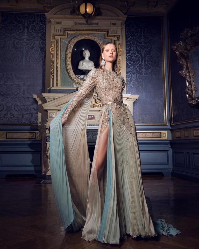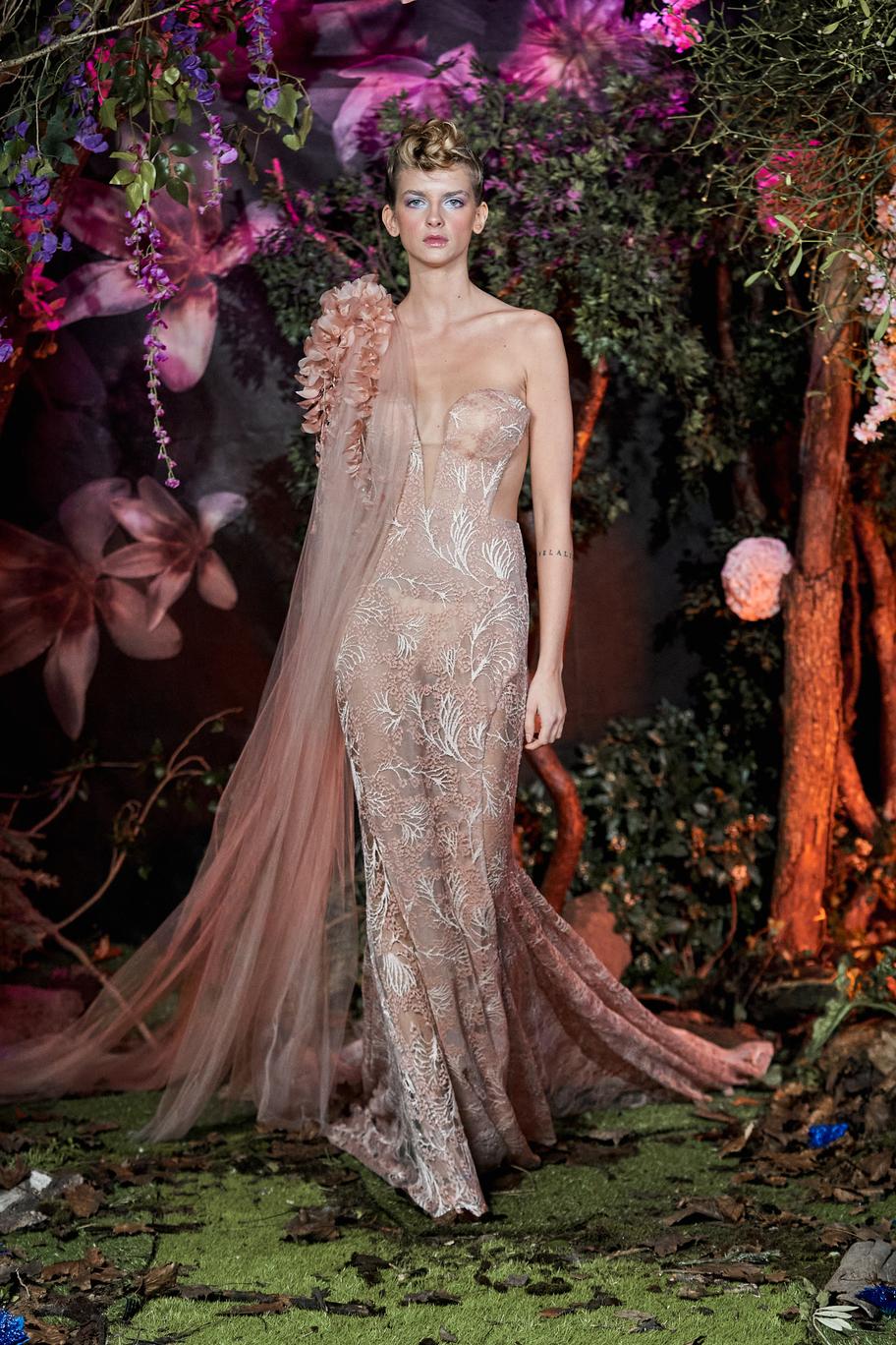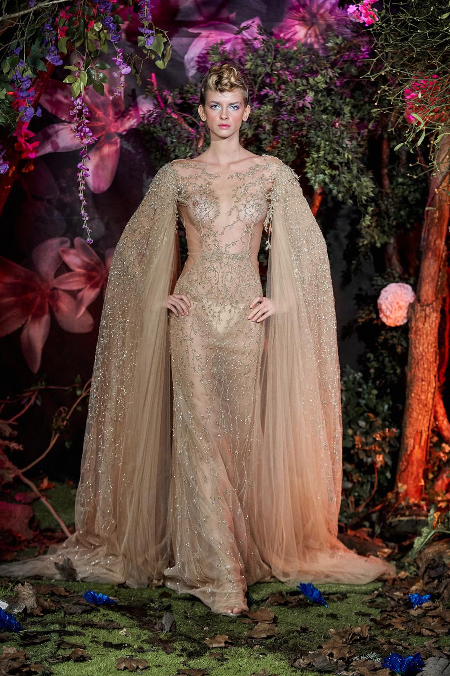 PRESENTATION ZIAD NAKAD EN DIGITAL: Le créateur libanais a présenté une nouvelle collection intitulée « MuZeum », qui comme à son habitude sublime les femmes, tissant autour du corps féminin un écrin précieux et intemporel. Il nous invite à découvrir une collection de muses, toutes différentes, cosmopolites, ayant pour point commun une féminité affirmée, avec un choix de mannequins venant du monde entier (France, Australie, Géorgie, Etats-Unis, Allemagne, Pays-Bas, Corée) destiné à montrer que la beauté est universelle. La robe d’ouverture est un symbole de lumière, qui naît des ténèbres et qui est une invitation à faire un voeu. La signature du couturier se retrouve sur l’ensemble de la collection: épaules oversize, tailles marquées et soulignées par des ceintures bijoux et des broderies. Les robes phare sont créées comme des mosaïques, cousues carré par carré dans son atelier de Beyrouth: un travail de six mois et un nombre incalculable d’heures par robe pour créer cette architecture parfaite moulant le corps de la femme. Tulle, taffetas et dentelle soulignent ça et là une silhouette élancée. Celles-ci sont complétées par une ligne d’accessoires, ceintures Swarovski et boucles d’oreille oversize.