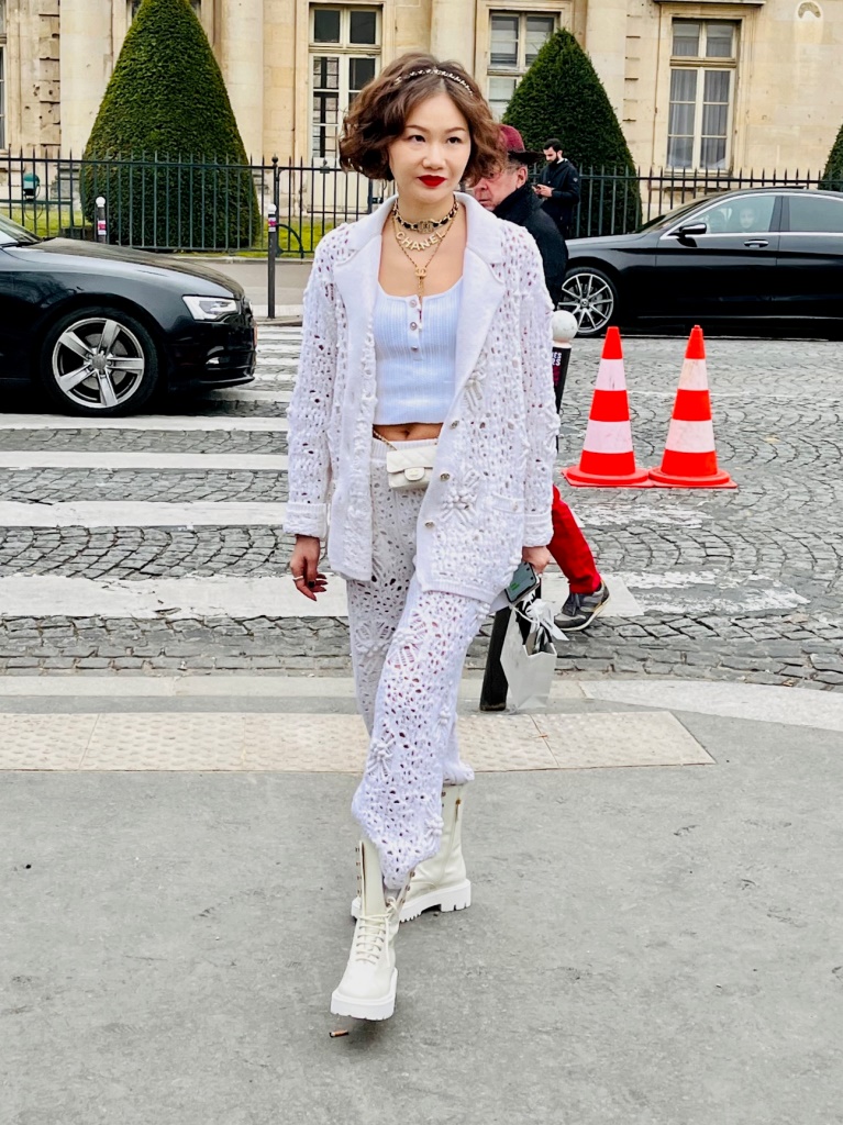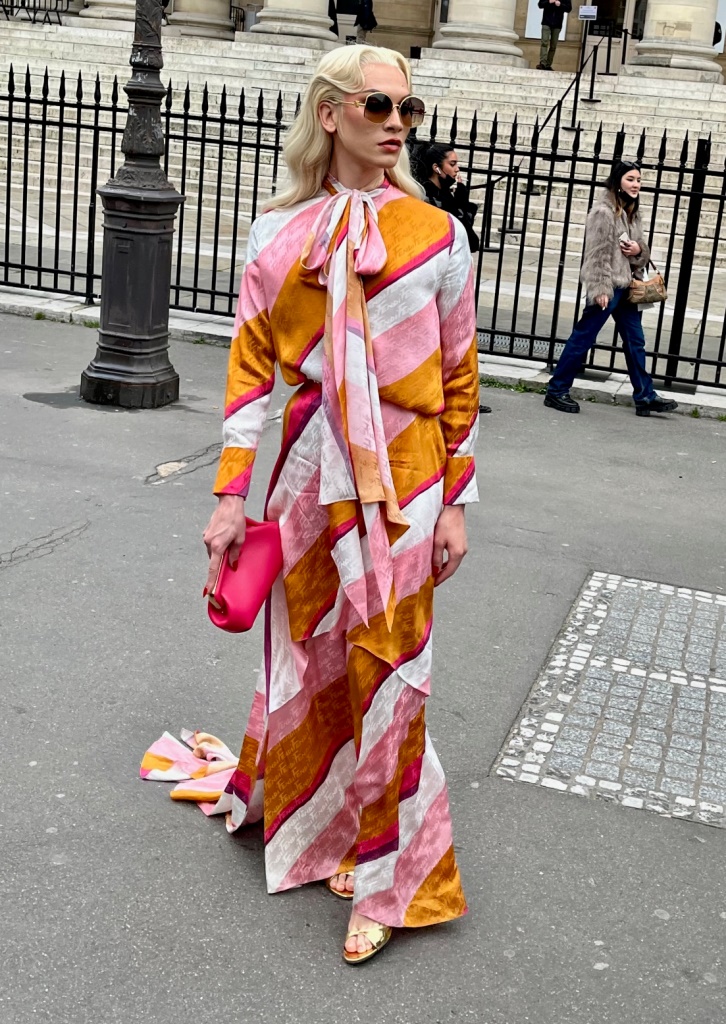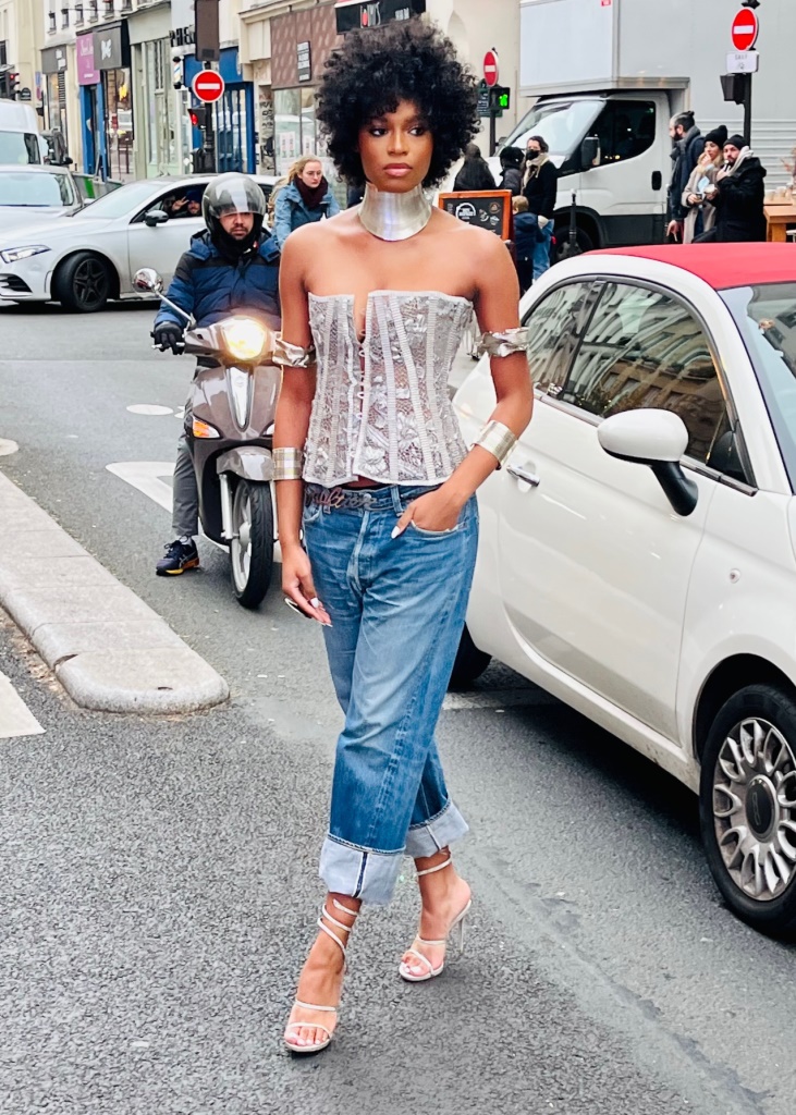 DEFILE JEAN PAUL GAULTIER x GLENN MARTENS AU SIEGE DE JPG: Depuis que Jean Paul Gaultier s’est retiré de la maison qui porte son nom en janvier 2020, les collections haute couture sont conçues en collaboration avec un designer extérieur qui change chaque saison. Après Chitose Abe (créatrice de Sacai) en juillet dernier, c’est au tour de Glenn Martens, le designer belge de Y/Project, de proposer sa vision de la couture Gaultier, chez qui il avait fait un passage en 2008. C’est ainsi qu’il a polarisé son attention sur le fameux corset, sous-vêtement captivant et élément consubstantiel à toute la carrière de Jean Paul Gaultier. Toutes les silhouettes sont corsetées et de nombreuses robes ont une longue traîne évoquant les sirènes ou les vagues. Le thème marin se trouve également décliné dans une robe fourreau entièrement brodée de coraux. De grosses mailles sculptent la silhouette comme cette robe en laine écru, dos nu avec une fente en arrière. L’emblématique marinière est déchiquetée ou décomposée en fils de fer sur une robe chair. On retrouve l’esprit Y/Project dans les constructions/déconstructions très impressionnantes et dans la touche de gothique flamboyant qui infuse les robes de madones moyenâgeuses.