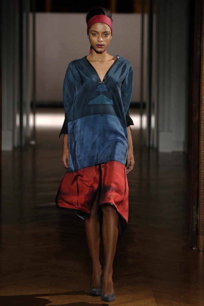 Présentation Anggy Haïf dans sa boutique du Marais: le prolifique créateur d’origine camerounaise a présenté sa première collection haute couture « Rouge Montaigne ». Ce nom est le reflet du mélange des cultures qui caractérise le créateur. C’est tout d’abord une allusion à son émerveillement lors de sa première visite avenue Montaigne à son arrivée à Paris; le rouge, c’est la couleur de la passion, de la séduction, de l’élégance, mais c’est aussi la terre de ses aïeux dans le Nord Cameroun. Magnifiques robes en soie et taffetas. Un bel hommage à l’univers de la haute couture.