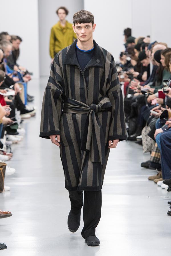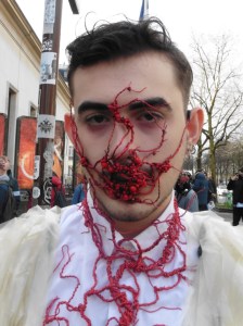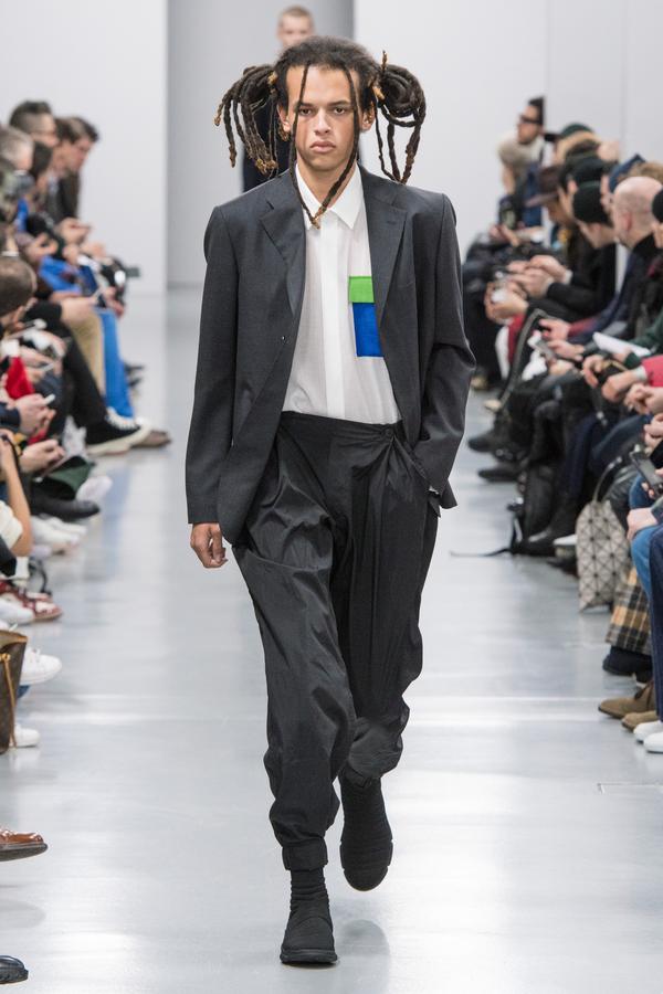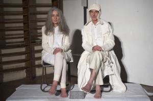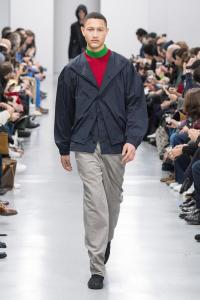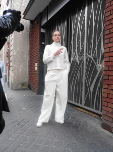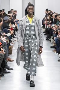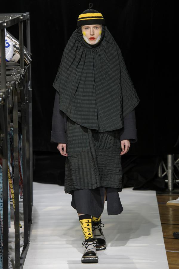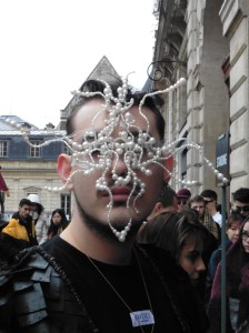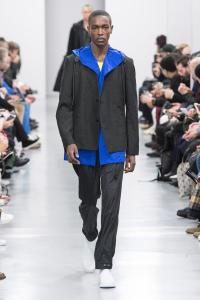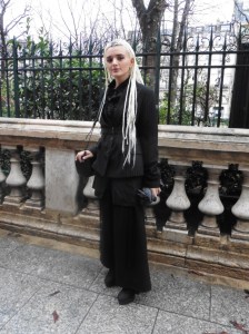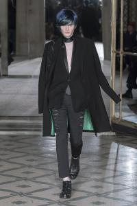 DEFILE/PRESENTATION SANDRINE PHILIPPE AU GYMNASE TREVISE: Intitulée « Human Process » et présentée sous forme de dix tableaux, la collection inspirée de l’univers de Shakespeare explore la notion de temps, l’usure du temps, l’appartenance à un groupe et ce que cela implique en termes de liberté et d’identité. Le noir et le gris dominent comme toujours, parfois ponctués de blanc. Le jeu sur les textures et les superpositions conduit à d’étranges créatures à plumes ou à carapace exprimant le côté animal de l’homme, tandis que son côté précieux est retranscrit dans des costumes et pardessus sophistiqués, l’ensemble traduisant un certain besoin de protection. La passion de la créatrice pour le corps humain est une nouvelle fois mise en évidence au travers d’une mise en scène soignée et pleine de sensibilité.