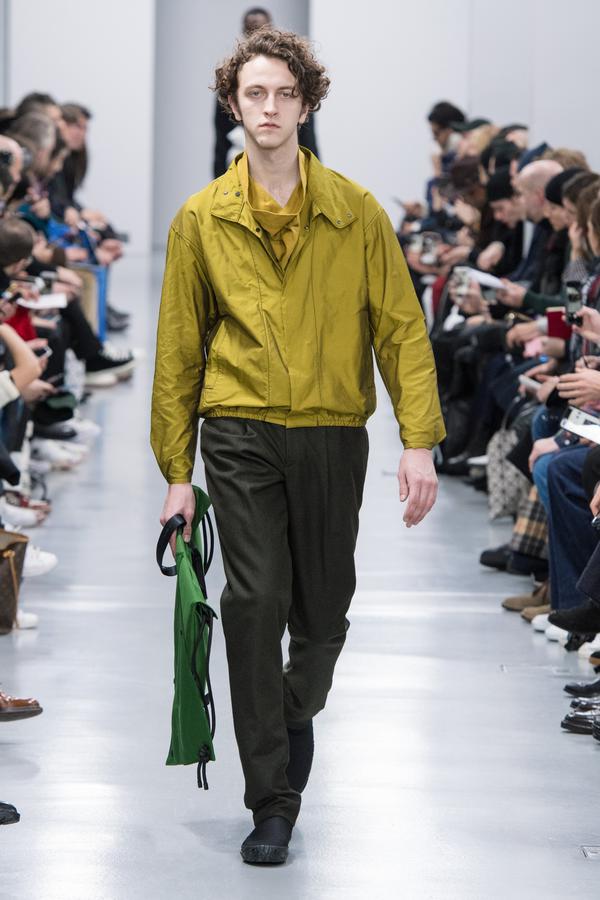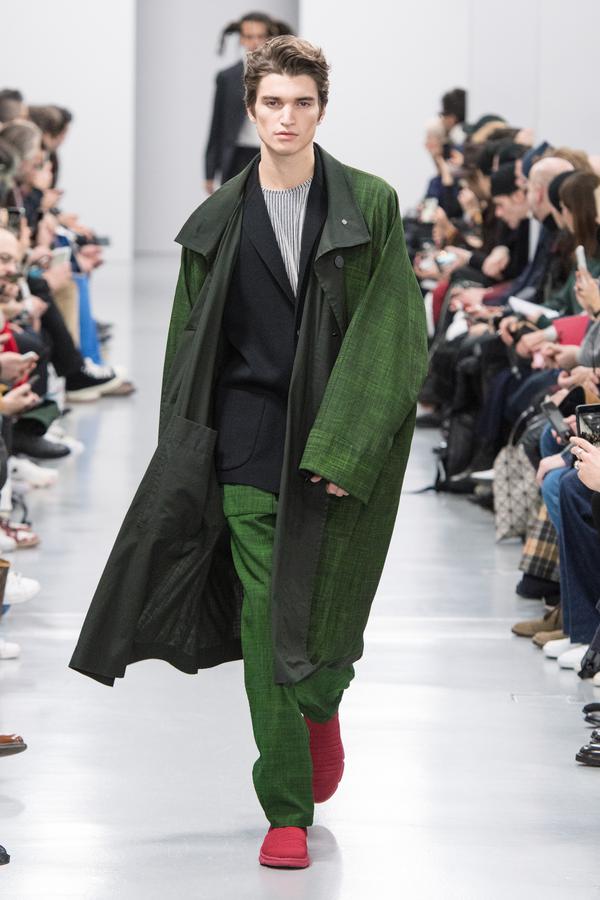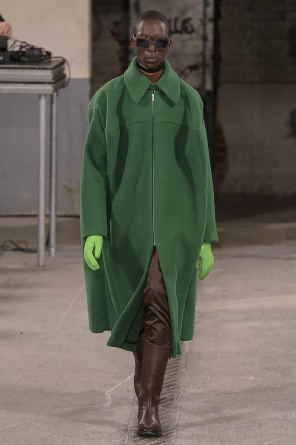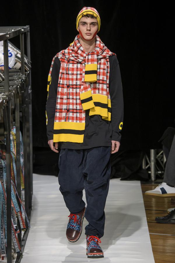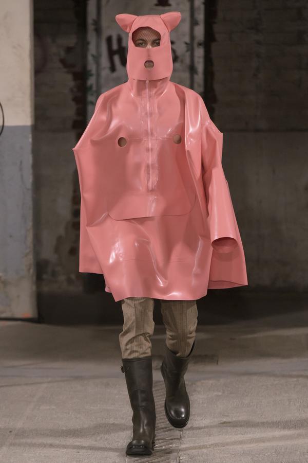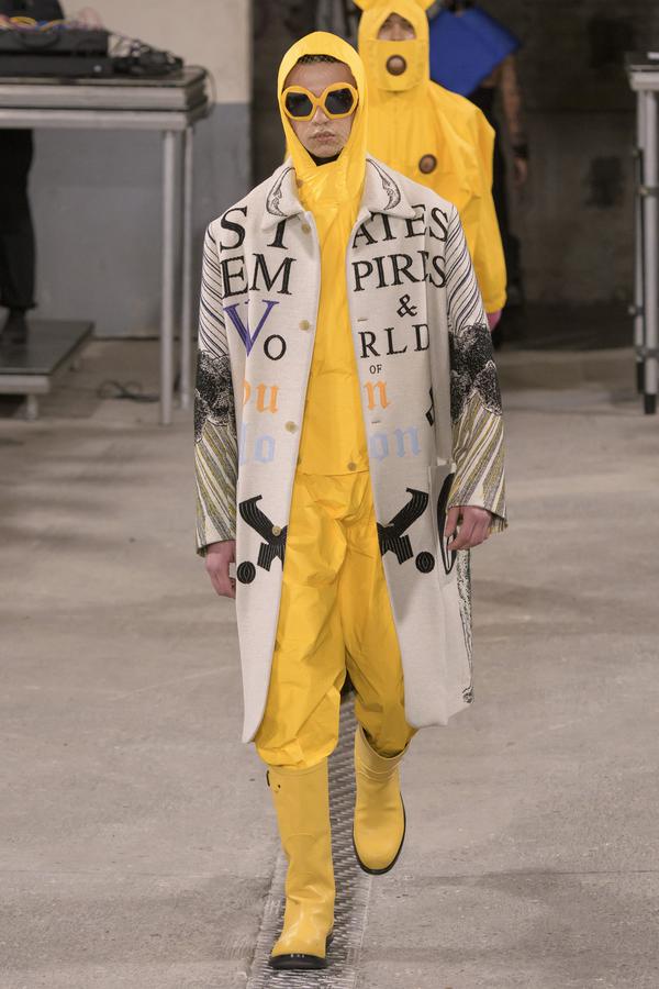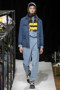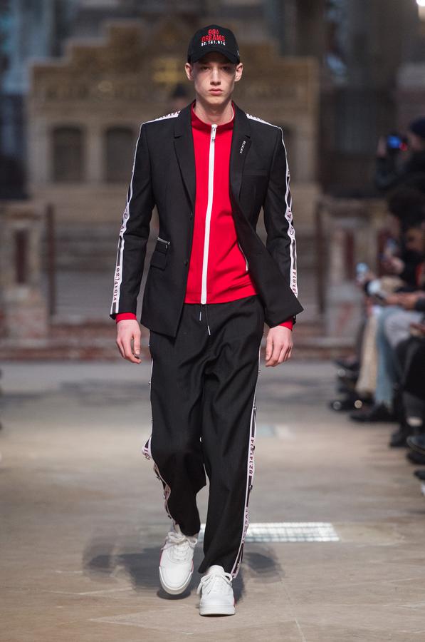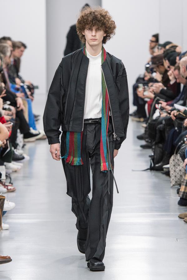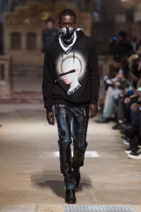 DEFILE SANKUANZ A LA GAITE LYRIQUE: Pour cette nouvelle collection intitulée « Kill The Wall », le créateur chinois Shangguan Zhe fait allusion à tous les combats personnels que nous avons à mener pour dépasser les obstacles physiques ou autres qui nous empêchent d’avancer. Cette lutte urbaine s’exprime dans un esprit sportswear à base de matières techniques résistantes et waterproof, panneaux réfléchissants, imprimés camouflage et autres arabesques fluo, des hoodies couverts de multiples poches, des pochettes de toutes formes suspendues à la taille. Ceci se décline sur des parkas, vestes à capuche, tenues de plongée et de moto, maillots de foot et autres leggings de running. Les dernières tenues semblent faites de tissus isolants et donnent aux mannequins des allures de survivants d’une catastrophe nucléaire. Le slogan du défilé et le nouveau logo de la marque apparaissent en gros sur certains vêtements et accessoires. Dans leur lutte pour leur survie les mannequins portent des baskets hautes sanglées dans des surchaussures à grosses semelles, accentuant l’esprit guerrier (ninja) de la collection. Un style tout à la fois militaire et underground!