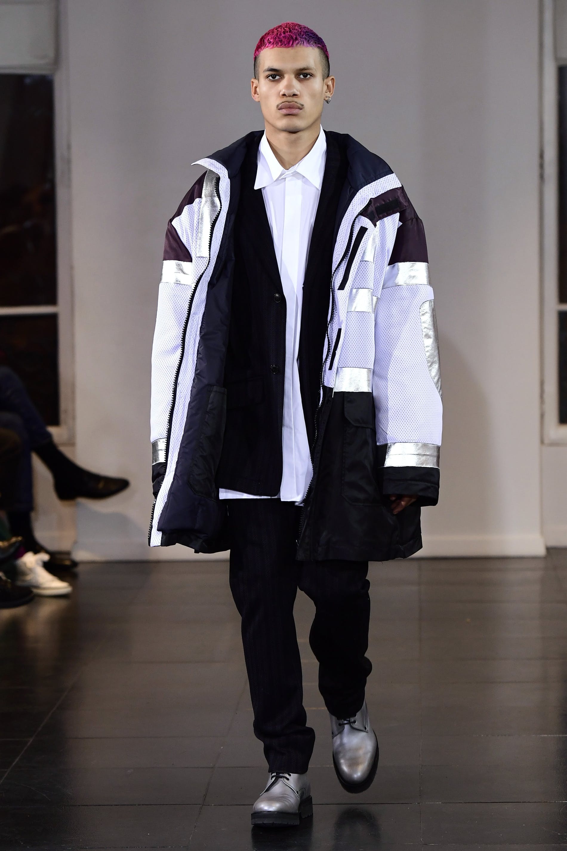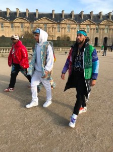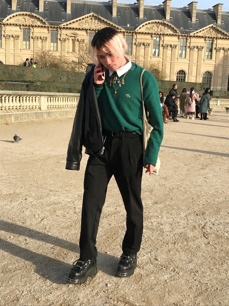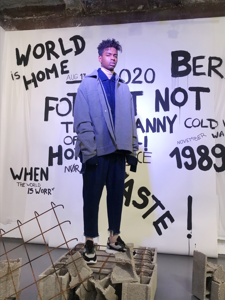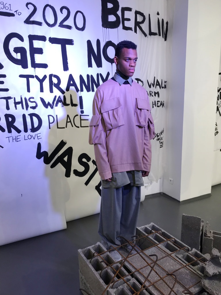 PRESENTATION/DEFILE « SYSTEM » AU PALAIS DE TOKYO (YOYO-CLUB): Première présentation à Paris également pour cette marque coréenne encore peu connue en dehors de l’Asie, créée en 1990 pour des collections de prêt-à-porter féminin et qui s’est lancée dans l’homme en 2008. Appartenant à un conglomérat coréen de grande envergure qui lui permet de disposer de moyens importants, comme un studio collectif de près de 80 designers pour les lignes homme et femme, elle propose un style urbain chic très actuel, aux coupes et finitions soignées, portant une grande attention aux matières et à la fabrication réalisée en Corée. Pour un fort impact visuel, les mannequins hommes et femmes déambulent autour et à l’intérieur d’un vrai ring tout blanc, illuminé au centre d’une salle sombre. Le maître mot de cette collection est la dualité. La collection joue ainsi abondamment avec les superpositions et mélanges de matières. Les pièces classiques d’une garde-robe, vestes, manteaux, pantalons, mailles, sont revisitées en combinant habilement denim, soie et cuir dans des silhouettes amples et fluides, dans une palette de couleurs où dominent le noir, le marron et le beige. Une certaine sophistication se dégage de l’ensemble.
