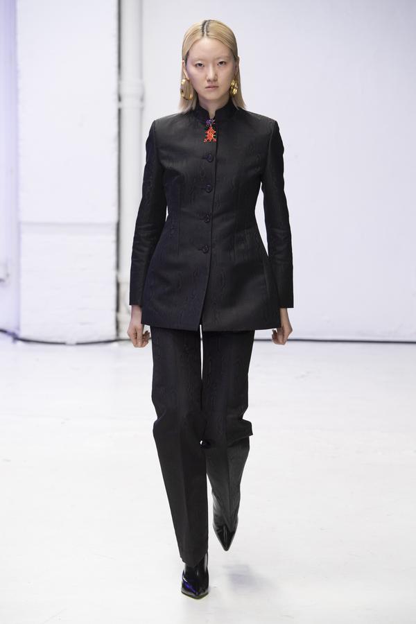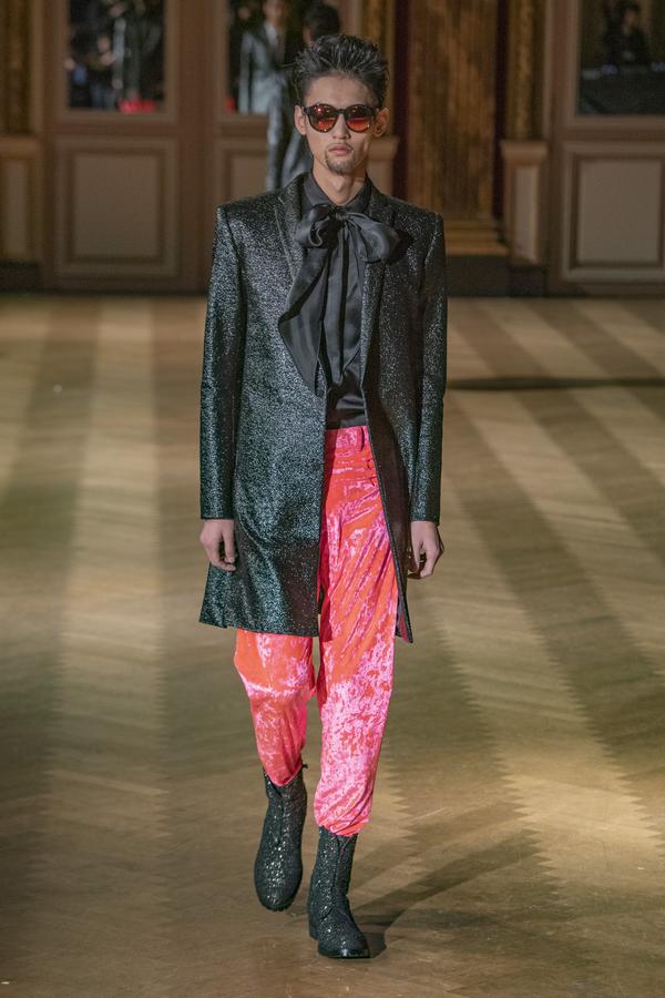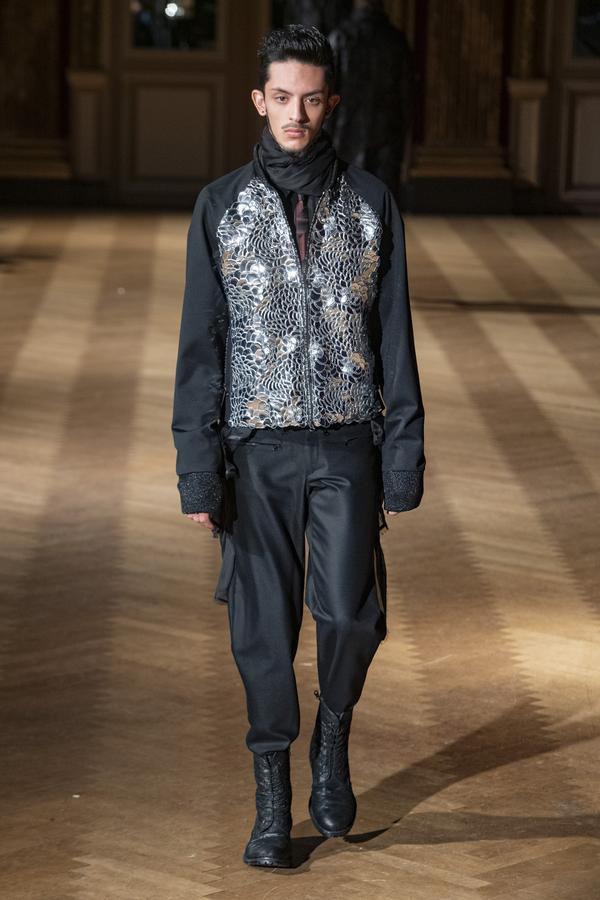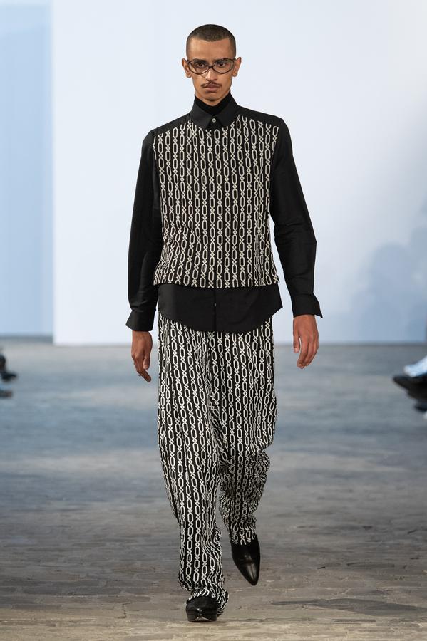 PRESENTATION SMALTO AU SIEGE DE LA MAISON: La Maison Smalto a présenté une nouvelle collection qu’elle a voulue davantage ancrée dans la modernité urbaine, conjuguant formel, casual et une touche sport. Outre les coupes ajustées impeccables et les finitions faites main caractéristiques de la maison, on pouvait ainsi remarquer des rayures tennis sur un pantalon cargo, une veste iconique alliée avec des matières plus sport, un gilet porté à même la peau se glissant sous une veste de smoking, une chemise imprimée associée à un pull col roulé. La palette de couleurs reste très chic avec des gris, blanc et noir dominants. Etaient également présentées certaines pièces issues d’une collaboration inédite avec le jeune designer parisien Louis Gabriel Nouchi, revisitant les proportions des pièces iconiques de Smalto et utilisant des matières recyclables et tissus de fins de stocks de grands fabricants, un créneau nouveau pour Smalto.