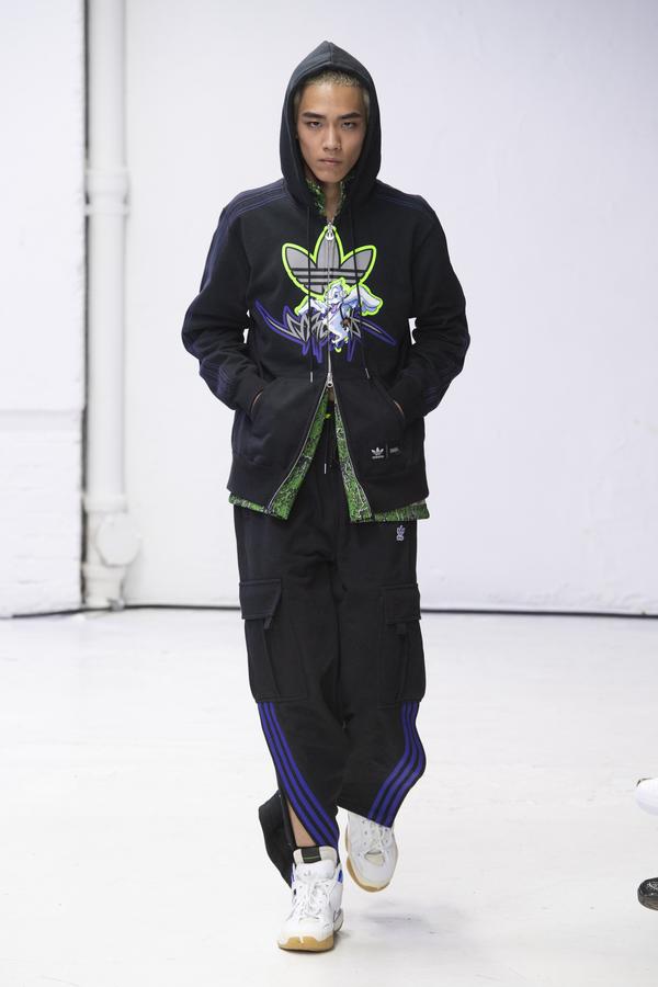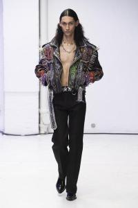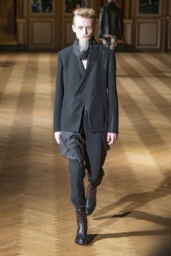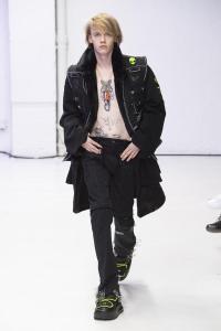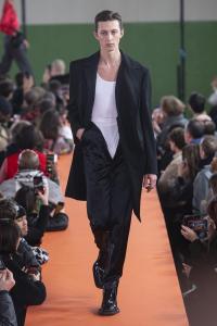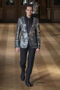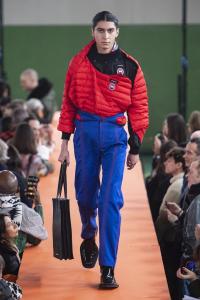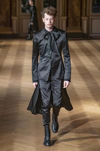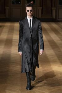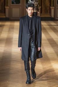 DEFILE « HOMME PLISSE ISSEY MIYAKE » AU CENTRE GEORGES POMPIDOU: Comme elle l’avait déjà fait en juin dernier, la marque a choisi de présenter pour son défilé masculin sa ligne « Homme Plissé Issey Miyake », une ligne très actuelle, décontractée et facile à porter au quotidien. Nous avons à nouveau assisté à une véritable performance artistique imaginée par le chorégraphe américain Daniel Ezralow, jouant sur le mouvement afin de montrer la légèreté et la fluidité des vêtements, et où les mannequins sont aussi musiciens, danseurs ou acrobates. Au programme de cette collection très colorée déclinée dans un large choix de formes: vestes et pantalons plissés très souples, ensembles aux imprimés colorés associés à des chaussures monochromes (jaunes, violettes, vertes, bleu ciel), parkas et imperméables volumineux garnis de motifs graphiques noirs et blancs, tenues en maille avec gilets larges sans manches, pantalons mosaïque, d’autres imperméables colorés (bleu roi, jaune d’or, vermeil, émeraude) décorés au dos d’instruments de musique, une allure japonaise évoquant le kimono dans les lignes des épaules. Pour le final, les mannequins en noeud papillon, chapeau de crooner, costumes et queue de pie taillés dans un tissu plissé ondulé se lancent dans un bal endiablé. Un superbe show, très émouvant et dégageant une grande sensation de liberté et d’énergie.