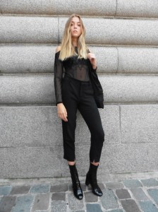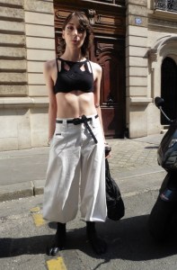 PRESENTATION AGNES B DANS SON SHOWROOM: Le point de départ de cette nouvelle collection est un livre d’André Villers et Picasso dans lequel la créatrice a remarqué la proximité entre ses propres créations et la garde-robe du peintre. Ce qui la conduit à imaginer des coupes confortables avec des volumes élargis, à base de mailles ajourées, de caleçons en popeline, de chemises de travail à poches plaquées. On trouve également des chemises à imprimés fleuris et des pantalons jambes droites à la taille replacée. En s’inspirant par ailleurs de photos prises par son père en Normandie en 1936 elle redéfinit une certaine élégance à la française avec des costumes en lin léger, jacquard, des vestes pied de puce ou à boutonnage croisé. Pour le soir elle propose des pièces plus rock avec par exemple une veste en jacquard noir et blanc, ou en s’inspirant du street art, avec notamment un imprimé signé JonOne sur un costume, et des impressions numériques de photos d’artistes ou prises par elle-même.