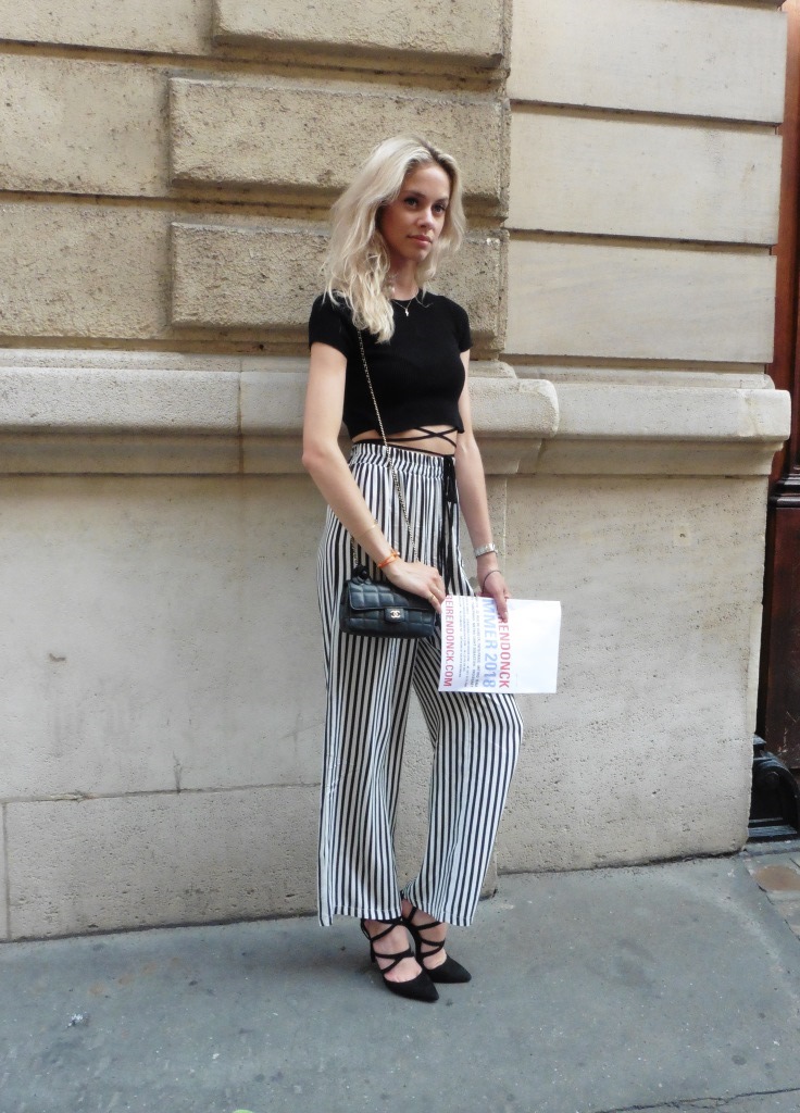 PRESENTATION AGNES B DANS SON SHOWROOM: Le point de départ de cette nouvelle collection est un livre d’André Villers et Picasso dans lequel la créatrice a remarqué la proximité entre ses propres créations et la garde-robe du peintre. Ce qui la conduit à imaginer des coupes confortables avec des volumes élargis, à base de mailles ajourées, de caleçons en popeline, de chemises de travail à poches plaquées. On trouve également des chemises à imprimés fleuris et des pantalons jambes droites à la taille replacée. En s’inspirant par ailleurs de photos prises par son père en Normandie en 1936 elle redéfinit une certaine élégance à la française avec des costumes en lin léger, jacquard, des vestes pied de puce ou à boutonnage croisé. Pour le soir elle propose des pièces plus rock avec par exemple une veste en jacquard noir et blanc, ou en s’inspirant du street art, avec notamment un imprimé signé JonOne sur un costume, et des impressions numériques de photos d’artistes ou prises par elle-même.