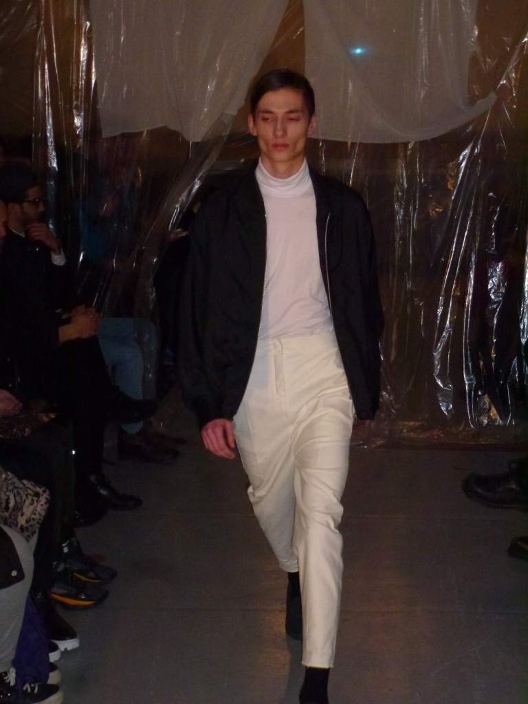 Défilé Umit Benan à la Halle Freyssinet: les lignes d’un véritable court de tennis ont été reproduites sur le sol. Une collection sportswear au premier degré, chic et de belle qualité, qui se démarque de ce qu’on a pu voir avec les autres défilés.