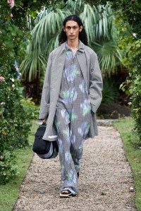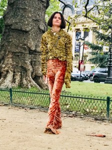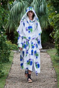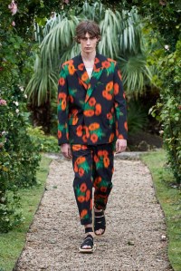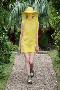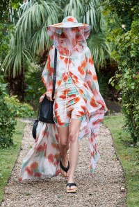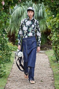 DEFILE KENZO A L’INSTITUT NATIONAL DE JEUNES SOURDS (INJS): Pour sa seconde collection pour Kenzo, qu’il a voulue ancrée dans l’époque, le créateur portugais Felipe Oliveira Baptista a trouvé son inspiration dans les abeilles, protectrices et rassurantes, et les vêtements amples des apiculteurs. Ce défilé très poétique qui était une véritable ode aux abeilles, dans laquelle l’imaginaire de l’apiculture était raconté avec un certain humour et beaucoup d’énergie, a ainsi révélé une collection mixte inventive, colorée, fleurie et utilitaire. Les vêtements tantôt couvrent totalement, comme ces tenues d’apiculteur avec chapeau et voile, tantôt mettent à nu comme ce look moulant avec un body couleur chair. Au sein d’une palette de couleurs riche et festive les imprimés abstraits rouge et vert sur du blanc apparaissent comme délavés, de même que les coquelicots et les hortensias sur les tenues, illustrant la fragilité du monde, mais diffusant également une bonne dose d’optimisme.