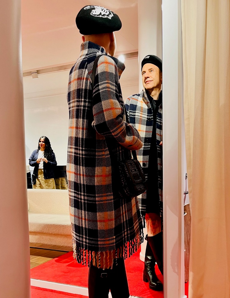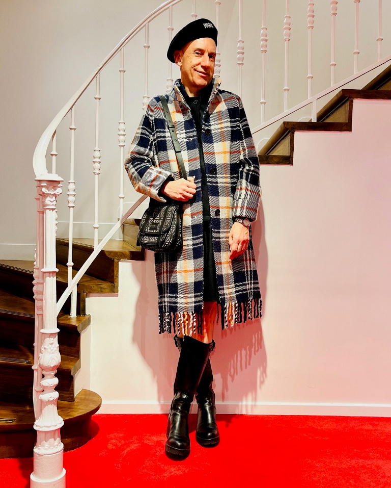 Un manteau coloré pour affronter l’hiver! Et si possible avec une touche d’originalité comme ces franges, ce qui donne à l’arrivée un magnifique manteau tout à la fois élégant et décontracté.Toutes les pièces de ce look proviennent de la collection Kenzo automne-hiver 2022/2023: manteau en laine frangé à carreaux avec col montant; ensemble jupe plissée et blazer à badges en tweed (jupe avec coupe évasée très confortable, blazer avec col tailleur, chaque pièce pouvant être portée séparément avec de multiples possibilités d’associations); béret « Tiger Varsity » en laine avec sur le dessus une broderie représentant le tigre iconique de la maison Kenzo; petit sac « Messenger Courier Temari » à bandoulière ajustable et fermeture à pression. Et pour compléter le look, des bottes en cuir de la marque espagnole Manas.