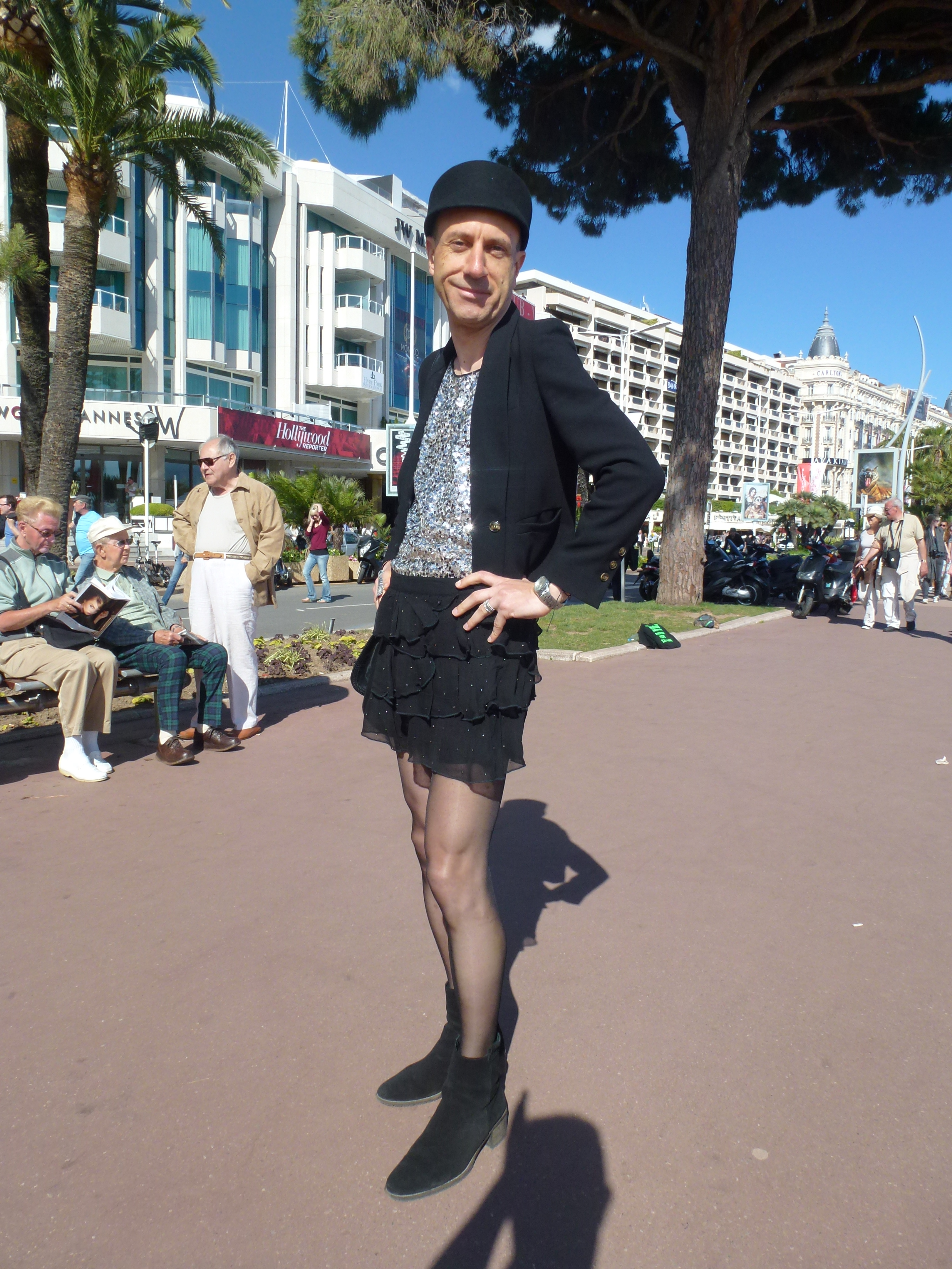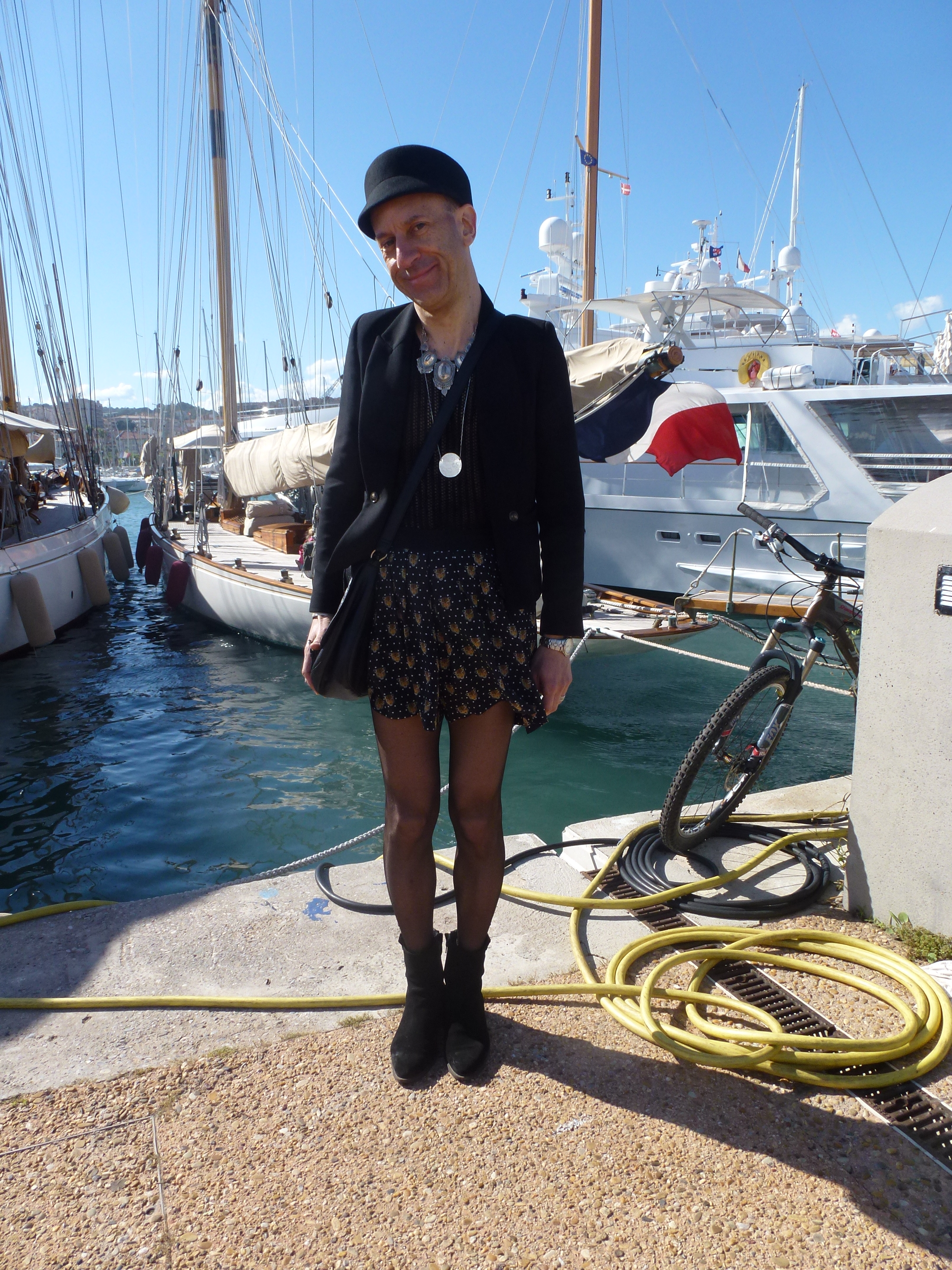 Cette charmante jeune fille porte une robe dénichée dans une friperie vintage, accompagnée d’une veste épaulée en cuir de chez Diesel Collection Black Gold, des bottines cloutées de chez André, le tout accessoirisé par des lunettes de soleil style baby doll de chez Ray-Ban. Un look à la pointe de la mode!