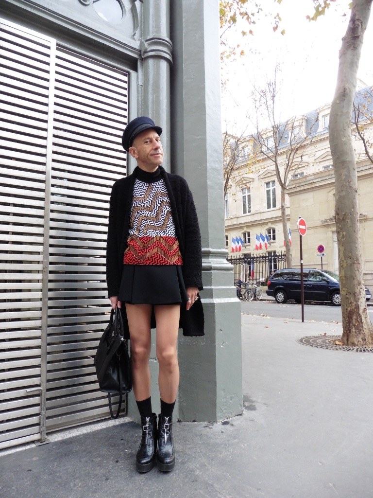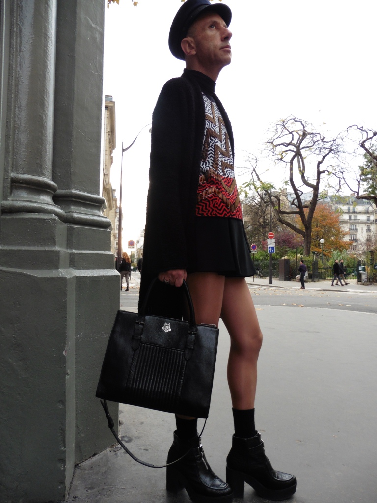 Cette saison la fourrure est dans toutes les collections, mais évite les animaux rares ou en voie d’extinction. Renouvelée, modernisée, elle ose les superpositions et la couleur. Ainsi ce très beau manteau de Zadig&Voltaire (fabriqué en cinq exemplaires seulement) qui joue sur différentes fourrures naturelles et teintes (renard, lapin, raccoon; cuir d’agneau imprimé python sous le col; doublure laine mérinos). Le pull (avec imprimés dans les mêmes tons), la jupe en dentelle (avec empiècements brodés sur viscose de crépon) et le sac bleu en cuir d’agneau avec double chaîne sont aussi de la collection Zadig&Voltaire AH 14/15. Un super look pour les fêtes!
