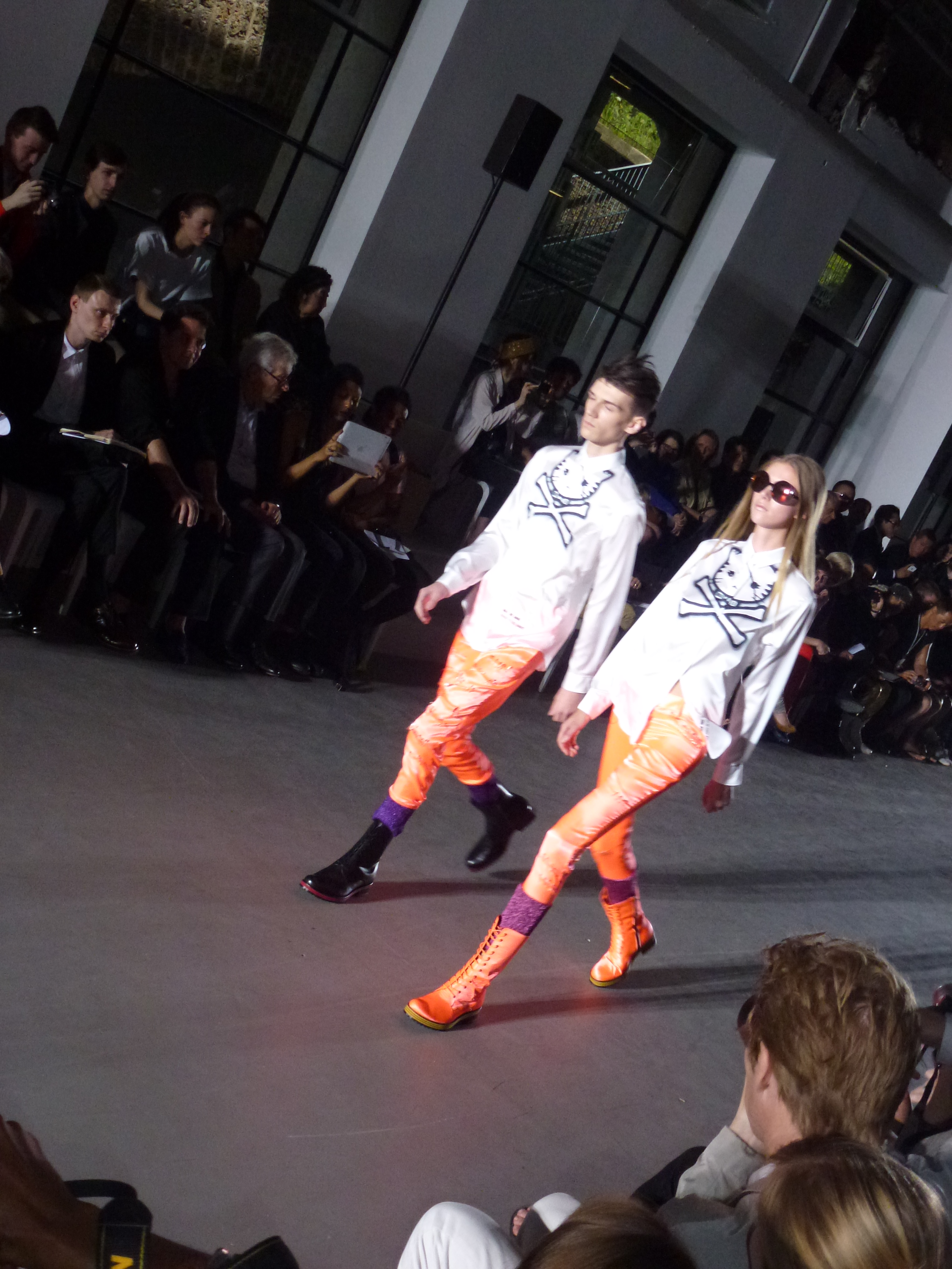 Défilé Walter Van Beirendonck au garage Lübeck: toujours aussi créatif et décalé, un jeu très réussi sur les couleurs et les combinaisons de matières: