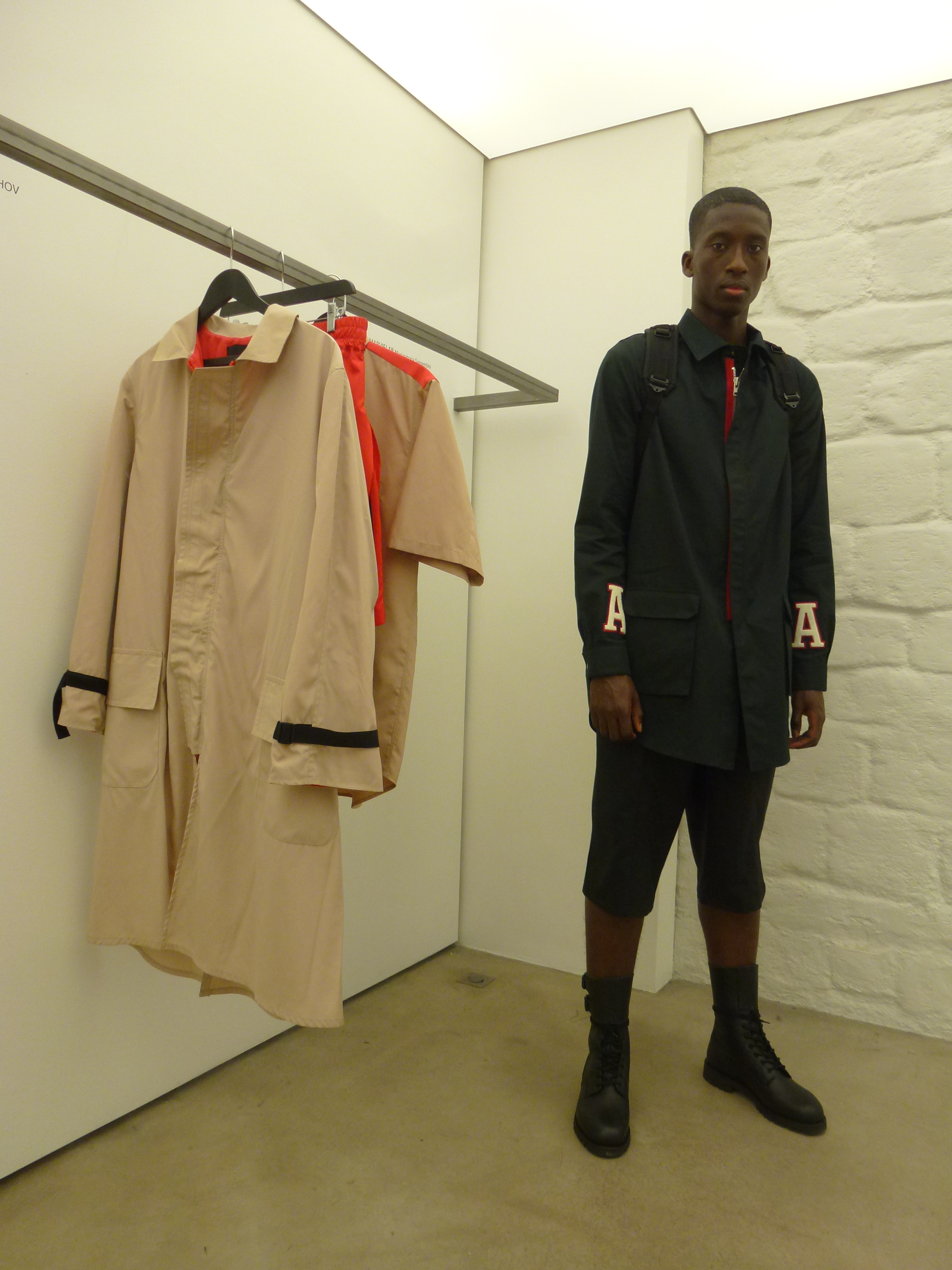Présentation Komakino dans une galerie du Marais: une collection de bonne tenue, là encore d’inspiration sportswear. Sur la dernière photo on voit le créateur de la marque qui porte son nom: