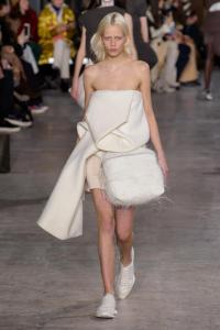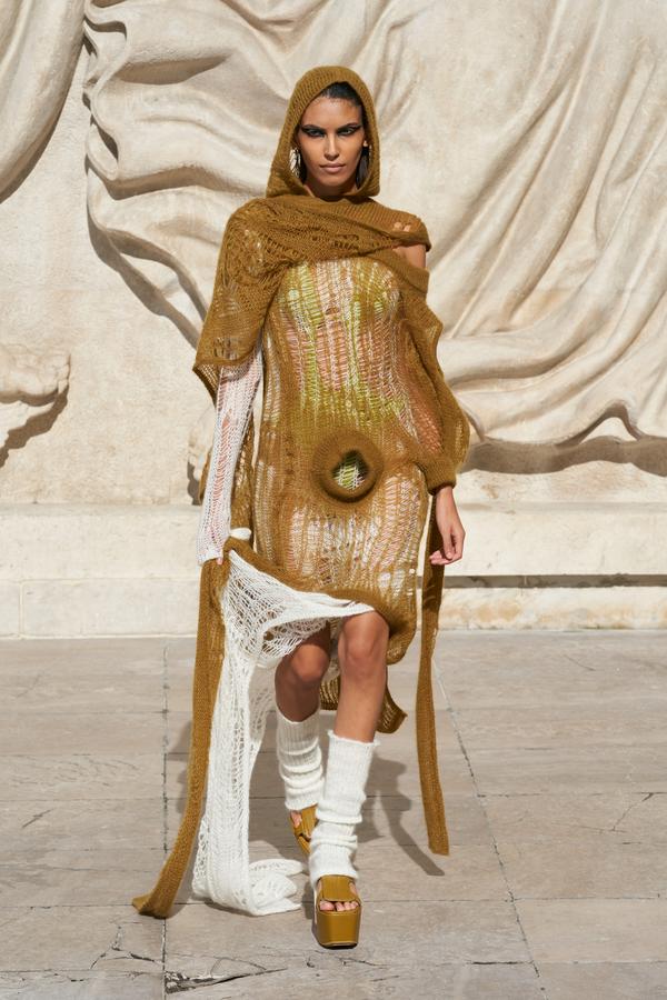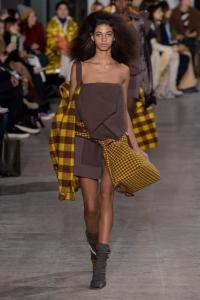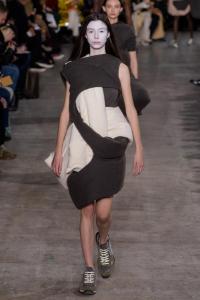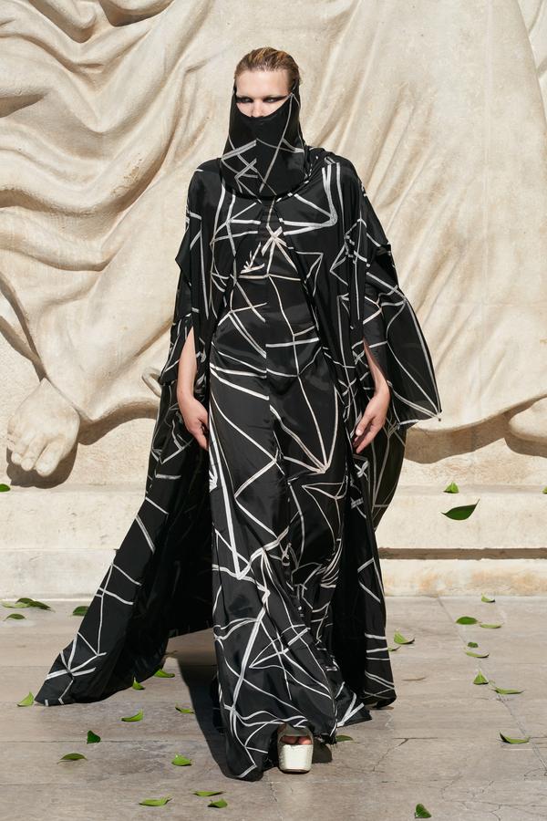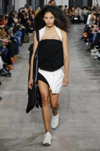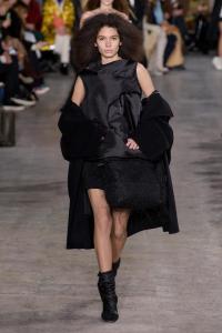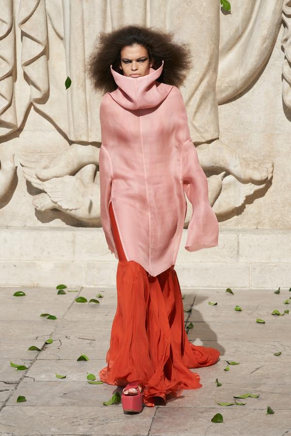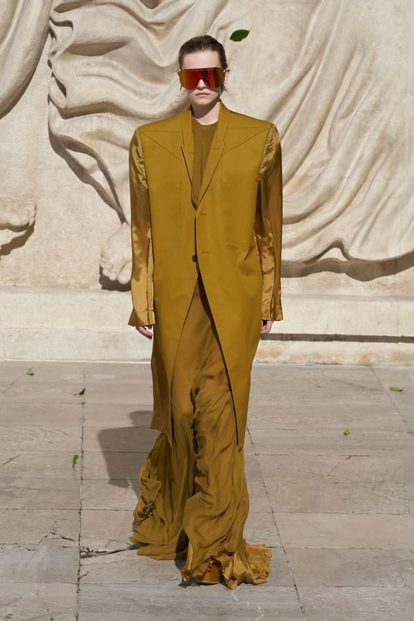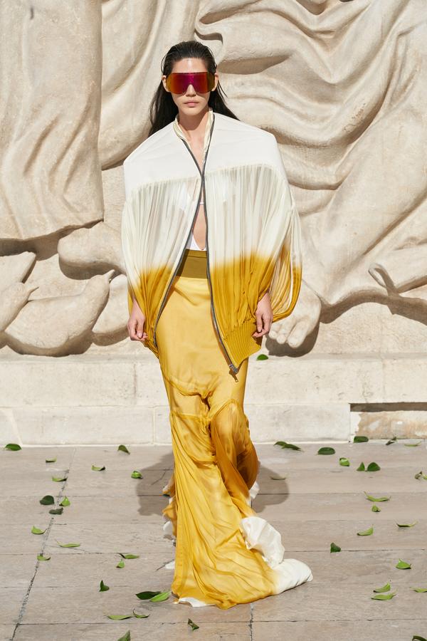 DEFILE RICK OWENS AU PALAIS DE TOKYO: Le designer américain a proposé un spectacle dont il a le secret, d’une grande théâtralité, avec une certaine poésie gothique et de nombreuses références à sa nouvelle patrie hivernale, l’ancienne ville de Louxor en Egypte. Sa muse, Tyrone Dylan, a ouvert le défilé chaussé de cuissardes en cuir noir avec des talons à plateformes, portées avec un short et une cape de vampire laissant voir une bonne partie de son torse aux muscles parfaitement dessinés. Les cuissardes se trouvent également sur les looks suivants, souvent associées à des gilets sans manches matelassés aux épaules très larges. Fidèles à son ADN, on retrouve tout au long du défilé, en noir dominant mais pas que, des proportions exagérées, des silhouettes frappantes, des justaucorps et manteaux gothiques à épaules pagode, des capes tourbillonnantes, une série de vestes aviateur oversize, des blousons à épaules en pointe et d’immenses couvertures matelassées en cuir épais, attachées à la manière de sculptures modernistes.