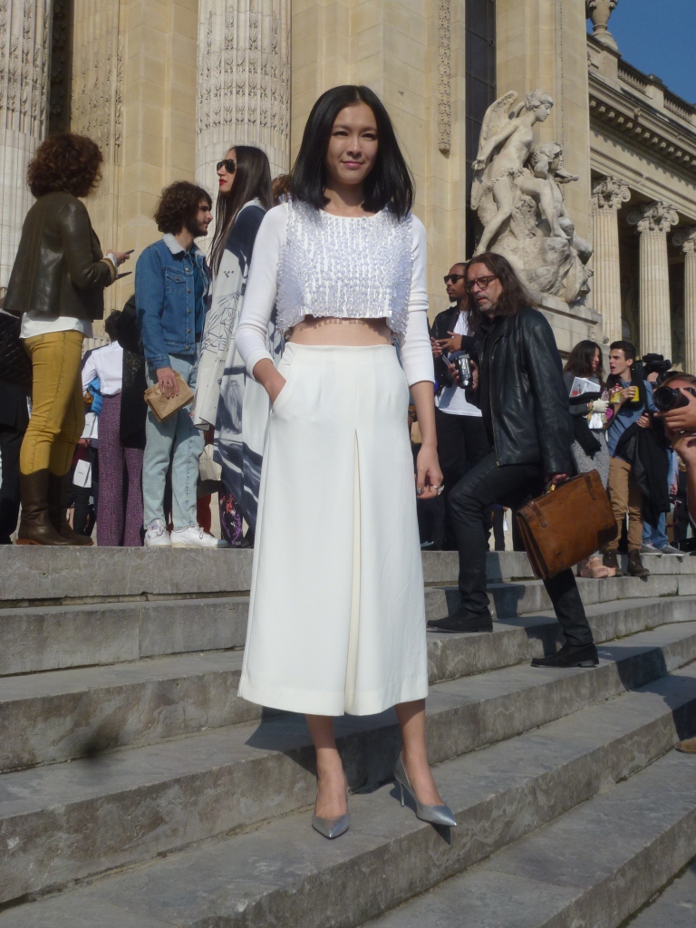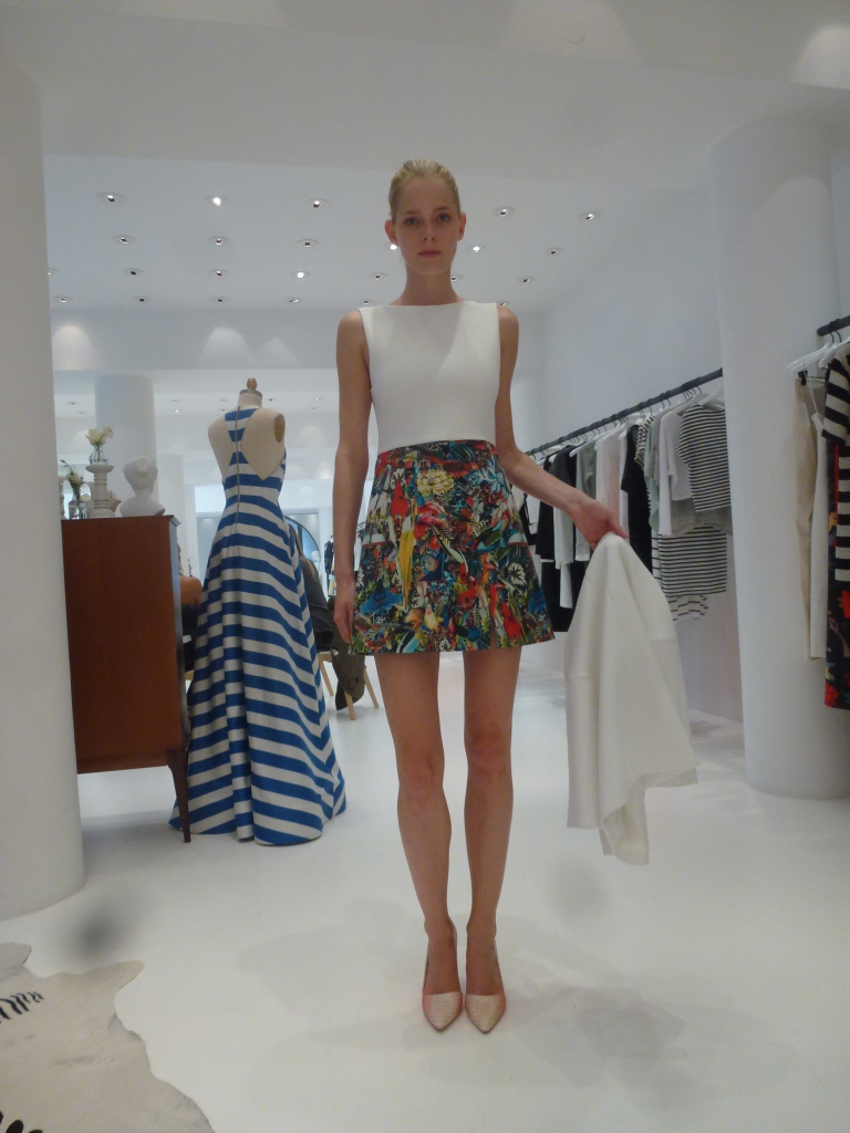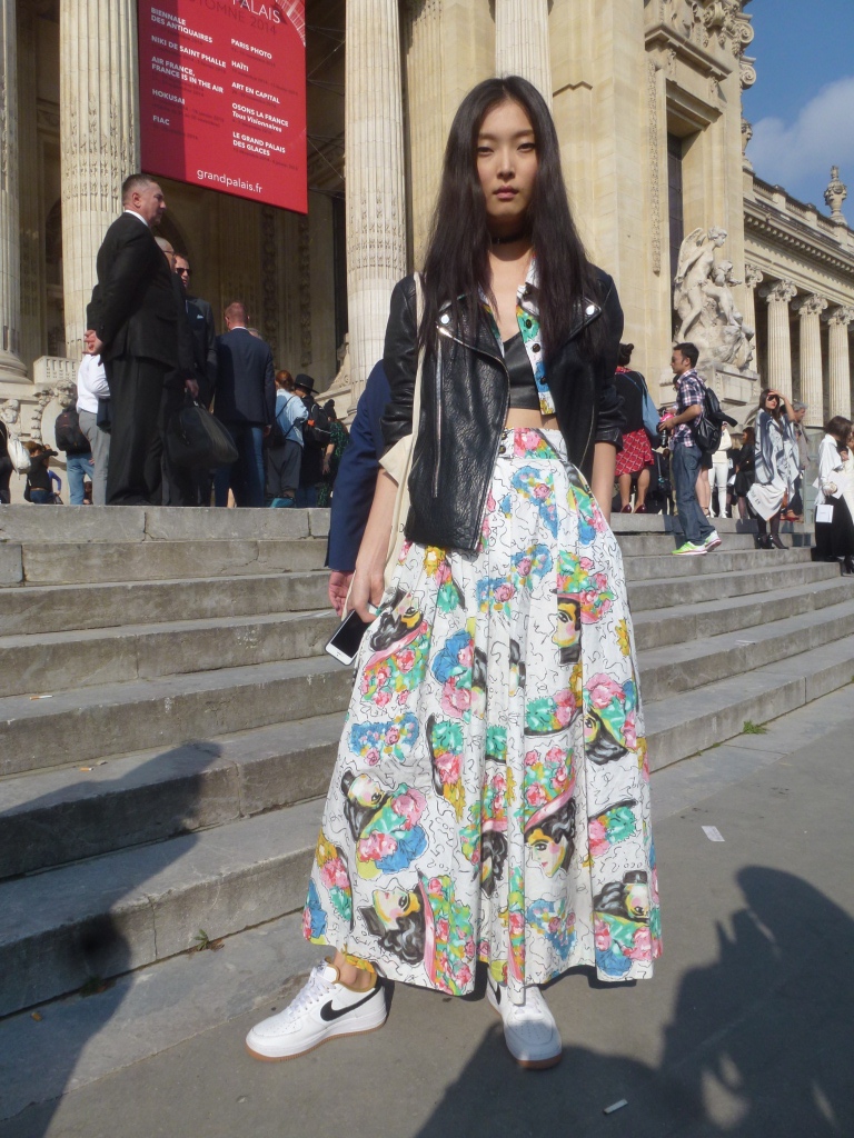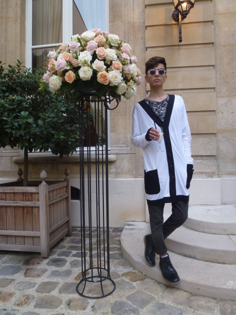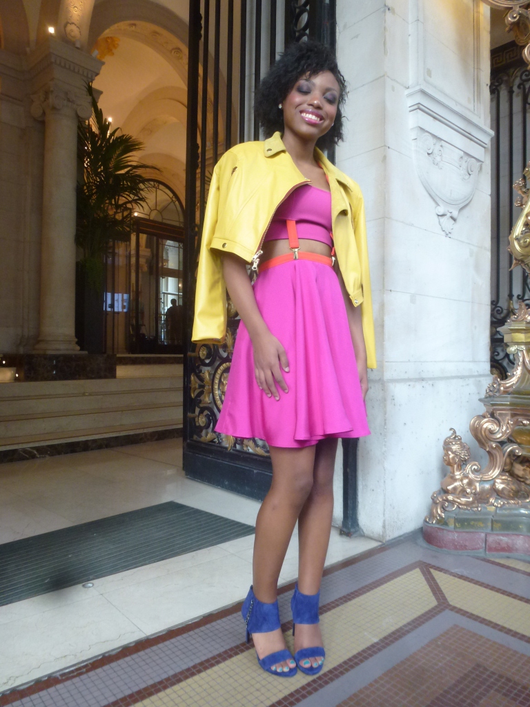 Ne demandez jamais à personne l’autorisation de porter ce dont vous avez envie! Cet été le rose est tendance et se décline tout en fluidité dans de jolis imprimés fleuris. La plupart des pièces de ce look proviennent de la collection été 2021 de Zadig & Voltaire. Robe courte imprimée en soie, resserrée à la taille, avec aspect drapé et manches amples « Ruffle Twill Roses ». Chapeau de paille « Girls Can Do Anything Paper Hat, Navy ». Pochette pour smartphone en cuir rose aspect vintage, portée en bandoulière « Sunny #2 Phone Pouch Vintage ». Lunettes blanches en acétate. Chaussures à talons dorés et lanières en cuir rose avec clous (dorés)(collection antérieure). J’ai complété le look avec un collier en argent Clio Blue, un sautoir vintage avec pendule; manchette et bague Clara Jasmine.